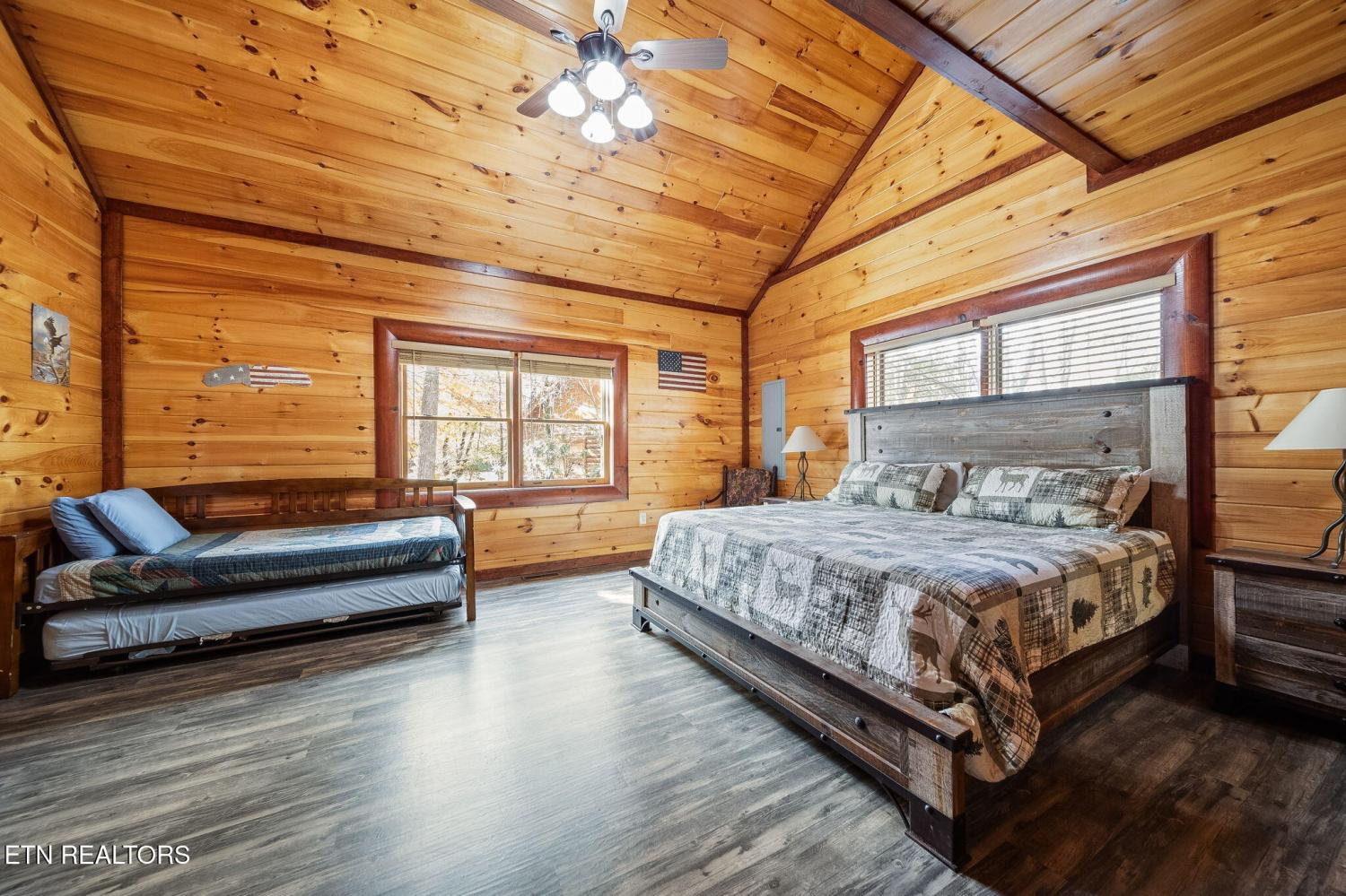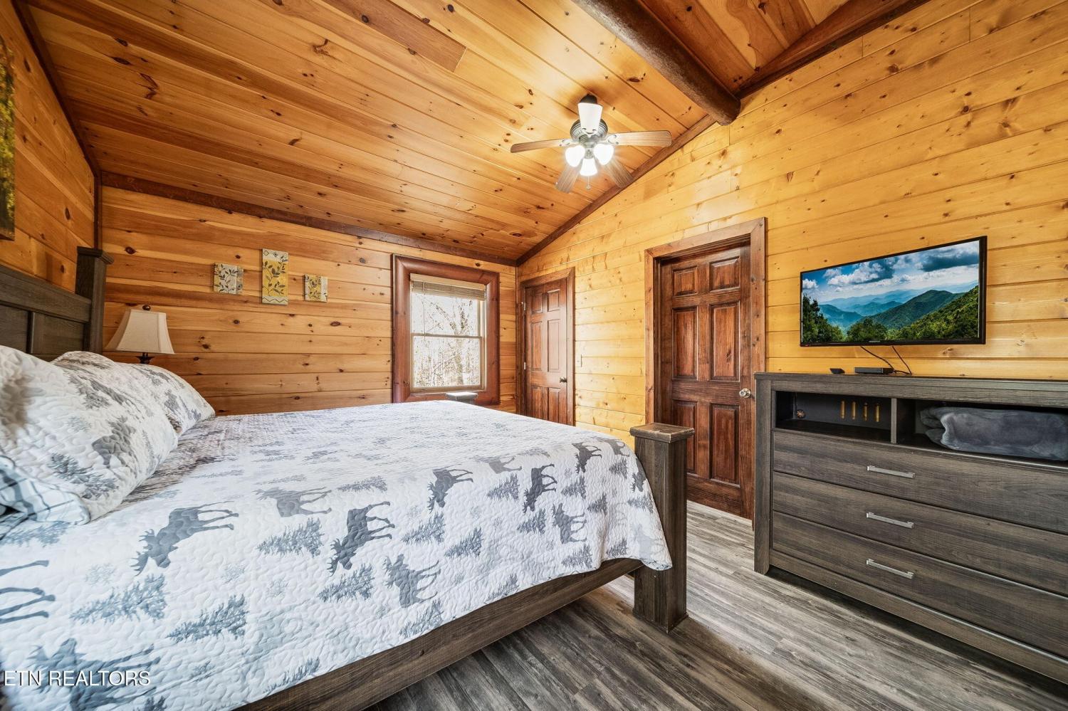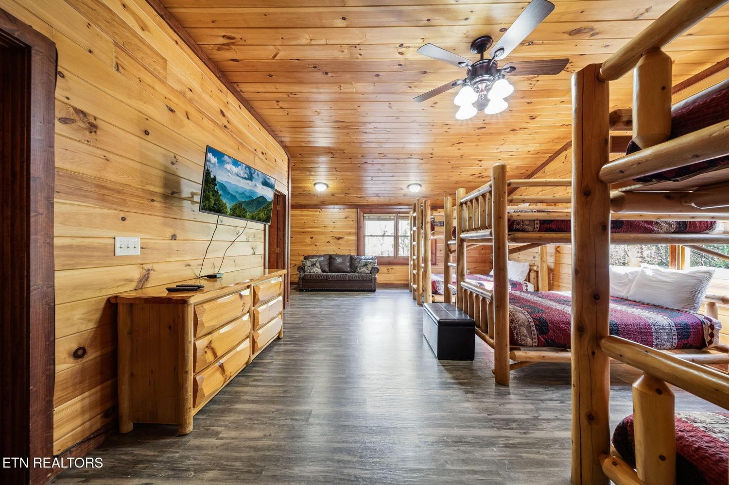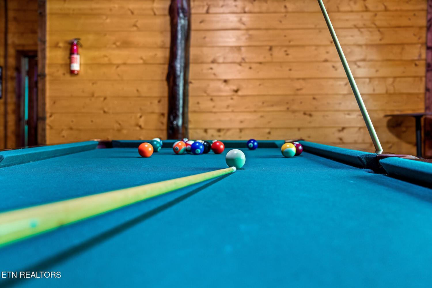 Step into this 3-bedroom, 4.5-bath cabin (with 2 additional rooms designated for sleeping), a perfect blend of mountain charm and modern comfort. Featuring exposed wooden beams, stone accents, and all-wood interiors, this property offers a warm, inviting atmosphere surrounded by the beauty of the Smoky Mountains. Highlights include: Private Indoor Pool for year-round fun. Theater Room with state-of-the-art equipment for movie nights, Game Room featuring a pool table, arcade classics, and more. Cozy Fireplace for relaxing evenings with loved ones. Expansive Outdoor Space with a firepit and room for activities. Sleeping up to 28 guests, this cabin is ideal for family gatherings, group retreats, or investment as a spacious vacation rental. Conveniently located near the Greenbrier entrance to the Smokies, hiking trails, and local attractions, this rustic retreat is a gateway to adventure and relaxation. Don't miss the chance to own a piece of Smoky Mountain charm!