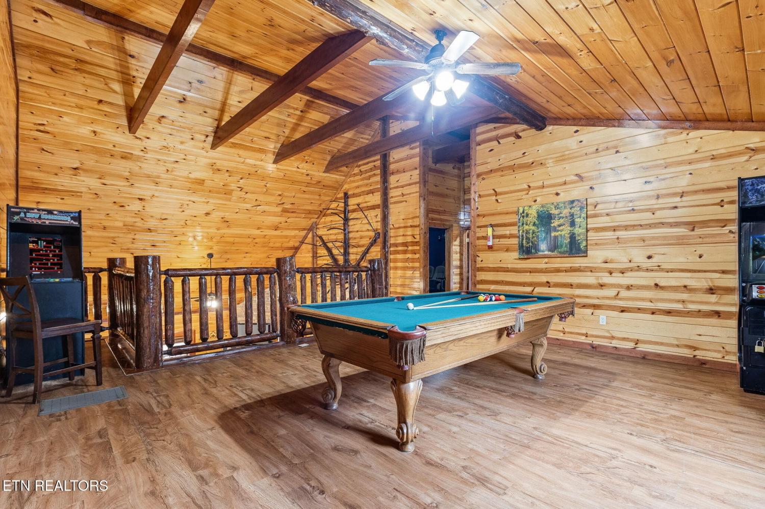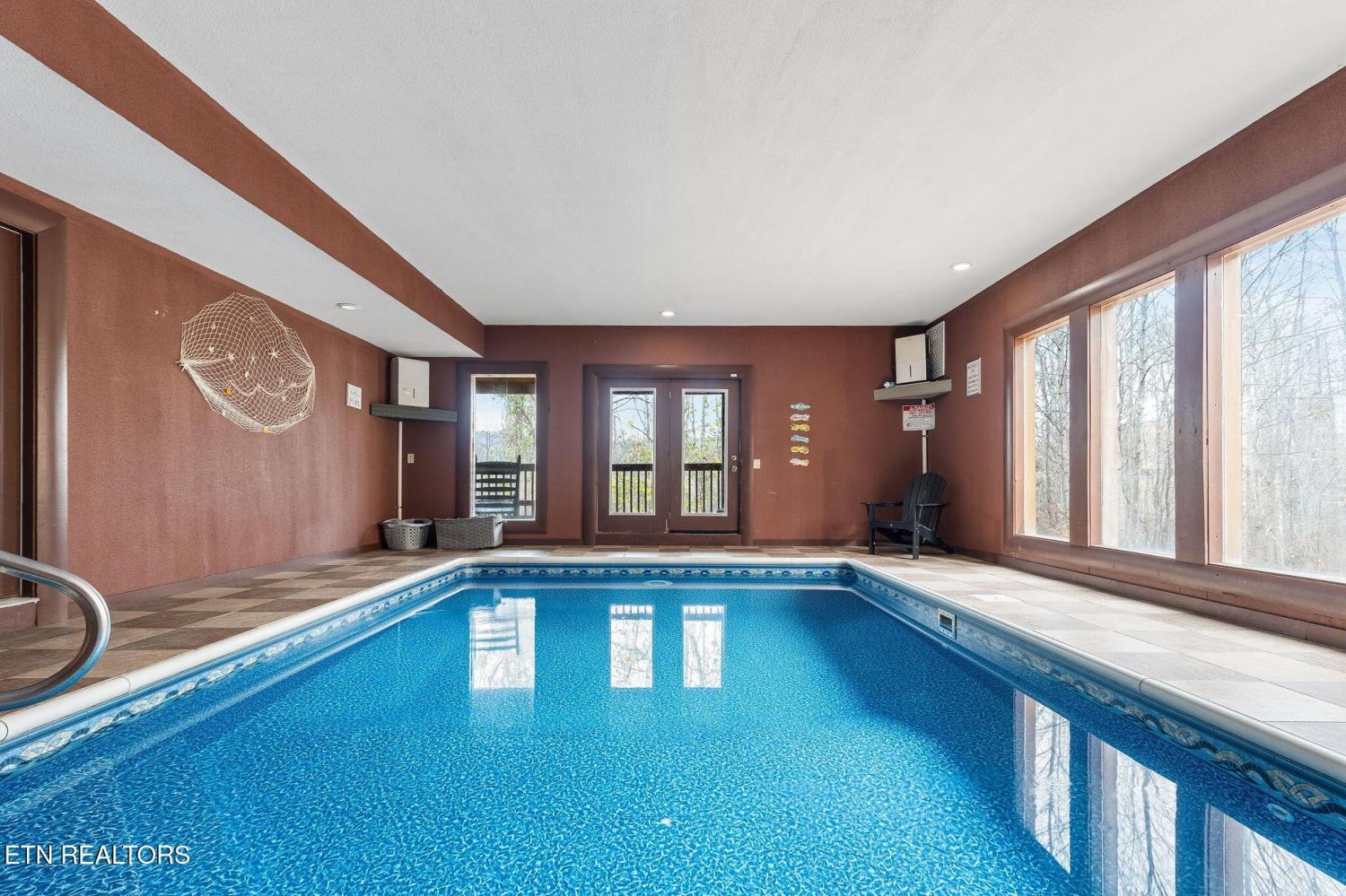 Welcome to Splish Splash Lodge, an exceptional retreat nestled in the scenic Cosby area of the Great Smoky Mountains. This stunning 5-bedroom, 4.5-bath cabin, is thoughtfully designed to elevate mountain living with its impeccable style, premium amenities, and unmatched comfort—offering accommodations for up to 30 guests. Step inside to discover a spacious great room that leads to your ultimate vacation enjoyment. Just beyond entering the cabin, you'll find a generously sized indoor pool with walls of windows that frame the breathtaking surroundings, perfect for year-round enjoyment. The lodge also features oversized bedrooms, a private upstairs theater with cozy movie seating, a custom-designed bunk room, and a sprawling loft that serves as the ultimate game room. Whether you're looking for an income-generating vacation rental or a luxurious private retreat, Splish Splash Lodge combines elegance, recreation, and relaxation to create the perfect Smoky Mountain getaway. This is your chance to own a property that offers not only unforgettable experiences but also tremendous investment potential. Don't miss this rare opportunity to make it yours!