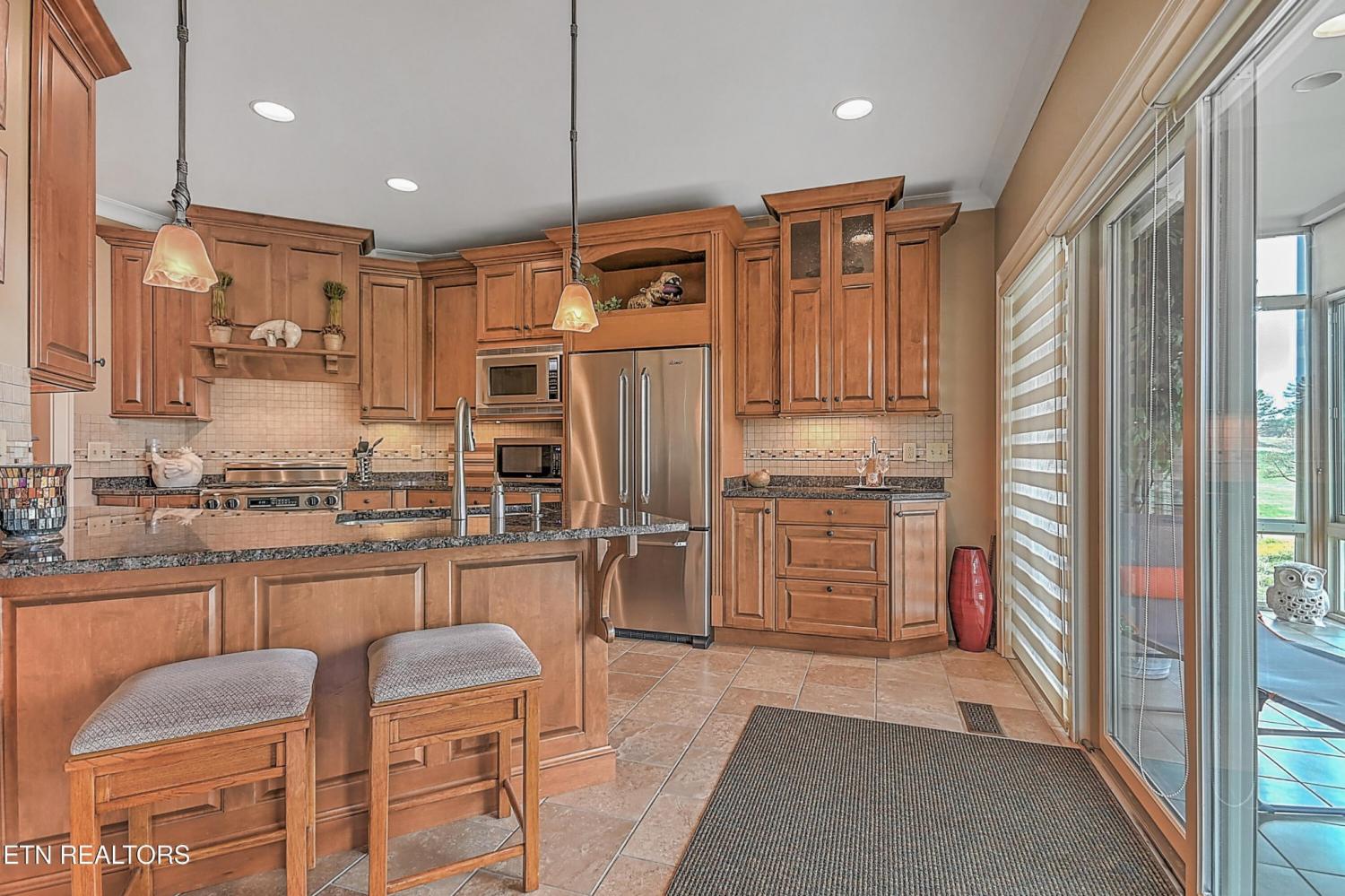 *Seller is offering a 1 Year Optional Gym Membership, Home Warranty, and paid 2025 HOA fees* Welcome to 351 Monroe Drive, a rare offering of golf course elegance in Bristol, TN! Overlooking the10th tee box of one of Bristol's most prestigious golf courses, this immaculate, move-in ready, main level living residence is located on a private cul-de-sac. This nearly 3,000 sq ft home is a masterpiece in timeless architecture and premium craftsmanship from the moment you enter the stately gated courtyard with understated grandeur featuring tray-lit ceilings, substantial baseboards, rich crown molding, custom windows, exquisite plantation shutters, surround sound, central vac, hardwood and tile throughout the main level and granite throughout. Premium kitchen outfitted with Dacor/LG stainless appliances, under-lighted soft-close cabinetry with pullouts, granite counters, tiled backsplash, extra pantry, and kick sweep. Exquisite primary ensuite and bath with tiled shower and Jacuzzi tub. Designed for both entertaining and relaxation, the home offers multiple living spaces anchored by a gas fireplace. Step into the heated/cooled sunroom or unwind on lower covered patio offering panoramic views of the emerald fairways. Additional bedroom/bath as well as laundry room with sink and oversized heated garage with epoxy flooring also on main. Downstairs offers an office/hobby niche as well as large bonus/flex/media room, wet bar, half bath and access to rear facing golf cart garage with direct access to golf. Rinnai tankless water heater, Carrier HVAC, Gypcrete soundproofing, insulated pipes, Aiphone intercom, security, and radon mitigation systems all integrated for a lifestyle of comfort. Worry free ownership with low utilities and robust HOA (insurance, structural and roof maintenance, lawn, pest control). New roof 2021. Walk to Lifestyle Fitness (golf, pool, gym, tennis, playground, cafe).