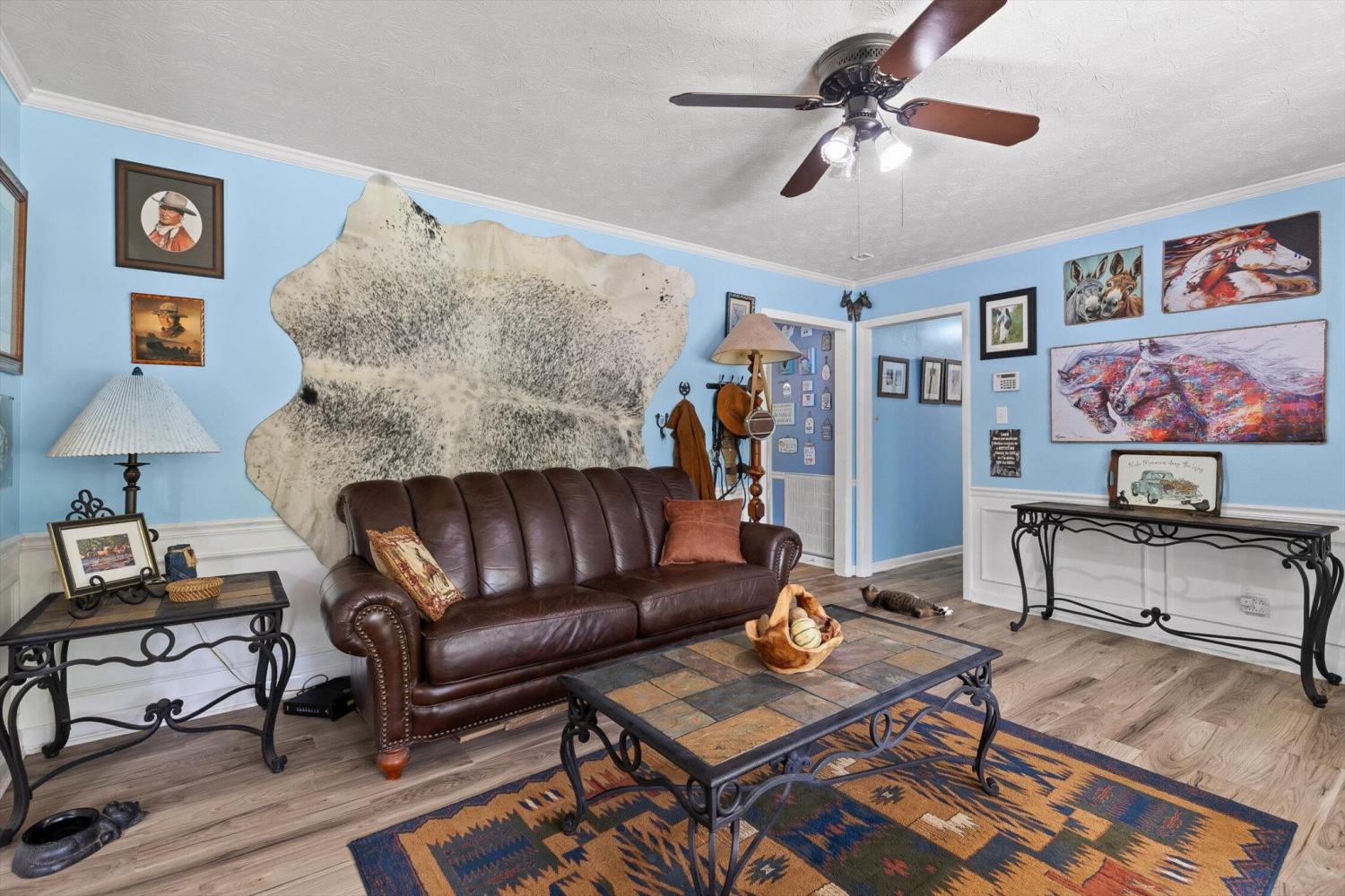 Spacious Living Just Minutes from Town! Welcome to this inviting home in the peaceful Skyline Heights neighborhood—close to downtown Lafayette, yet tucked away in a quiet, established community. Just inside, you'll find a large front room that could function as living space or oversized dining space. Just off this room, the converted massive family space/multi purpose room featuring luxury vinyl plank flooring, custom painted walls and the German Schmear fireplace, with be the heart of the home. This space is ideal for gatherings and everyday living. You will find the large laundry room offering extra storage space and flexibility just off the bonus room. The freshly painted kitchen offers ample storage space and a view of the private backyard. Just down the hall, three generous bedrooms and two full baths add to the functionality of this single level home. The private lot offers space, comfort, and convenience all in one. The screen porch, fenced yard and outbuilding provide additional space for hobbies, pets or time to just enjoy the outdoors. You'll have peace of mind with all the improvements inside but you can also rest assured with the three year old Trane HVAC unit and a transferrable lifetime warranty for foundation work completed by 58 Foundations (A $25,000 project for your peace of mind). Don't miss your chance to see this one—schedule your showing today!