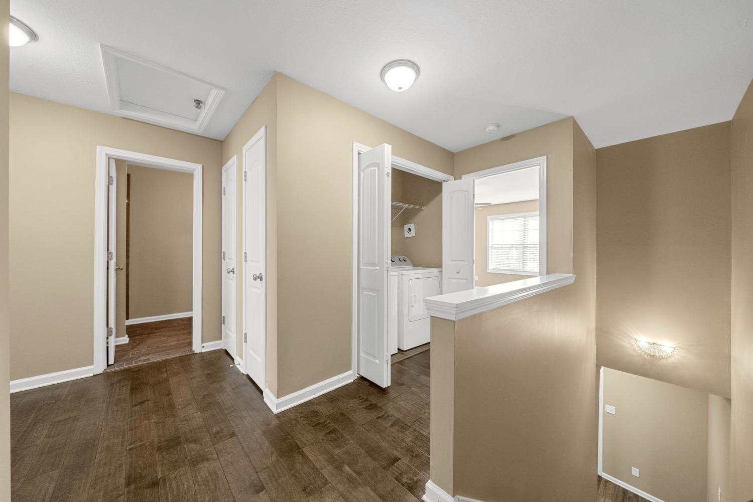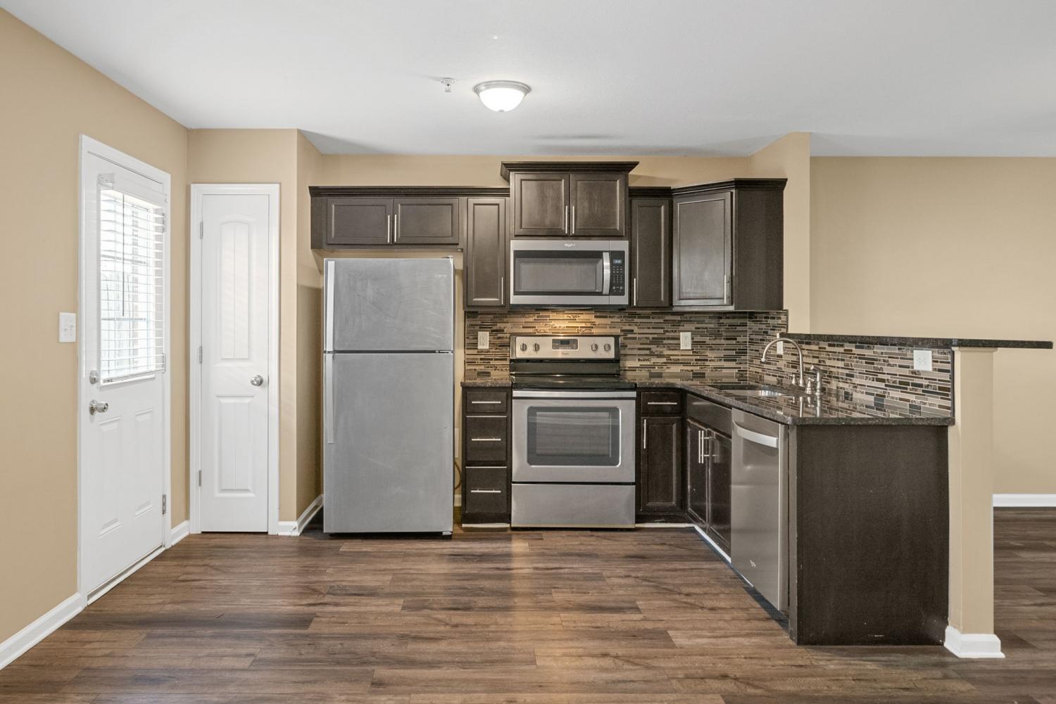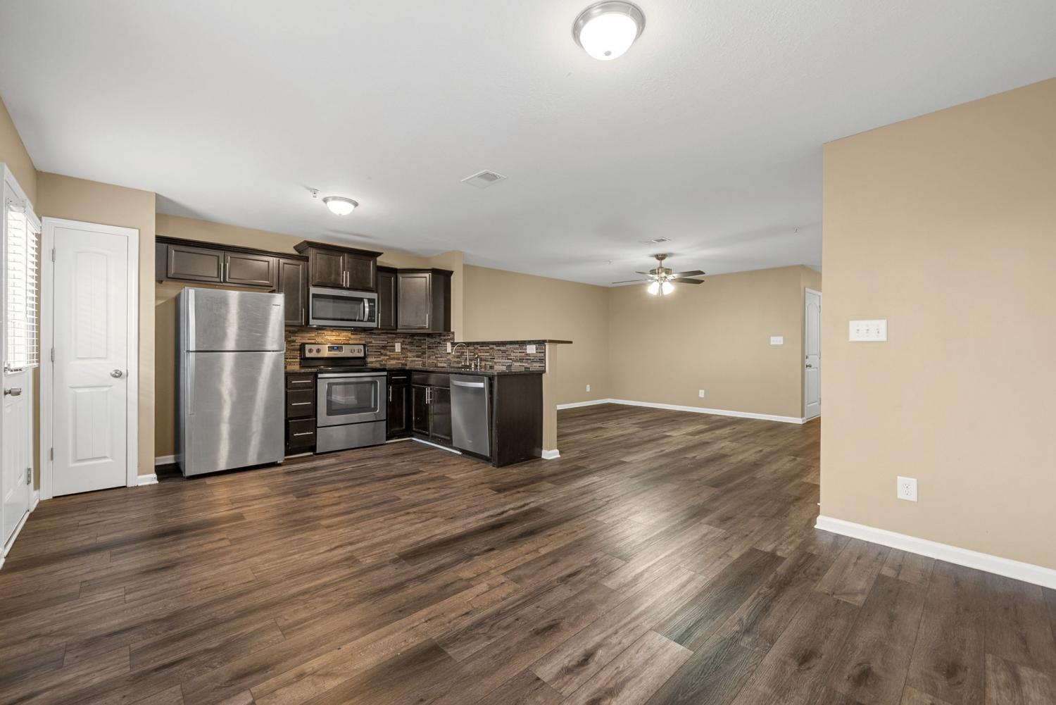 *Move-In Special First FULL months' rent FREE with a fulfilled 12-month lease agreement* This beautiful 3-bedroom, 2.5-bathroom townhome offers modern wood-look flooring throughout, giving it a clean and contemporary feel. The kitchen is equipped with stainless steel appliances, and the master bedroom features a spacious walk-in closet. A washer and dryer are conveniently located on the second floor. Additional storage is available with a 1-car garage and the option to rent a storage unit for an additional $60 per month. Flooring, cabinets, and light fixtures may vary by unit. Sorry, no pets allowed.