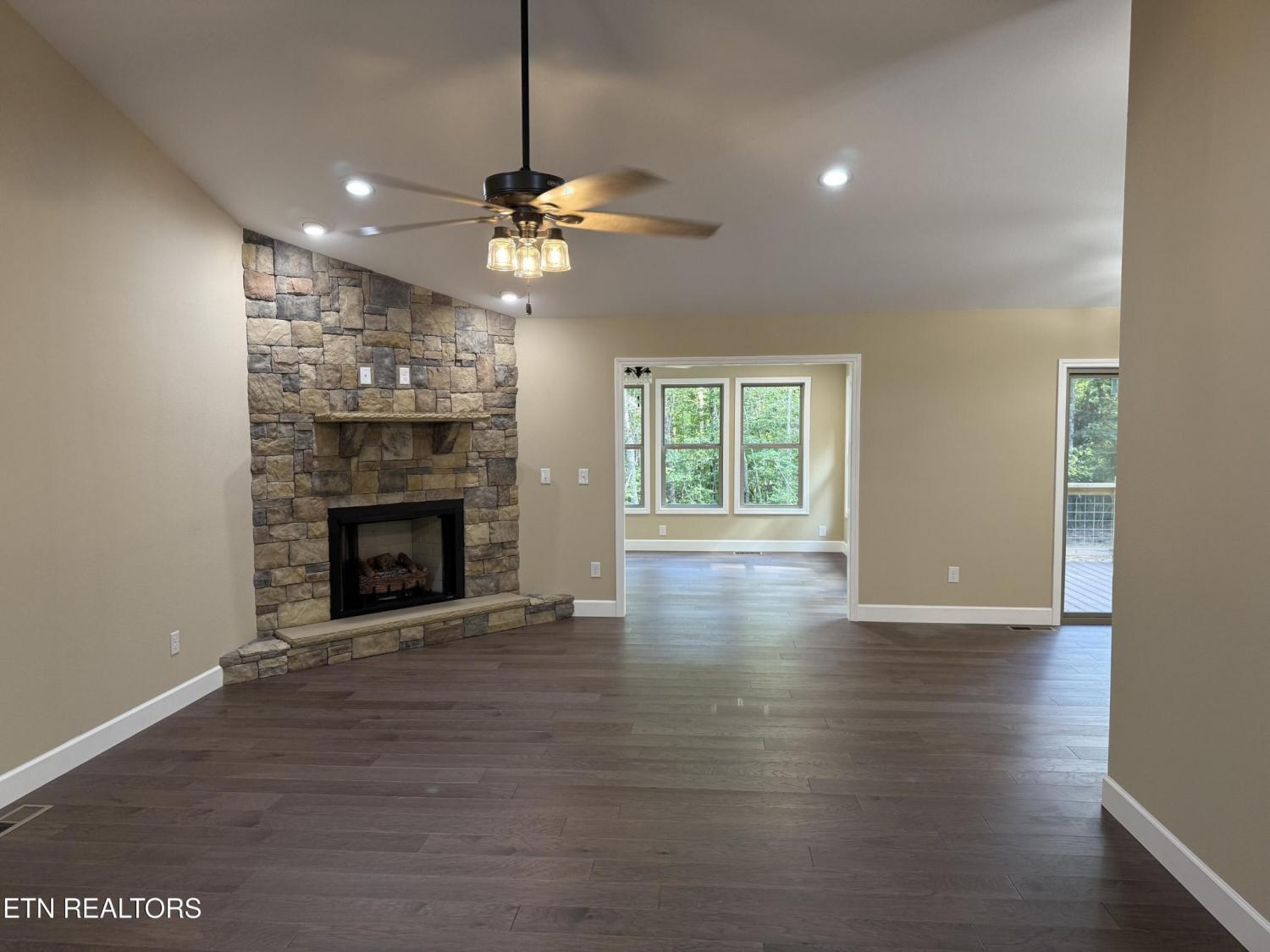 '' NEW CONSTRUCTION '' Located on a 1.2 Acre Wooded Creek lot. This is a 3BR/2BA + Sunroom 1818 sq.ft. home. It has a spacious Open Floor plan w/Stone Gas Log Fireplace in Living Room. Wood floors throughout, Tiled floors in bathrooms and laundry. Solid Wood Cabinetry, Granite tops on the Kitchen Counters, Breakfast Bar and Bathroom Vanities. Tiled shower in the Master Bath & Double Sinks. Trey Ceilings in Master BR. Stainless appliances in Kitchen incl. Microwave, Dishwasher, Gas Stove/Oven. Natural Gas Heat and 40 Gallon Gas Water Heater. Vaulted Ceilings in Great Room & 2nd BR. The Deck has Trex flooring. Natural Gas, City Water & High Speed Fiber Optic Internet Service (available.) Sod in front yard and paved driveway soon to be completed. Located in Cumberland Cove about a 15 min drive to Cookeville or Crossville where you have all amenities. Approximate Completion Date of September 2025.