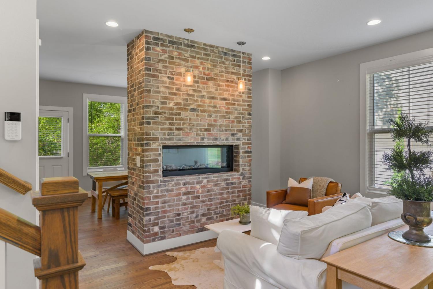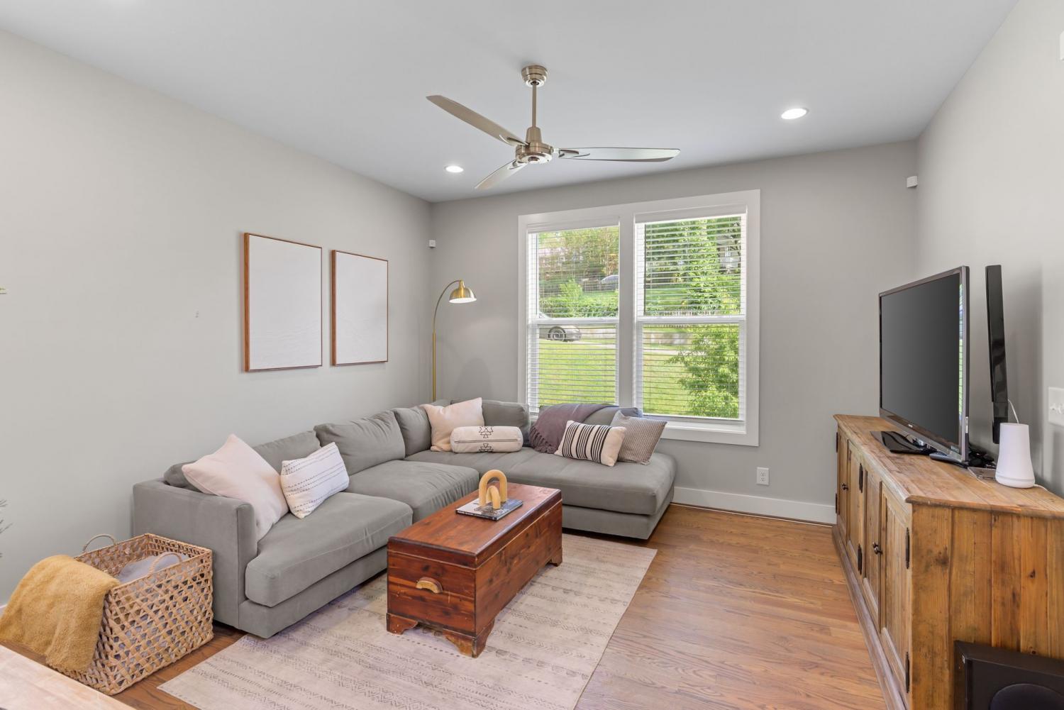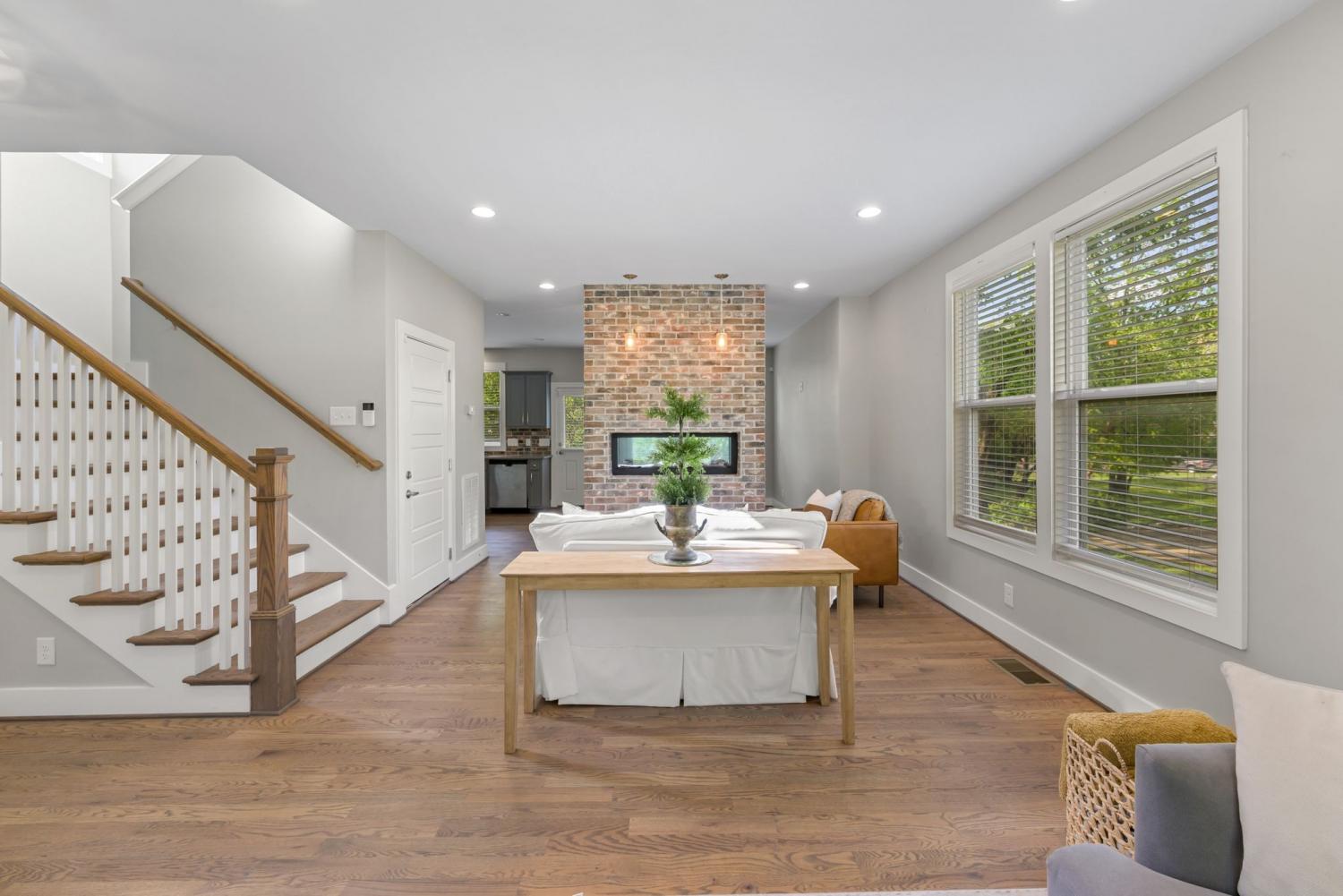 Spacious and stylish, this home features an open floor plan with hardwood floors, large windows, and a stunning double-sided brick fireplace between living and dining areas. The kitchen offers granite countertops, and stainless appliances. Upstairs: a private primary suite with walk-in closet, plus two more bedrooms and full bath. Laundry also on bedrooms level! The finished walk-out basement includes a 17x26 media/game room with built-in banquette and a 12x7 fitness room—ideal for today’s lifestyle. Located just minutes from Downtown Nashville, GEODIS Park, and Nolensville Pike dining.