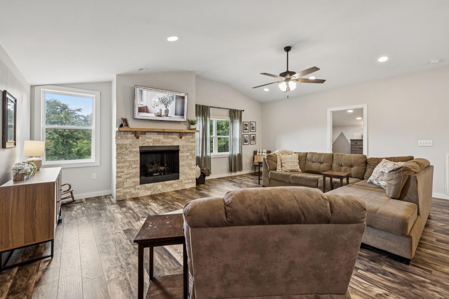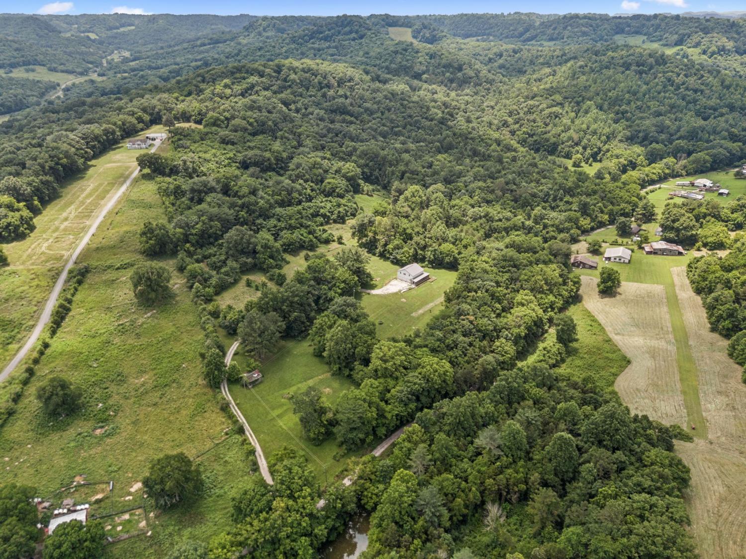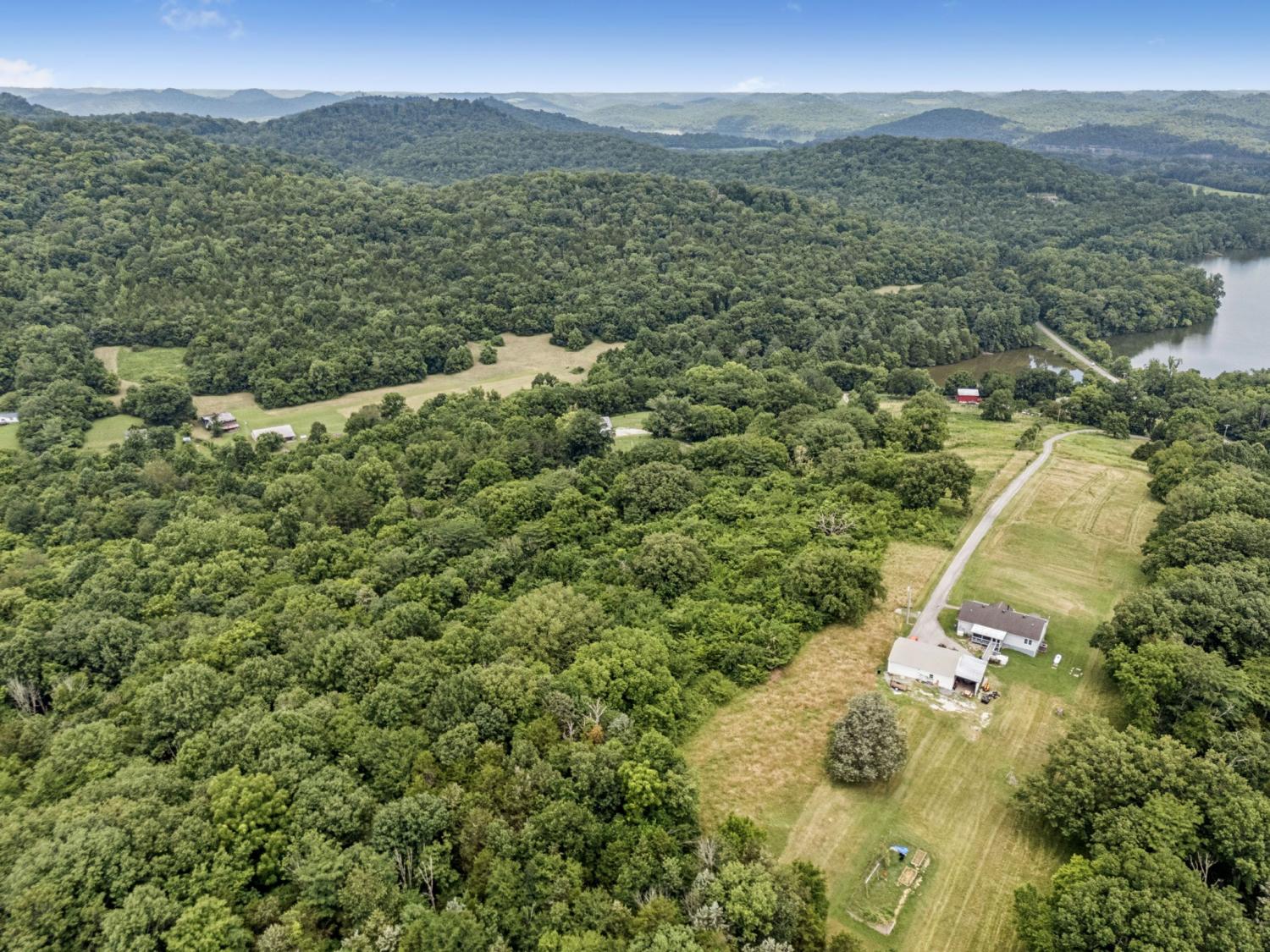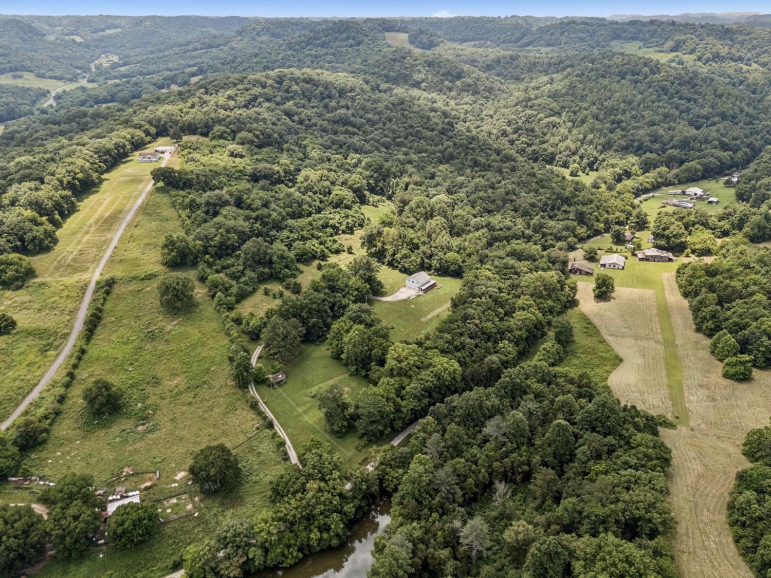 BACK ON THE MARKET due to the Buyers home did not sell. Private home on 17.59 acres - Perfect getaway for the family! Enjoy the private drive as you pass the Cumberland River, go past the old barn (old home torn down) and as you turn the corner - you see this 1600sf home with a 3 car garage (also 1600sf) ready for your fishing boat and RVs. Built in 2020, this open concept is beautifully laid out with a gas fireplace. The room marked as an office space is currently being used as a 3rd bedroom. One bathroom and laundry room are in the garage. Enjoy grilling out on the covered porch then move on to the screened in area to enjoy the evening (added on in 2023). The siding and the roof are tin material. This truly is a beautiful setting and less than an hour from Nashville airport. You have to see this one! Perfect place for a B&B.