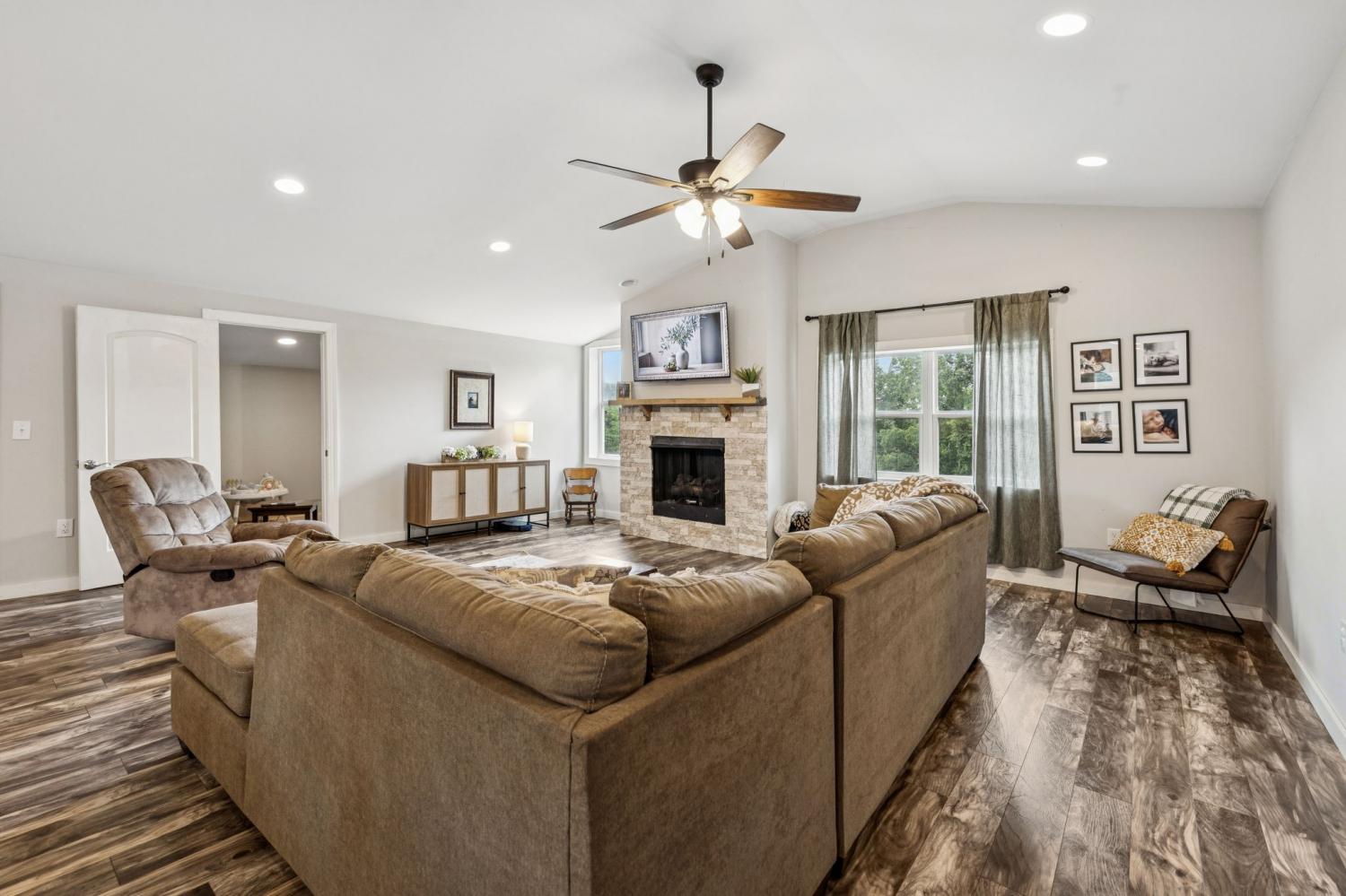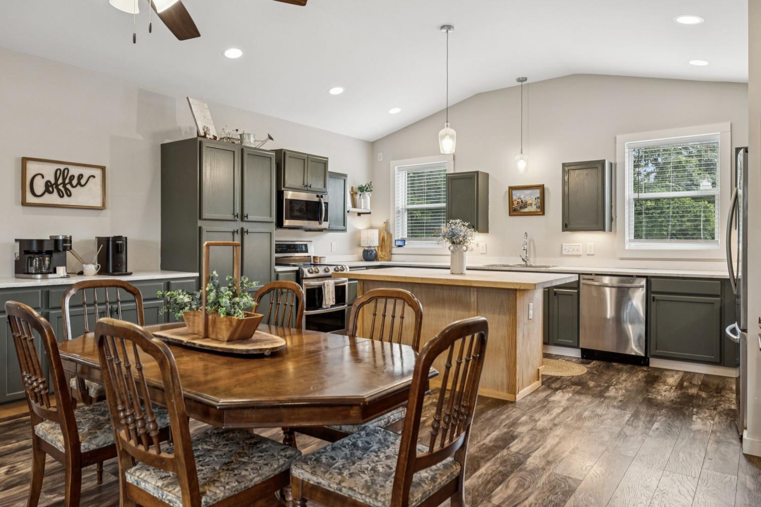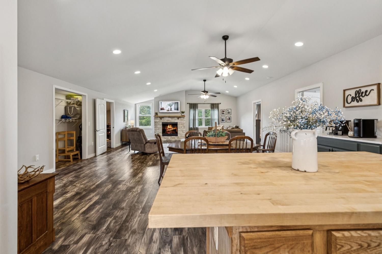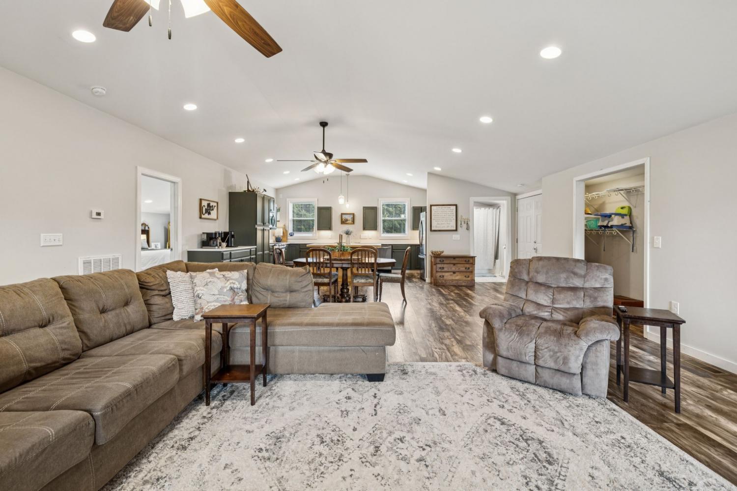 BACK ON THE MARKET due to the Buyers home did not sell. Private home on 17.59 acres - Perfect getaway for the family! Enjoy the private drive as you pass the Cumberland River, go past the old barn (old home torn down) and as you turn the corner - you see this 1600sf home with a 3 car garage (also 1600sf) ready for your fishing boat and RVs. Built in 2020, this open concept is beautifully laid out with a gas fireplace. The room marked as an office space is currently being used as a 3rd bedroom. One bathroom and laundry room are in the garage. Enjoy grilling out on the covered porch then move on to the screened in area to enjoy the evening (added on in 2023). The siding and the roof are tin material. This truly is a beautiful setting and less than an hour from Nashville airport. You have to see this one! Perfect place for a B&B.