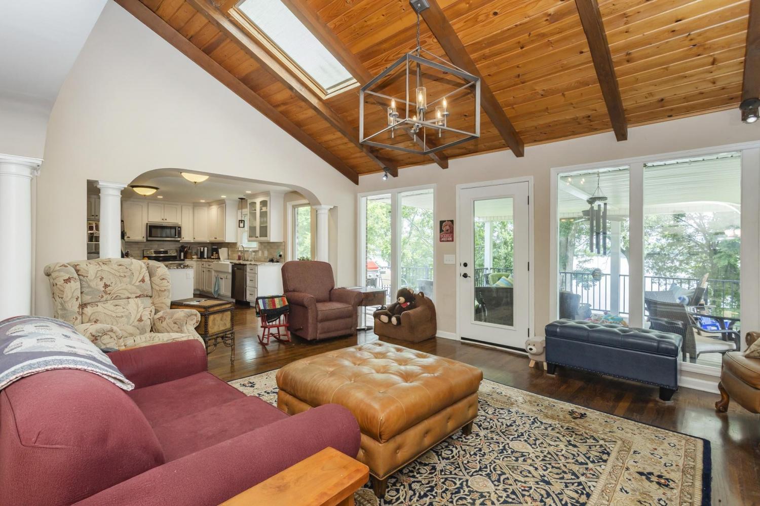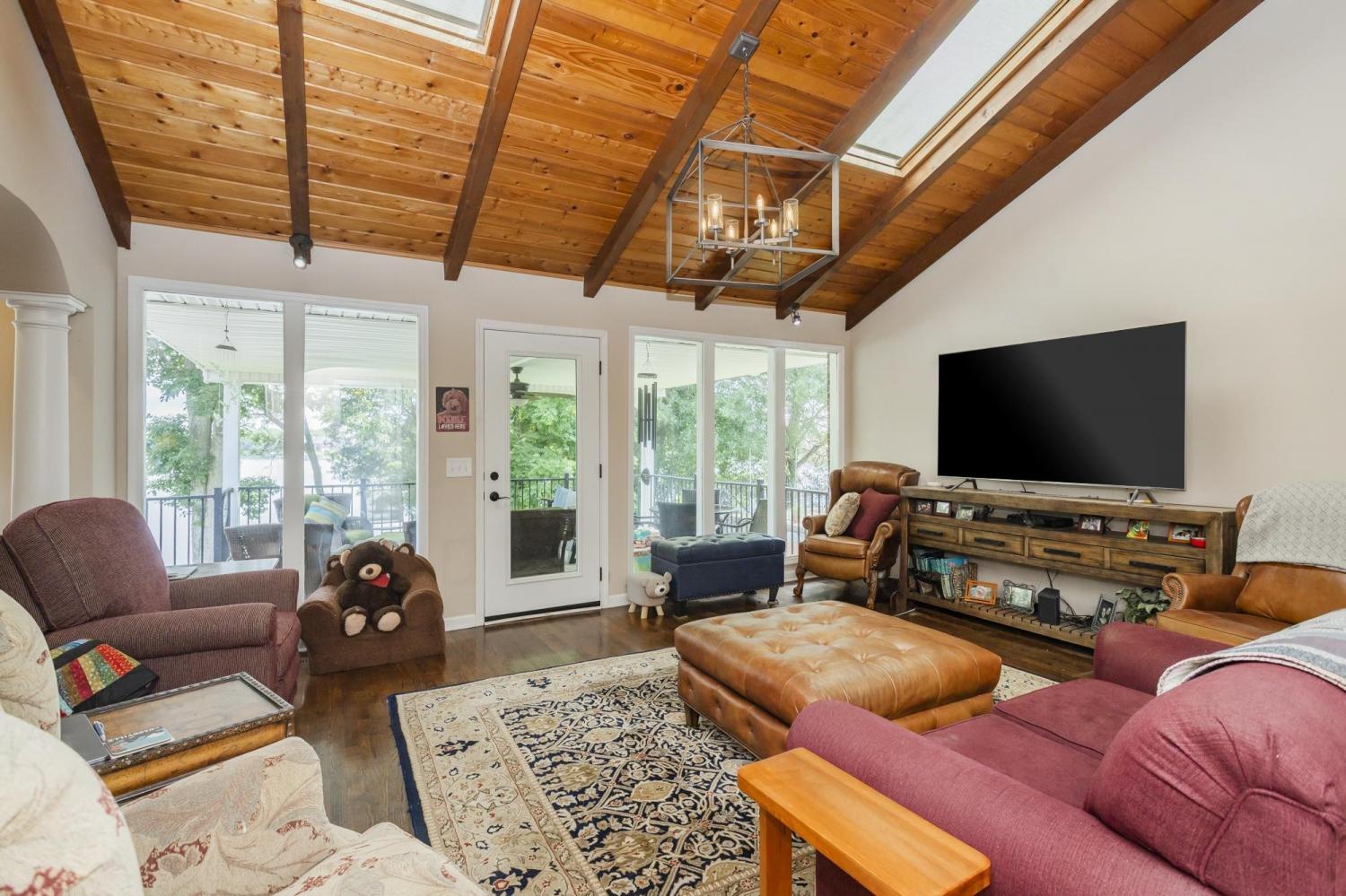 LAKEFRONT WITH DOCK on Old Hickory Lake! This beautiful 3-bedroom, 2.5-bath brick ranch offers the perfect lakefront living with one-level convenience, solid brick construction, tranquility in and out. Open floor plan with hardwood floors and natural light floods throughout. The spacious living room features soaring vaulted ceilings and a seamless flow into the dining area and kitchen designed for both function and entertaining—with granite countertops, stainless steel appliances, and ample storage. The primary suite has a walk-in closet and en-suite bath. Two additional bedrooms share a full bath, while a half-bath conveniently serves the rest of the house. Enjoy peaceful mornings and unforgettable sunsets from your back deck, just steps away from the lake! The gently sloping backyard leads to your private shoreline access with private dock and boat lift! 2-car garage, mature landscaping and no HOA!!