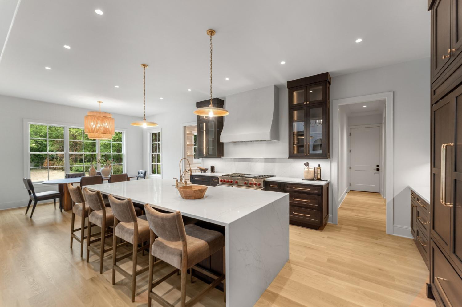 Located just minutes from the heart of Brentwood, this meticulously designed Brenthaven residence sits on a level, one-acre lot—providing both generous space and exceptional potential, including ample room for a pool. Thoughtfully crafted with an open and functional layout, the home offers a seamless flow that balances spaciousness with warmth. At its center lies a chef’s kitchen designed for effortless entertaining, featuring Sub-Zero refrigeration, a Wolf gas range, a prep kitchen, and a large walk-in pantry. Expansive stacking patio doors open to the backyard, creating an ideal indoor-outdoor living experience for relaxed gatherings or quiet afternoons. The main-level primary suite serves as a tranquil retreat, enhanced by natural wood beam accents and a spa-inspired en suite bath. Upstairs, you'll find well-appointed secondary bedrooms, two versatile bonus rooms—including one with a wet bar—and a secondary laundry room for added convenience. A hidden third-floor bonus space adds a unique touch, offering a flexible area that can easily serve as a home gym, creative studio, game room, or private escape. Zoned for some of Brentwood’s most desirable schools—Lipscomb Elementary, Brentwood Middle, and Brentwood High—this home offers a rare combination of timeless design, everyday functionality, and prime location in one of the community’s most established neighborhoods.