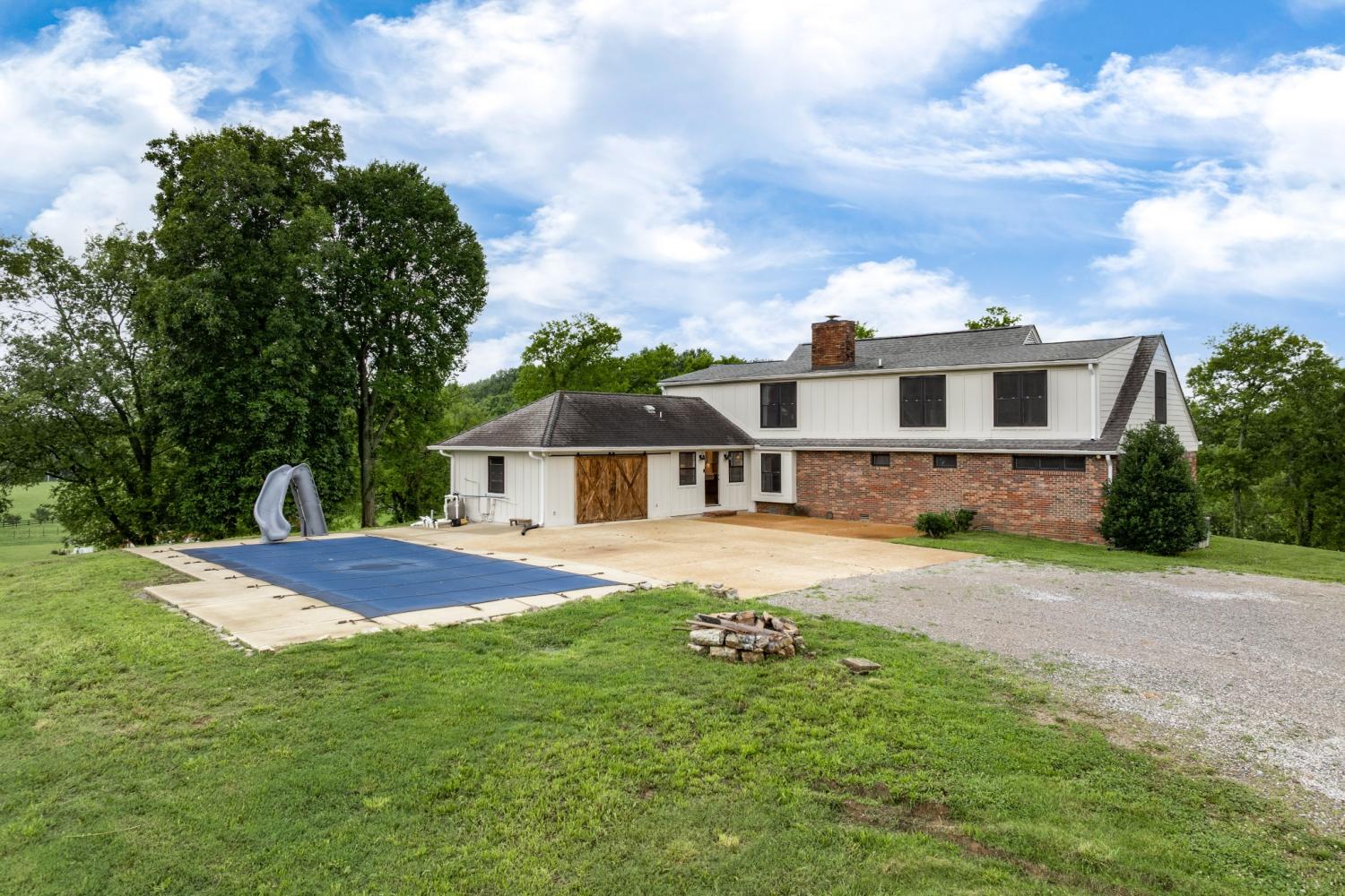 Country Living on 10.7 acres and 3,778 sq feet of living space, featuring an inground pool w/ slide that awaits for your summer parties. This 3 bedroom 4 full tiled baths features an open concept of Kitchen, Family Room and Dining combo. The kitchen offers a farm sink, walk in pantry, oversized sit down island, gas stove w/ pot filler, extra freezer, tiled back splash and commercial Refrigerator. Preparing meals will be easy with an extra prep area, including a sink, and a double oven. The triple window allows natural light to shine in while enjoying the views of the surrounding rolling hills. The spacious dining area allows for large gatherings and sit down dinners so everyone can enjoy meals together. A brick Fireplace w/ a wooden beam mantle and gas logs are featured in the Family room. Conveniently, off the driveway, the back entrance has a brick floor entry and a full bath w/ tiled shower. The Primary Bedroom suite is located on the main level and offers a walk in closet, soaking tub and oversized tiled shower. A secondary bedroom and full tiled bath is also located on the main level. The wooden steps lead up to the 2nd story where another bedroom and full tiled bath with soaker tub and floating cabinet are located. Also, upstairs you will find the generous size Bonus Room with sink and cabinets, multiple walk in closets and a storage room. The yard is ready for many hours of playtime or quietly sit on your front porch and watch a beautiful sunset. With 10.7 acres to roam you have many options - COME HOME to 8025 Dry Creek !!