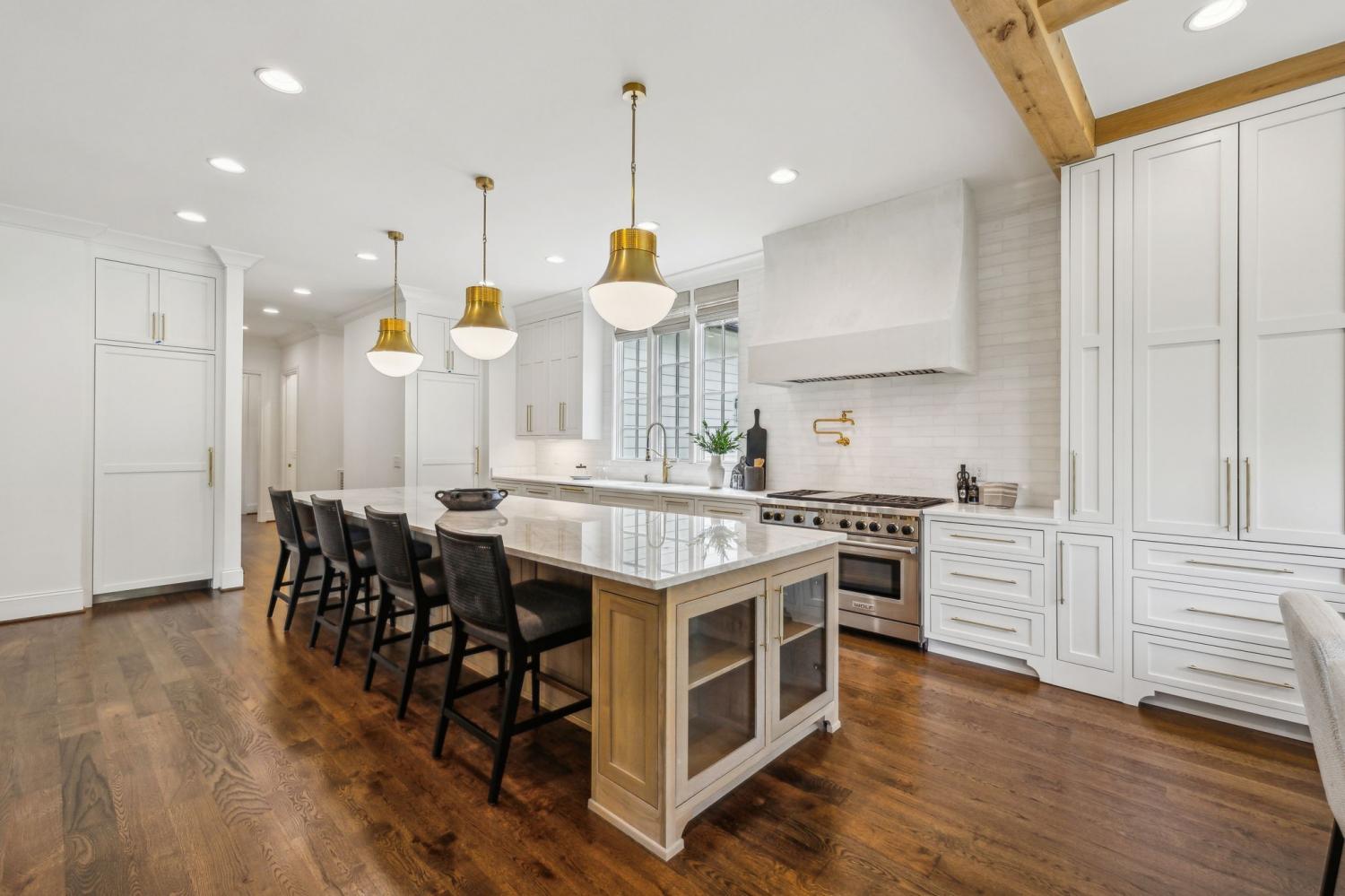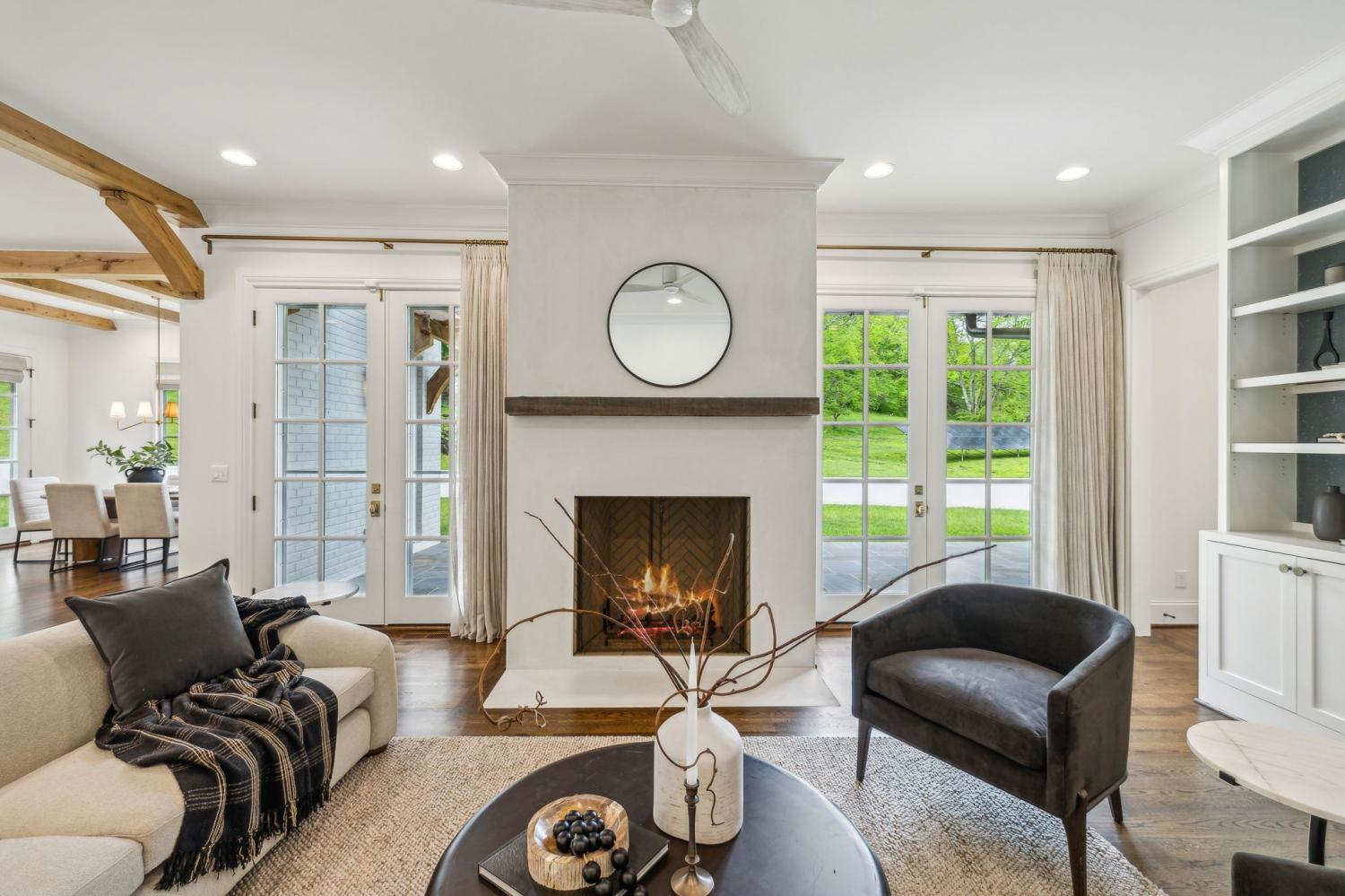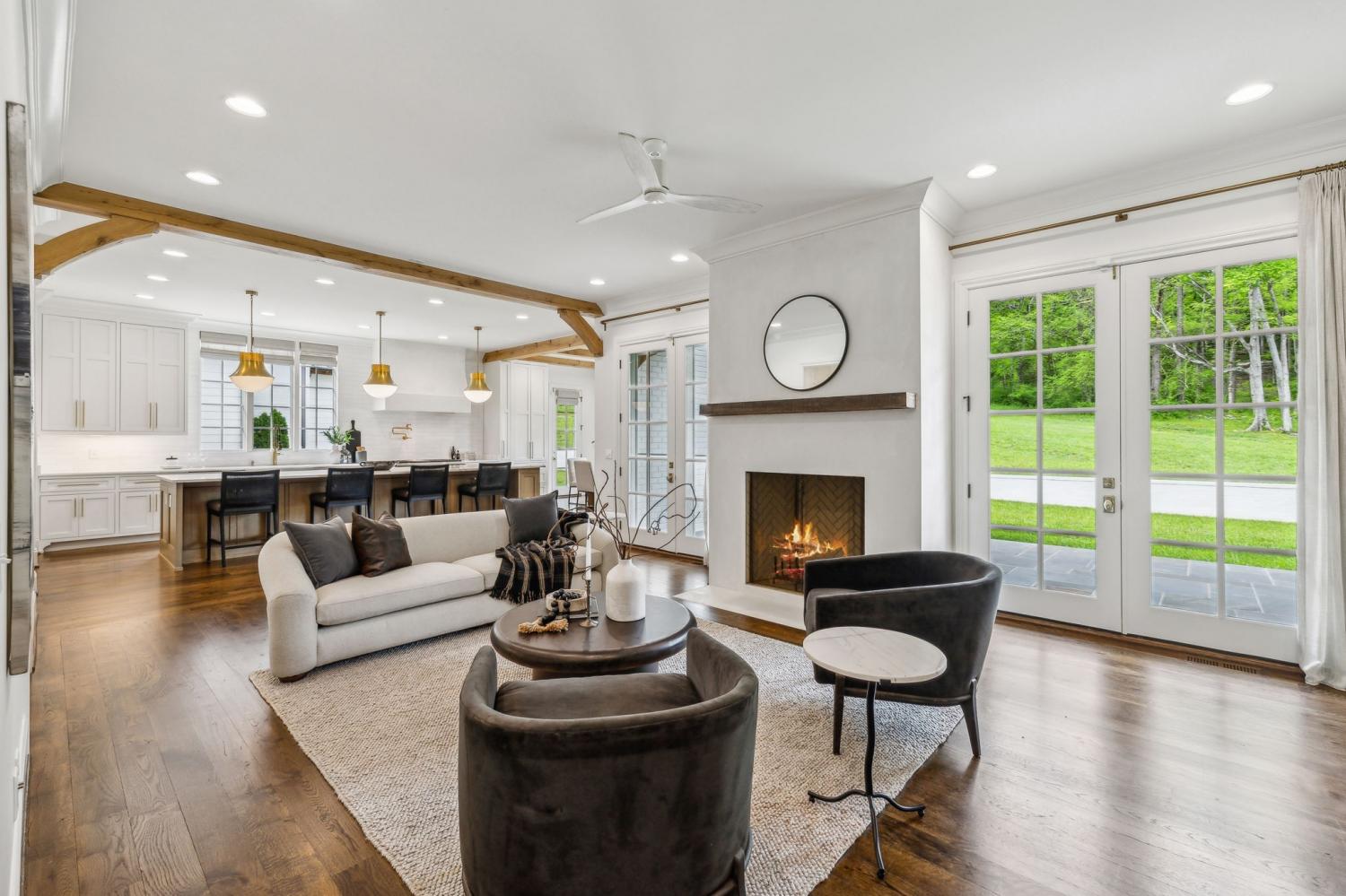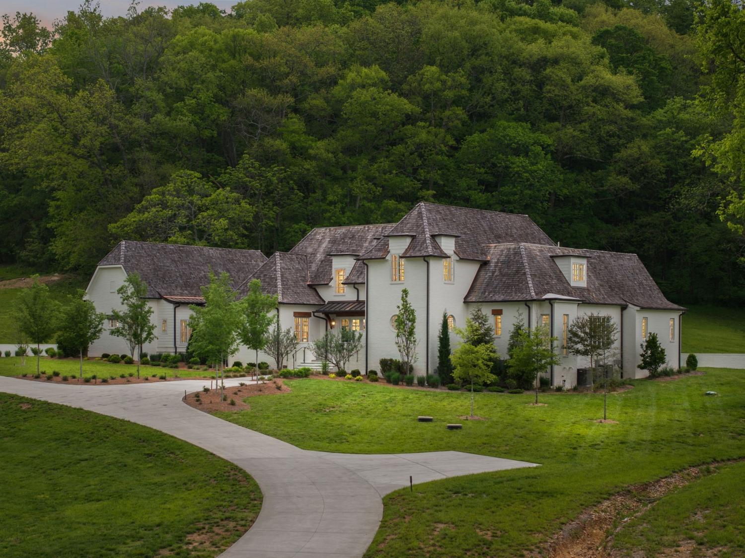 Welcome to an extraordinary private estate in picturesque Leipers Fork, masterfully crafted by the esteemed Baird Graham Builder with architectural design by the renowned Paul Bates. This European-inspired residence seamlessly blends into its breathtaking natural surroundings, with a cedar shake roof and copper accents enhancing its timeless elegance. Nestled on 8.15 pristine acres along one of Leipers Fork’s most coveted roads, this exceptional home offers over 6,000 square feet of refined living space, unparalleled privacy, and sweeping countryside views. Inside, five impeccably designed bedrooms and five-and-a-half luxurious bathrooms showcase meticulous craftsmanship and attention to detail. At the heart of the home, a chef’s kitchen serves as a true culinary masterpiece, featuring a stunning Taj Mahal Quartzite island, custom cabinetry, and top-tier appliances—including a Thermador column refrigerator and freezer, Thermador microwave, and a professional Wolf gas range with six burners, a griddle, and a double oven. Thoughtfully curated designer lighting, elegant beam detailing, and refined crown molding add layers of warmth and sophistication throughout. Named the Resilient House, this home is a testament to energy efficiency and modern innovation. A cutting-edge 15kW solar power system supports off-grid living, complemented by dual water sources (both well and city) and a whole-house filtration system. The home is prepped for seamless generator integration, ensuring continuous comfort and security. A gated entrance and fully monitored security system provide ultimate peace of mind. Additional highlights include an oversized three-car garage with epoxy flooring and custom cabinetry, along with ample storage throughout. Designed for both luxury and sustainability, this remarkable estate offers a rare opportunity to experience refined country living at its finest.
