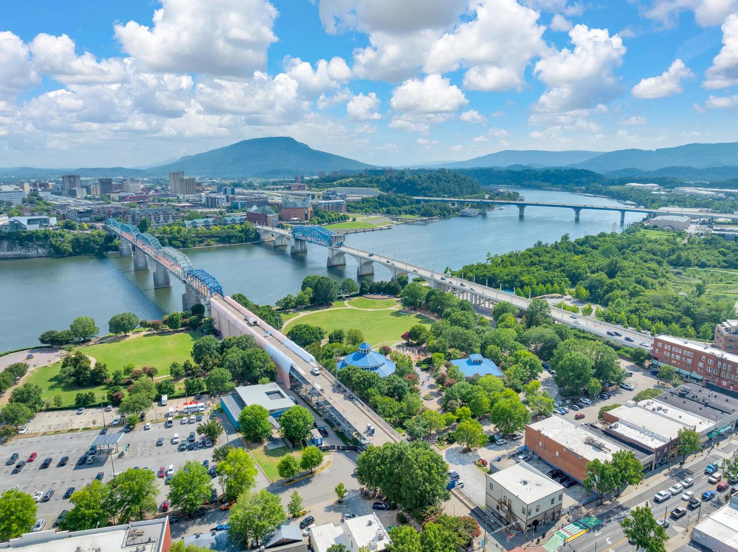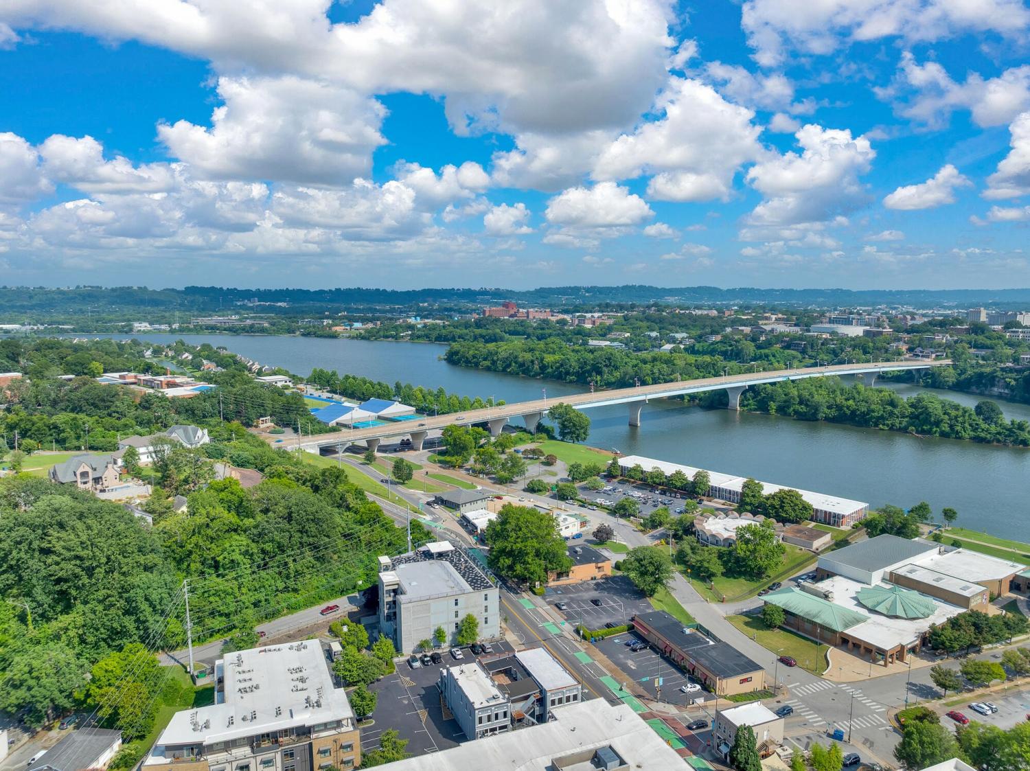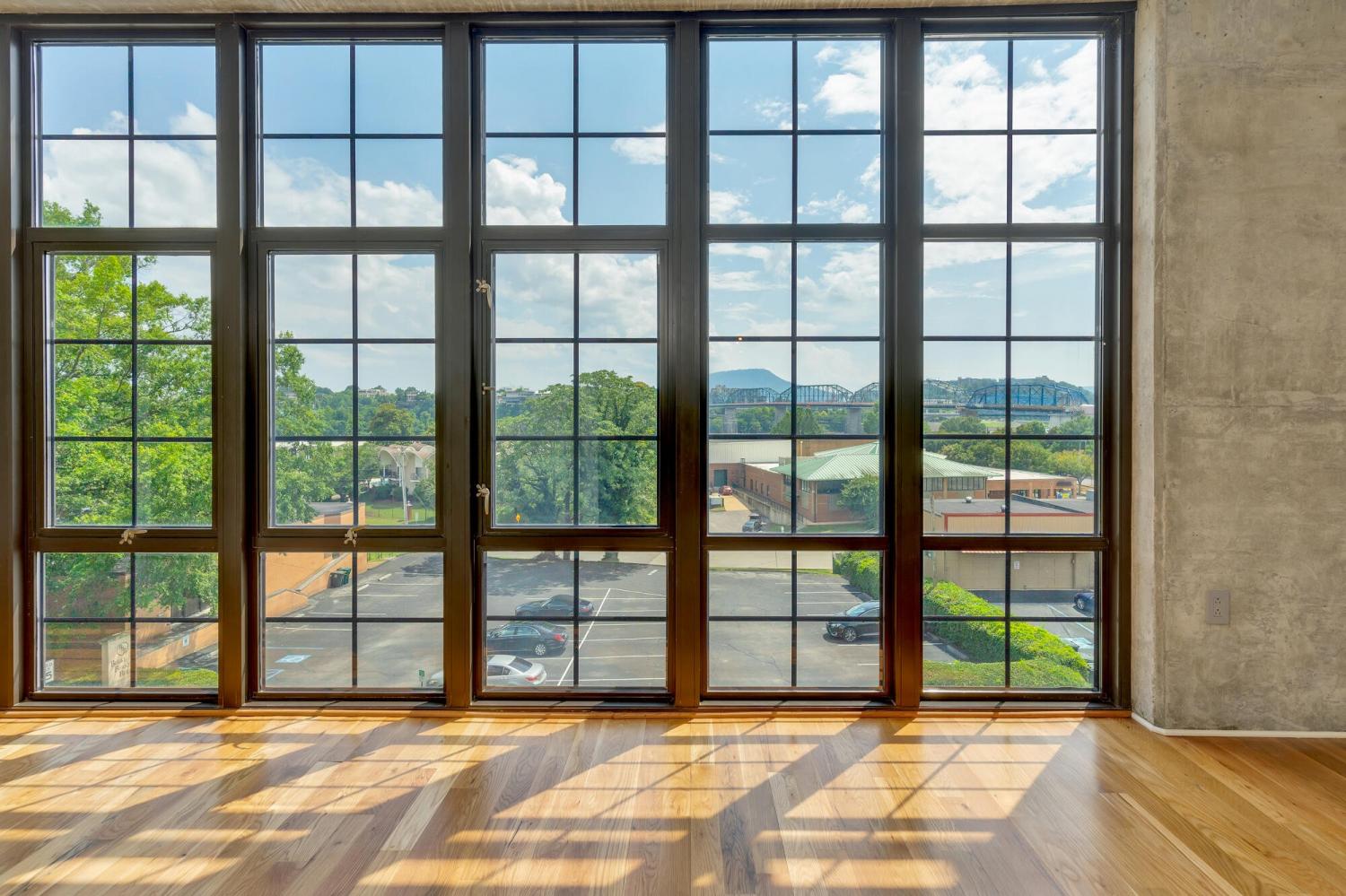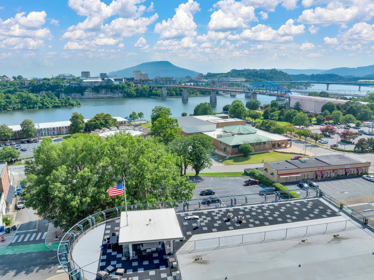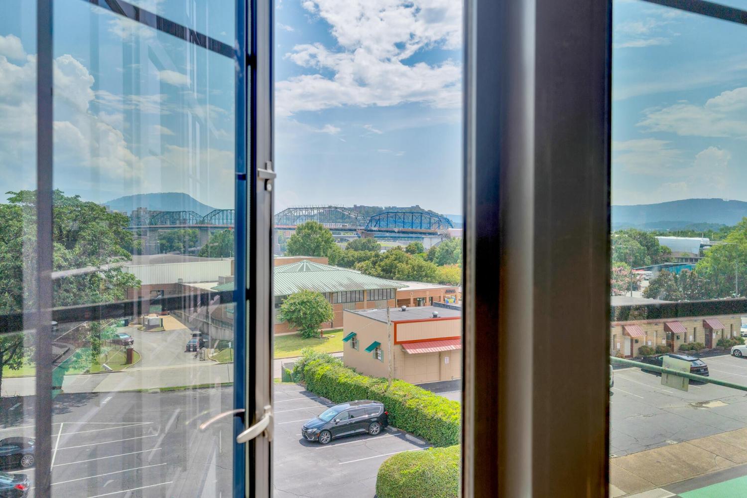 Live in the heart of Chattanooga in this luxury 2-bedroom, 2.5-bath condo on iconic Frazier Avenue. With stunning skyline views stretching from the Hunter Museum and the Tennessee Aquarium to the Walnut Street Pedestrian Bridge and Signal Mountain, this home offers front-row access to everything that makes Chattanooga unforgettable. And who needs to get into a car when you have shops, restaurants, grocery stores, and parks just right outside your door? Inside, you'll find refinished hardwood floors, high concrete ceilings, and a fireplace that can be used as gas or electric. The sunroom overlooks vibrant Frazier Ave and connects directly to both the living room and the spacious primary suite—so you can wake up to scenic city views every morning. The upgraded kitchen includes a recently replaced refrigerator and dishwasher for modern convenience. Head upstairs to the rooftop patio, complete with a covered lounge area, grill, and panoramic views—perfect for entertaining or enjoying fireworks without leaving home. The building has great security with a secure parking garage and a fob needed for any entry. The HOA takes care of common area maintenance, water, gas, sewer, and even trash pick-up twice a week, making day-to-day living effortless. The unit includes two storage spaces—one just steps from your door and another on the ground level—as well as two oversized parking spaces in the secure garage, with additional guest parking available in the lot. And who needs a backyard when Coolidge Park is your front yard? This is truly low-maintenance, luxury living at its best in the heart of Chattanooga.