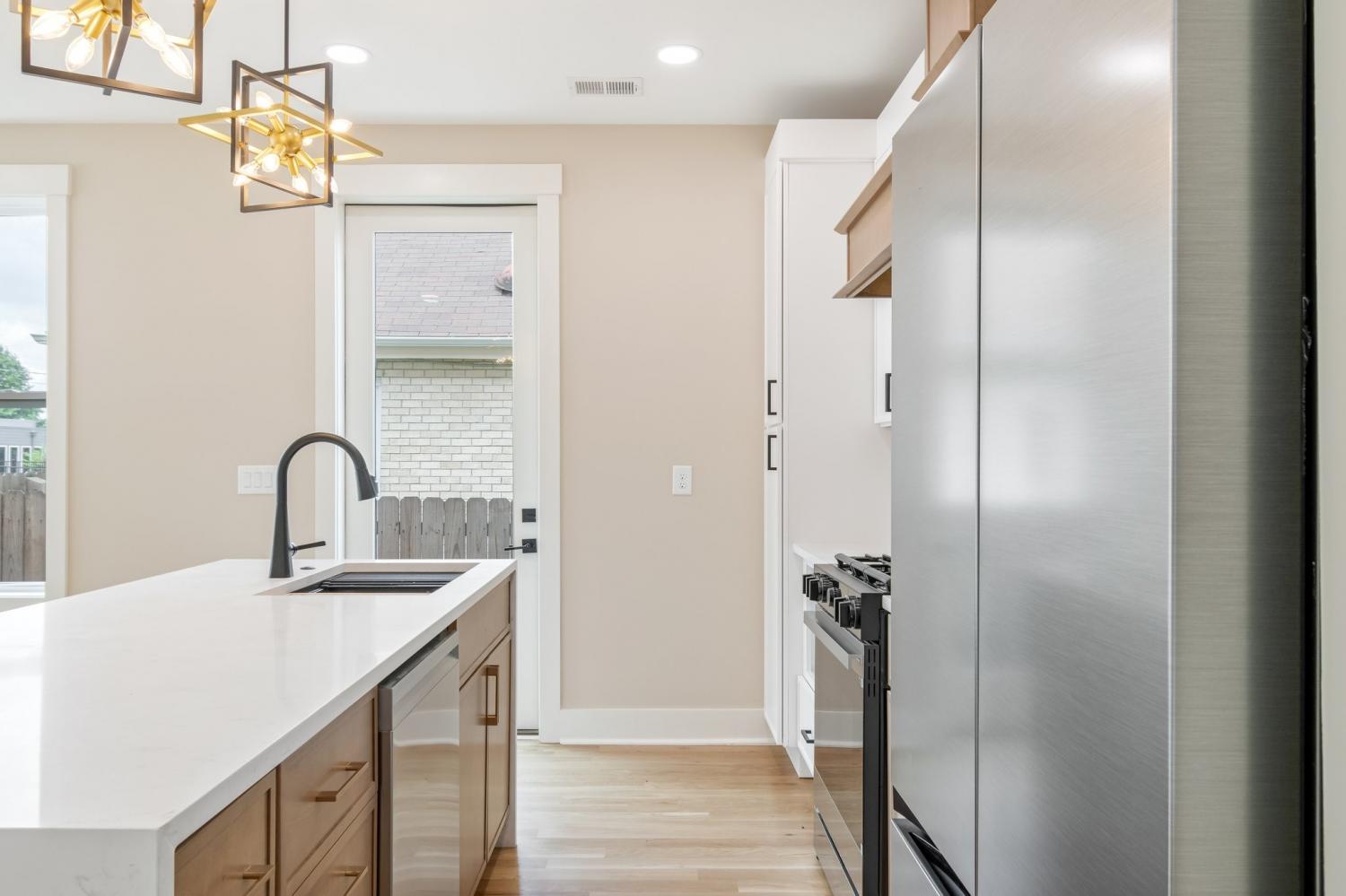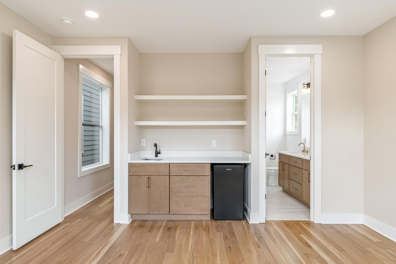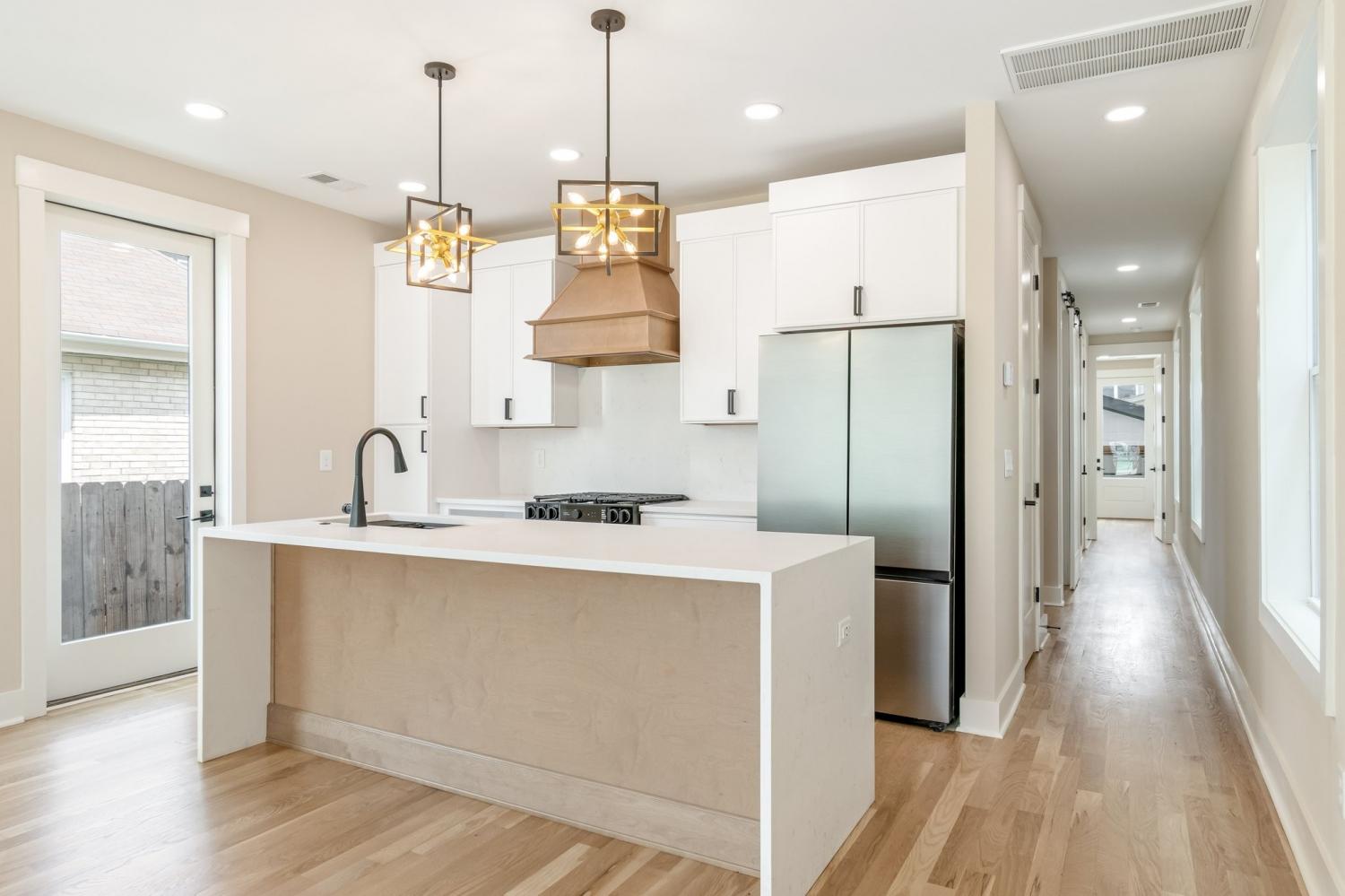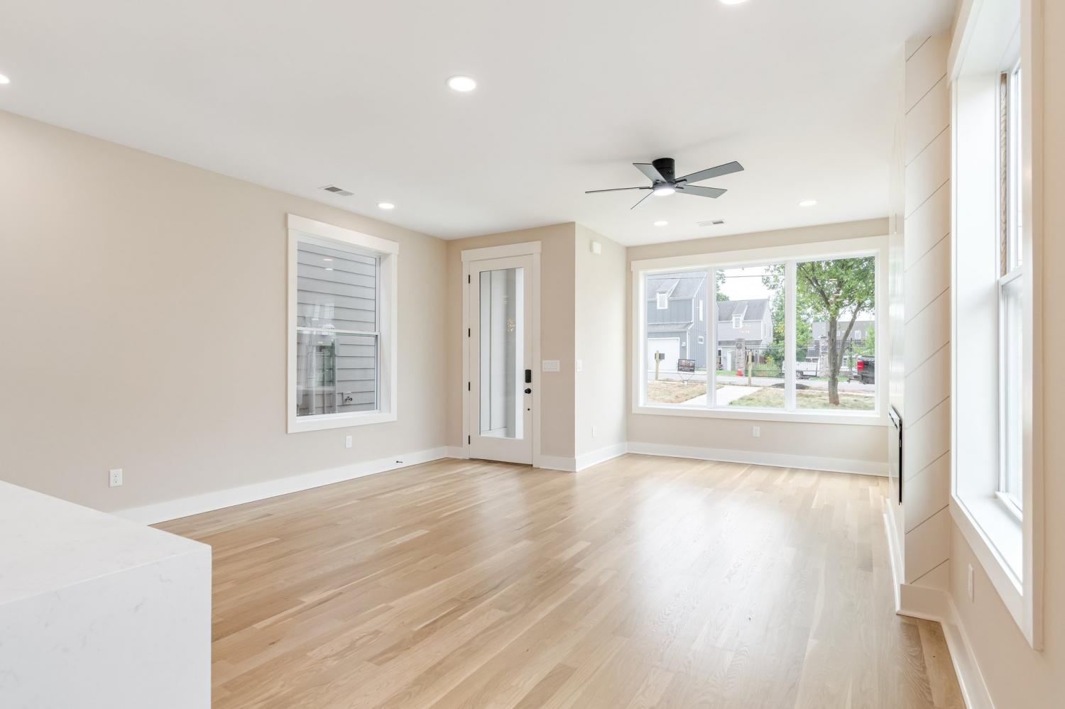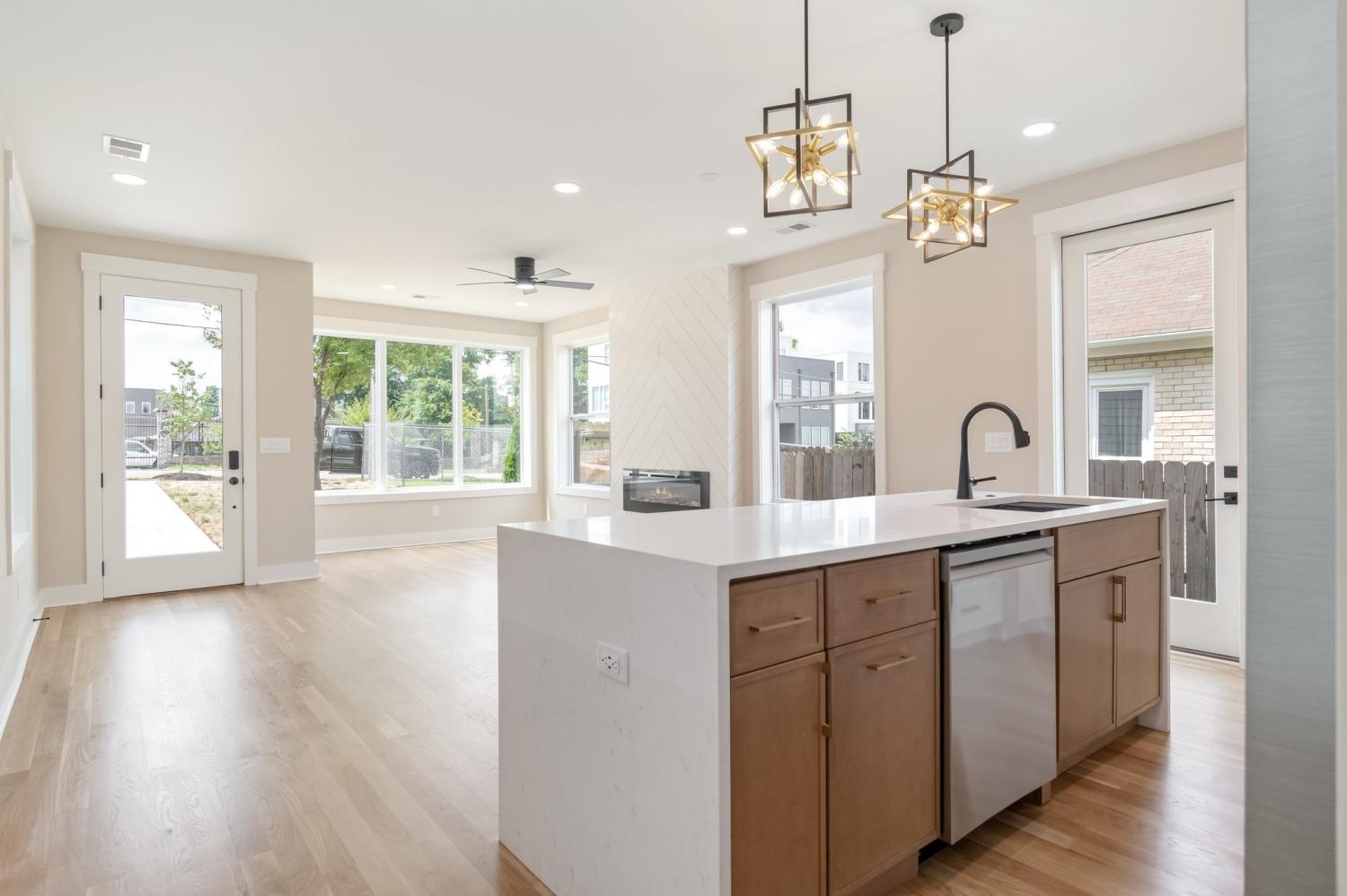 Welcome to your bright, sun-washed urban oasis! This stunning 4 bedroom, 3.5 bath, single-family home offers a perfect blend of modern elegance and thoughtful design just minutes from downtown Nashville. Step inside to discover a spacious open floor plan with features 3/4" white oak floors- sanded and finished to perfection- flowing throughout the home. Souring 9-foot ceilings on the main level and vaulted ceilings in the upstairs bedrooms create a light-filled airy feel. the chef's Kitchen is a true showstopper, featuring quartz countertops, full-height quartz backsplash, stainless appliances with gas range- all anchored by sleek modern cabinetry. The Great Room is anchored by a custom wood-accent fireplace surround adding warmth and sophistication. This home boasts 2 primary suites - one on each level- offering flexibility for guests or multigenerational living. The first- floor primary suite includes a wet bar and mini fridge perfect for adding convenience or entertaining. Each bedroom features its own en-suite bath designed with double quartz vanities and ceramic tile finishes. Both primary baths include glass-enclosed shower while the 3rd full bath offers a tile shower/tub combo. Additional highlights include: Walk-in laundry on main level. Oversized contemporary windows throughout. 2-car garage port with garage door, level, manicured fully fenced private yard. All this in a prime location close to local shops, restaurants and professional sports venues- experience the best of Nashville living! 1st floor primary has a private entrance that could be used for rental income. Home qualifies for a no money down load with preferred vendor details in attachments of listing.
