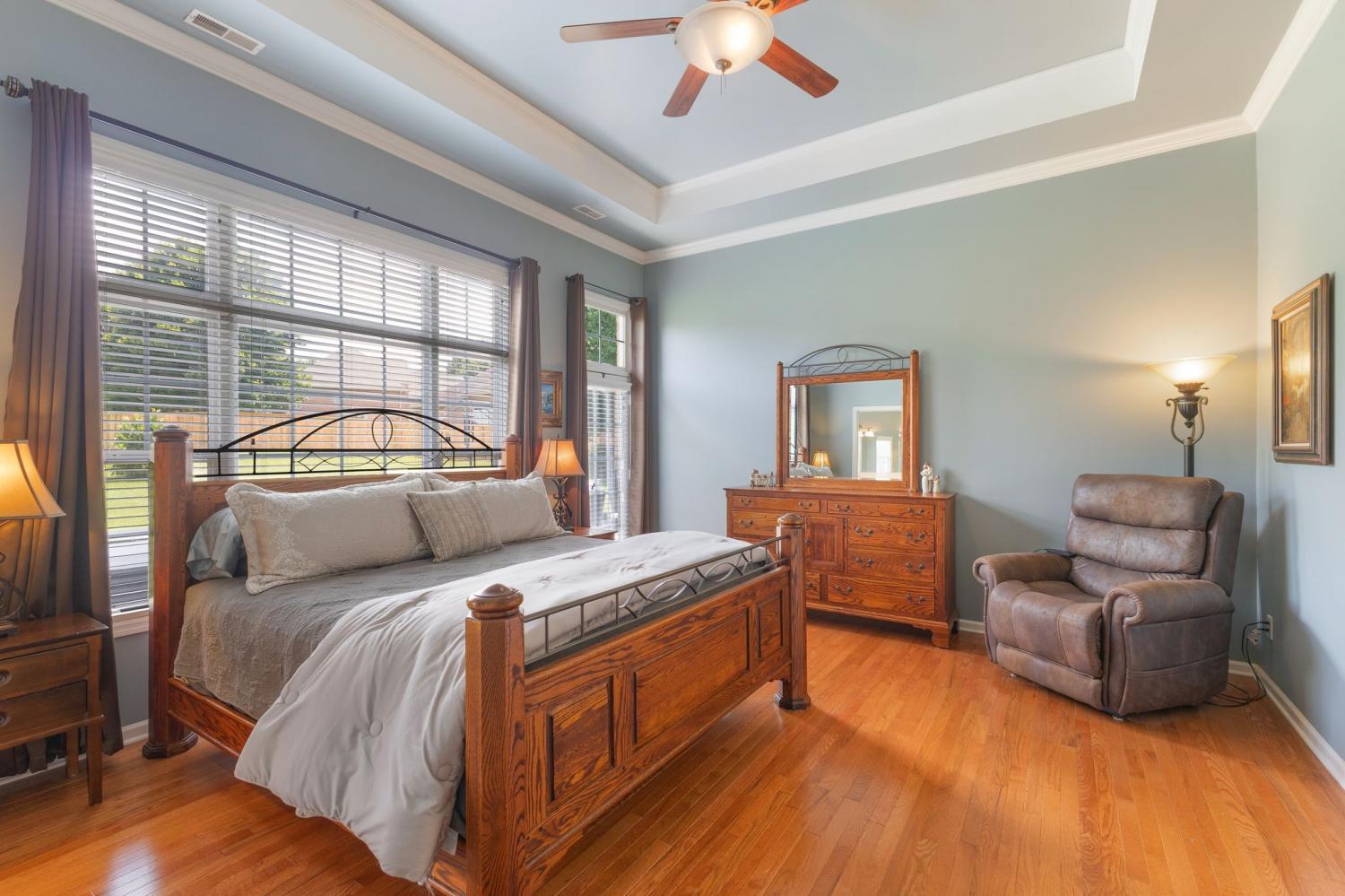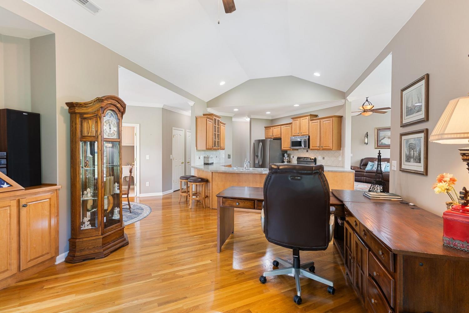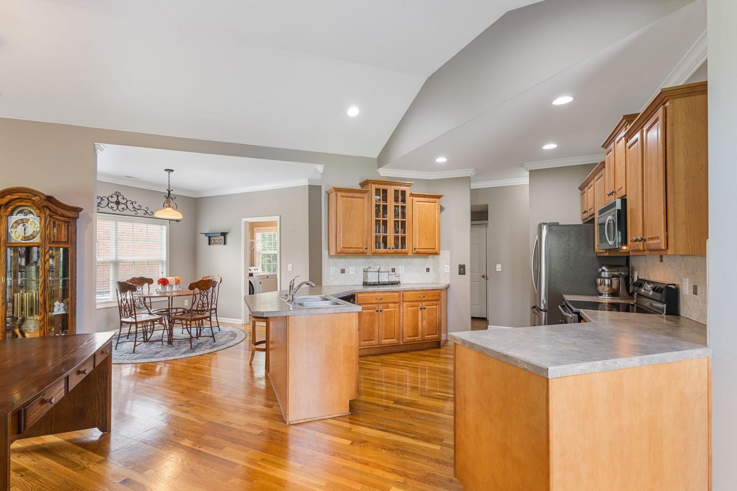 PRICE IMPROVEMENT! Charming Ranch in Crowne Pointe – Move-In Ready! Welcome to this beautifully cared-for 3-bedroom, 2.5-bath ranch-style home with a spacious bonus room—perfect for a home office, guest suite, or playroom. Inside, enjoy a flowing open layout, hardwood floors, and plenty of natural light throughout. You'll love the thoughtful touches: a large pantry, laundry room with sink and cabinetry, and an oversized 2-car garage. Step out back to your private patio with a hot tub—perfect for relaxing under the stars. Bonus: Pool table and hot tub stay with the home! Located just minutes from I-65, shopping, and dining in the desirable Crowne Pointe community.