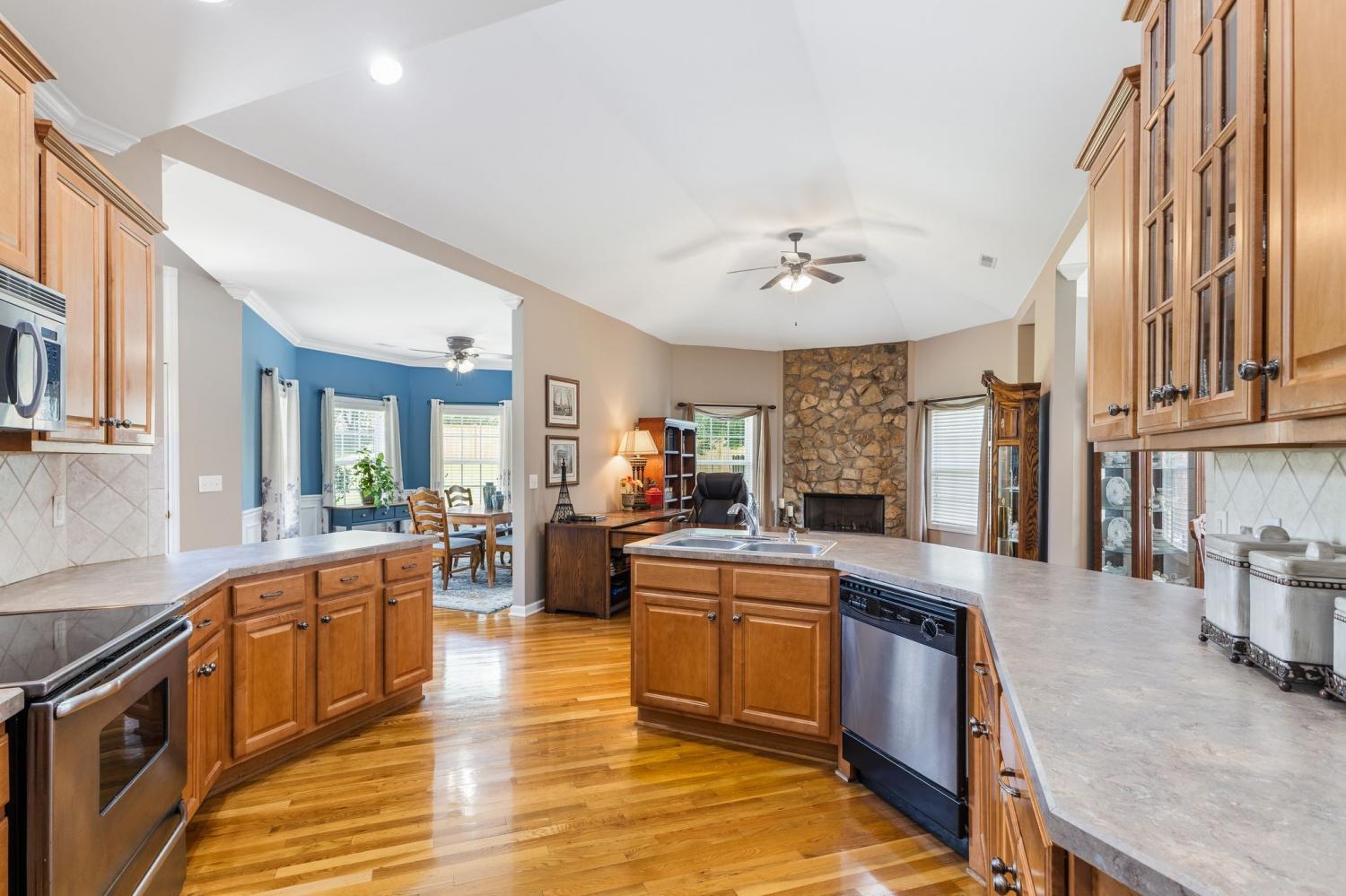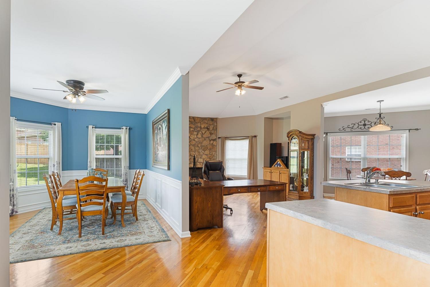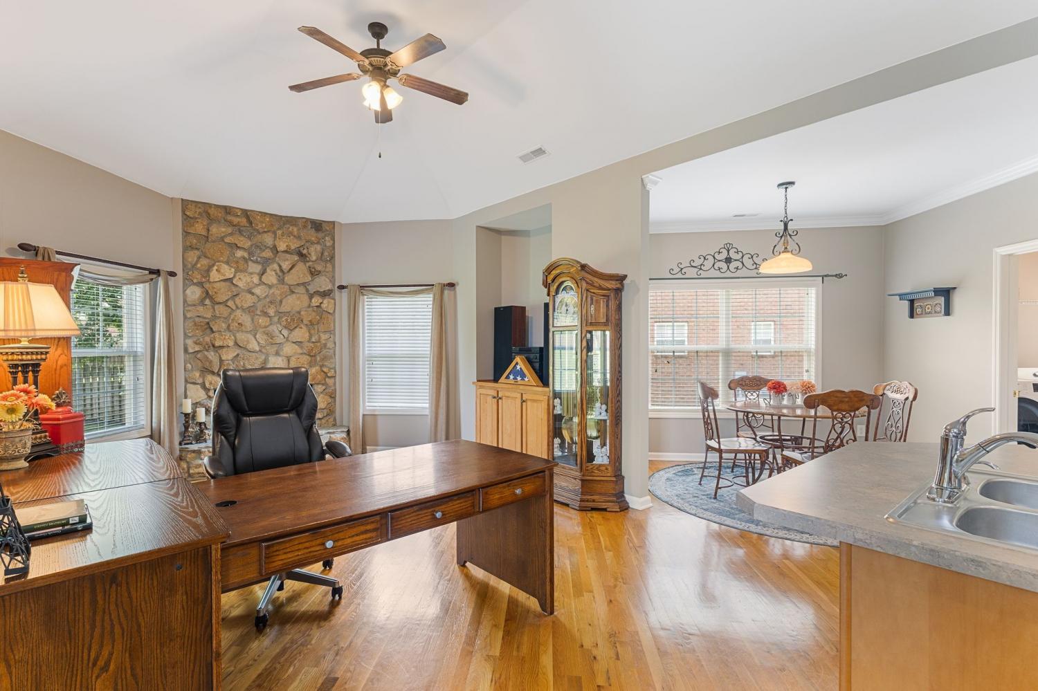 PRICE IMPROVEMENT! Charming Ranch in Crowne Pointe – Move-In Ready! Welcome to this beautifully cared-for 3-bedroom, 2.5-bath ranch-style home with a spacious bonus room—perfect for a home office, guest suite, or playroom. Inside, enjoy a flowing open layout, hardwood floors, and plenty of natural light throughout. You'll love the thoughtful touches: a large pantry, laundry room with sink and cabinetry, and an oversized 2-car garage. Step out back to your private patio with a hot tub—perfect for relaxing under the stars. Bonus: Pool table and hot tub stay with the home! Located just minutes from I-65, shopping, and dining in the desirable Crowne Pointe community.