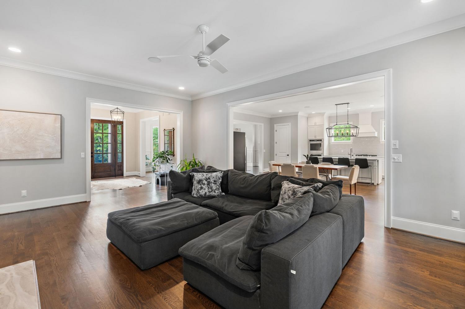 Located on a quiet corner lot just steps from Green Hills shops and restaurants, this beautifully crafted home offers the perfect blend of luxury and convenience. The main level features soaring 10-foot ceilings, 8-foot doors, and hardwood floors throughout. Enjoy spacious, light-filled living spaces including a large living room, formal dining room, and a designer kitchen that opens to the den — ideal for entertaining or relaxing with family. Step outside to a covered porch perfect for year-round enjoyment. Upstairs, you'll find generously sized bedrooms with ample closet space and high-end finishes. Thoughtfully designed and quality-built, this home is a rare find in one of Nashville’s most desirable areas.
