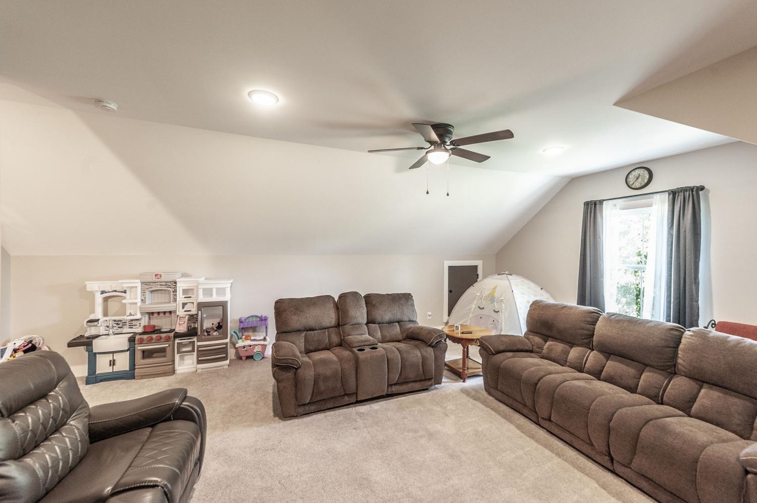REDUCED! This beautiful farm home with white vinyl siding hung horizonal with black windows. Open concept with large island that has a microwave that is a drawer pull out. Sink has a window above that allows you to look at the pretty backyard with trees and open land. engineered hardwood floors, tile and carpet. Hugh shower and double vanity, large walk-in closet. Big pantry. Many upgrades to this home. Covered back and front porch. Bonus room over the garage. Storage area in bonus room. This home sits on 2.13 acres. Great neighbors! Utility is very large with sink and extra cabinets. PROFESSIONAL PICTURES TO FOLLOW