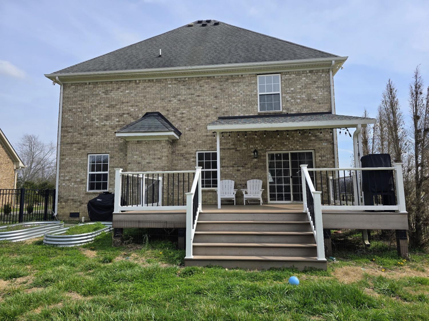 All brick 2 story home, 4 bedrooms & 2 1/2 bathrooms.This home has real beautiful hardwood flooring (no carpet) that adds warmth and character. The lower level has a beautiful full kitchen with solid surface counter tops with separate dining room with beautiful moulding. Large open living room with views of large rear lot with lush woods. Master has double trey ceiling and master bath has seperate shower and jacuzzi jet tub.The property sits on end of dead-end street with a large fenced back yard that backs up to wooded area so no building behind you. Covered back deck has composit decking. The 2-car garage has Gorilla (Guardian) flooring and paved drive. Zoned for top-rated Triple Rockvale schools just minutes away,