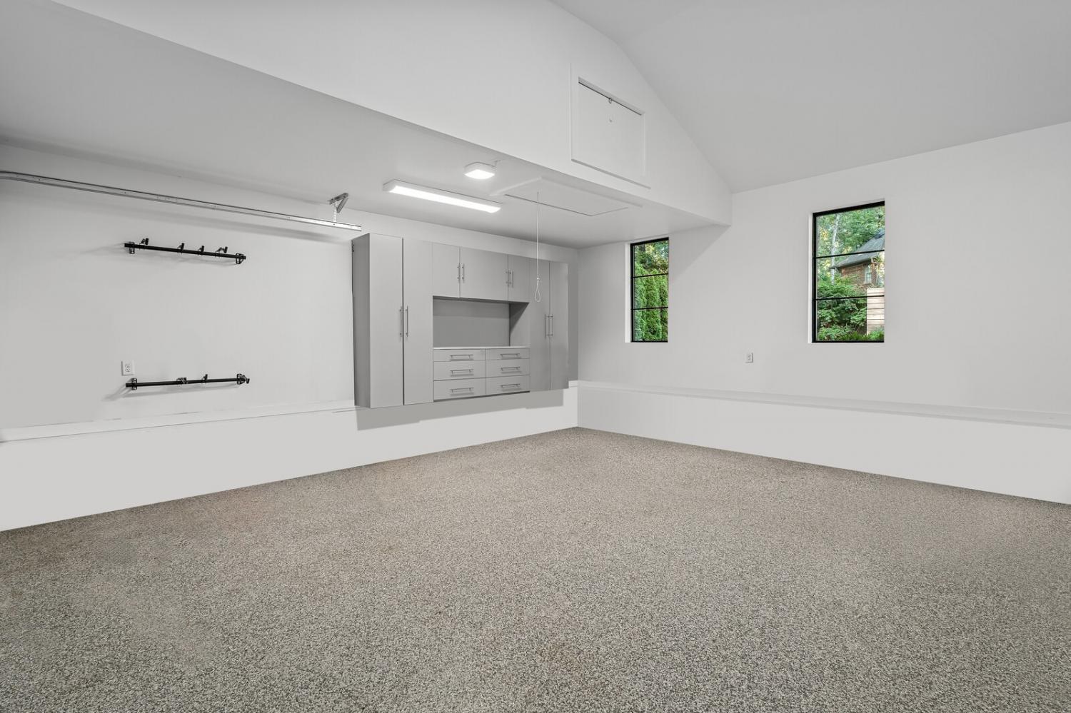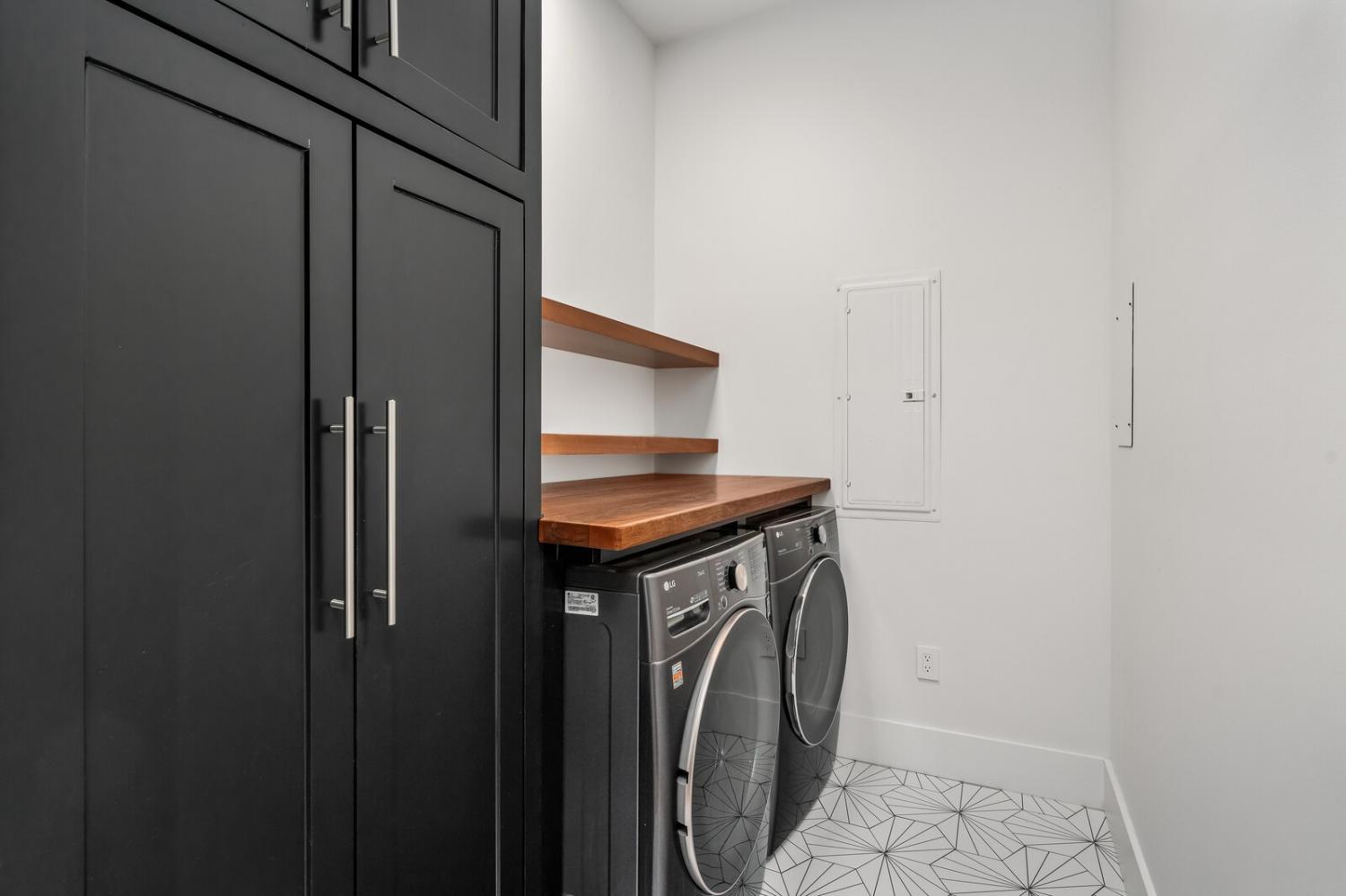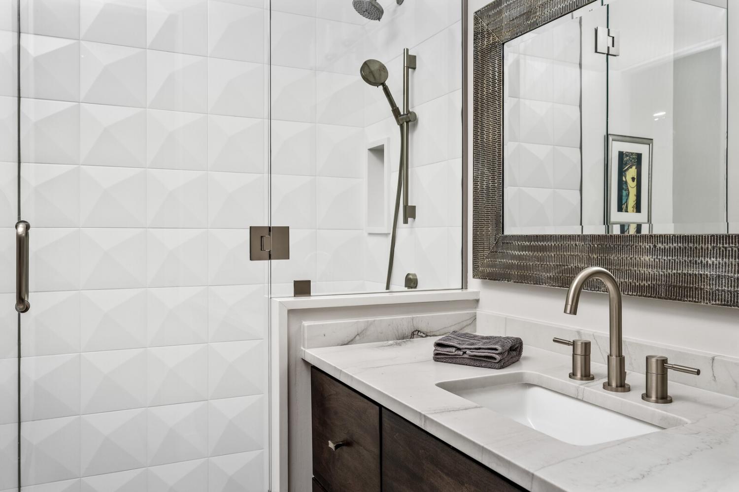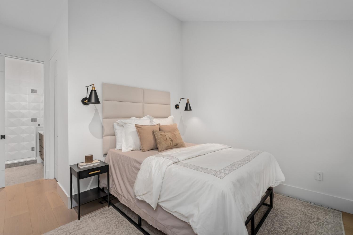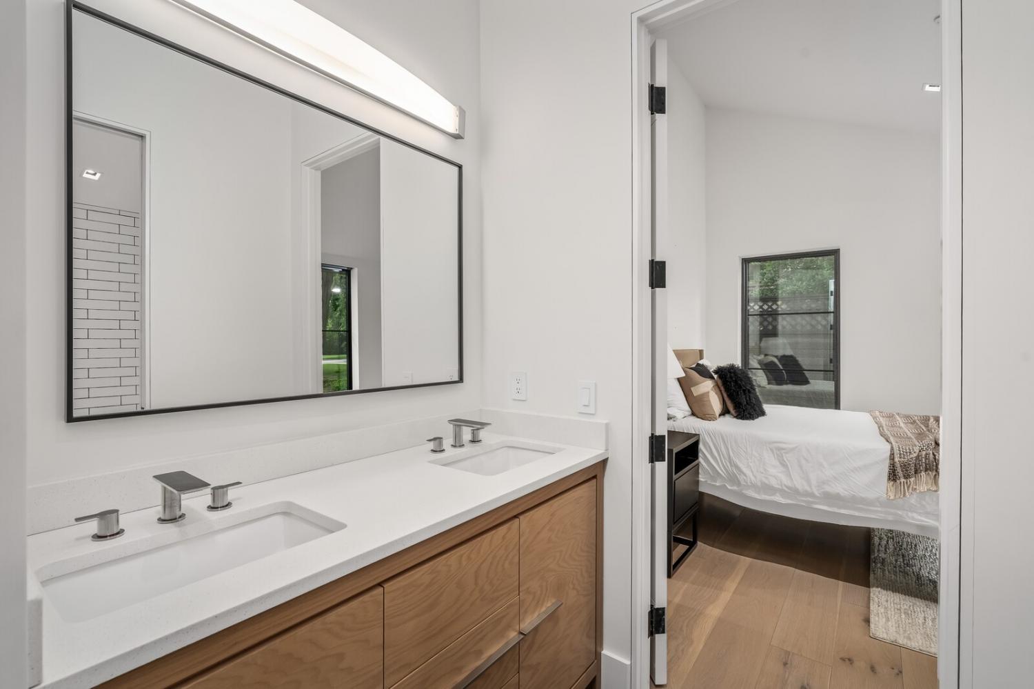 Welcome to a custom-designed contemporary real stucco masterpiece that offers an exquisite blend of luxury and modern elegance. As you enter through the impressive custom-designed walnut 10-foot pivot door, you are greeted by a breathtaking foyer with 18-foot high ceilings adorned with custom-designed decorative trusses. This grand entrance sets the stage for an open and inviting atmosphere. Architectural lighting and black steel-look Marvin windows and doors accentuate the modern aesthetic. The gourmet kitchen is a chef's delight, featuring Wolf appliances and a Fisher Paykel refrigerator/freezer combo. The centerpiece of the kitchen has Italian porcelain countertops on the island, complemented by leathered marble countertops around the periphery, featuring a 3-foot high backsplash with ledges in the style of Joseph Dirand. The kitchen's separate bar area, complete with a bar sink, wine refrigerator, and ice maker, is adorned with Scalamandre accent wallpaper. A custom walnut vent hood and integrated countertop on the island complete this culinary space. In the family room, enjoy the warmth and ambiance of a wood-burning fireplace with a convenient gas starter, illuminated by the elegant RH Emile chandelier. This space is perfect for movie nights, featuring built-in surround sound for an immersive experience by the fire. The temperature-controlled wine wall with seeded glass shelves adds a touch of sophistication, perfect for the discerning connoisseur. Retreat to the primary suite with its vaulted ceilings, decorative beams, and a gas fireplace. Enjoy the tranquility of a private built-in coffee bar, and luxuriate in the primary bath's huge walk-in shower with double rain heads and a two-person soaking tub overlooking a private zen garden. All guest bedrooms are thoughtfully designed, each featuring en suite bathrooms and large walk-in closets. Outside, enjoy seamless indoor-outdoor living with 13-foot accordion doors opening onto the courtyard.