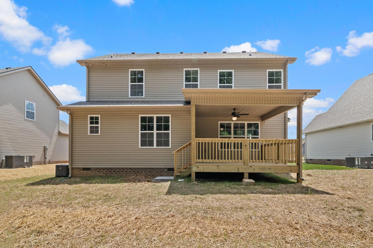 $15,000 offered to the buyer for closing expenses. Experience luxury living in this stunning two-story home. Step into a spacious, open-concept eat-in kitchen that impresses with its massive 9-foot island topped with gleaming white quartz counters—a dream kitchen for holiday gatherings. A huge walk-in pantry w/ custom shelving ensures everything is organized and within reach. The formal dining room boasts exquisite trim work, adding a touch of sophistication to every gathering. Cozy up by the inviting fireplace, or step outside to relax on the covered deck, perfect for enjoying serene evenings. The backyard privacy fence ensures privacy for morning coffee and winding down after work. Upstairs, retreat to your private suite, where relaxation awaits. Indulge in a spa-inspired bath with a garden tub, a luxurious tile shower, double vanities, and not one, but two generous walk-in closets! The laundry room, conveniently located upstairs, makes everyday chores a breeze. Located just a short commute to Ft. Campbell and only an hour from downtown Nashville, this home is ideally situated. Move in ready, don't miss this one.