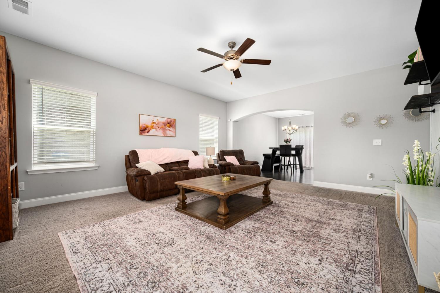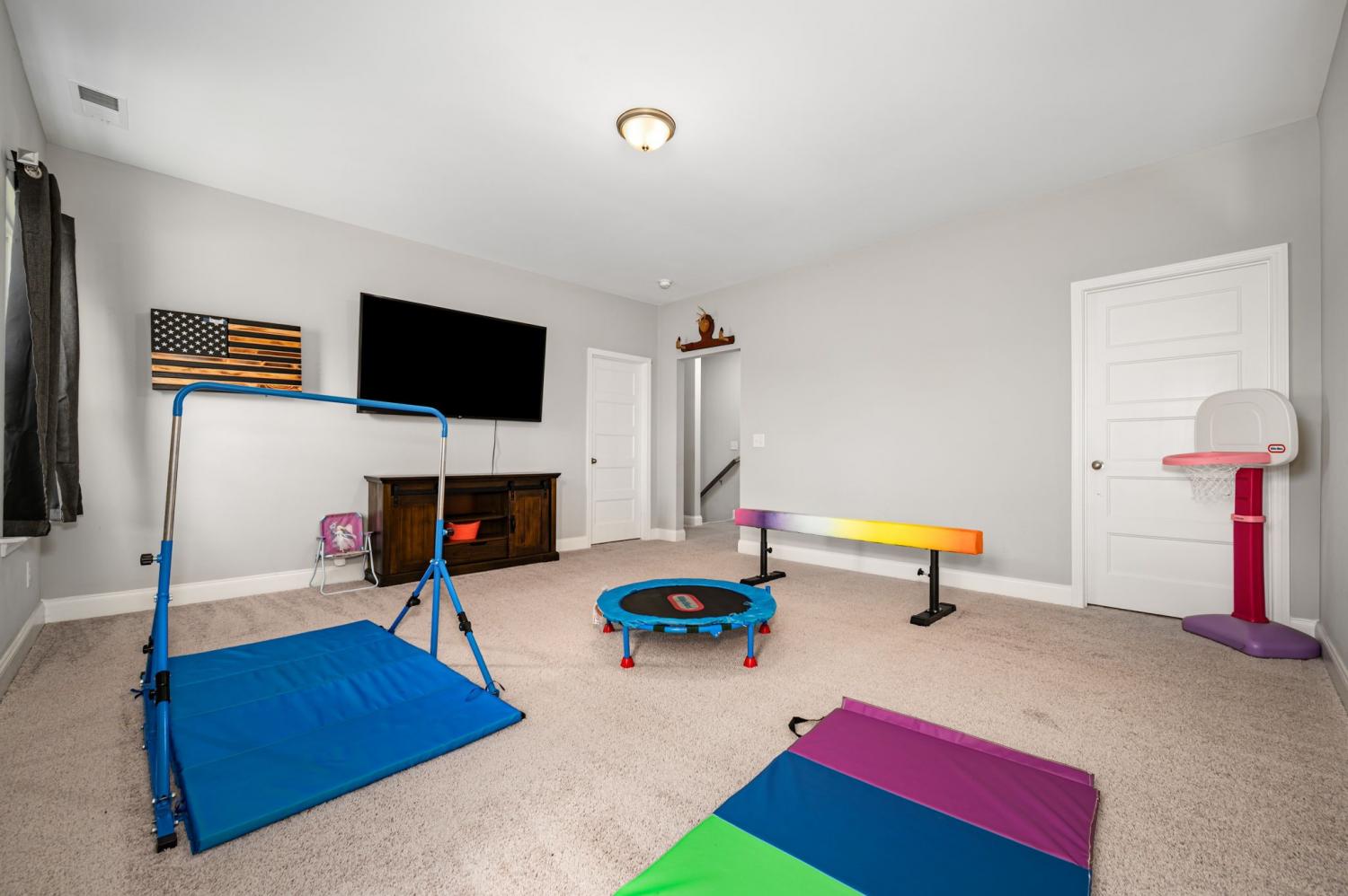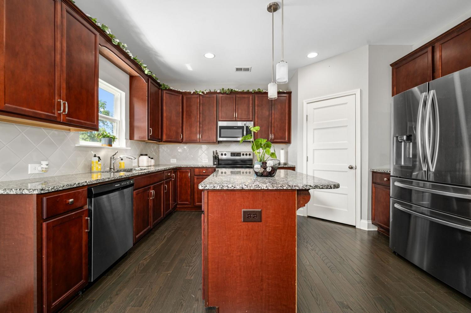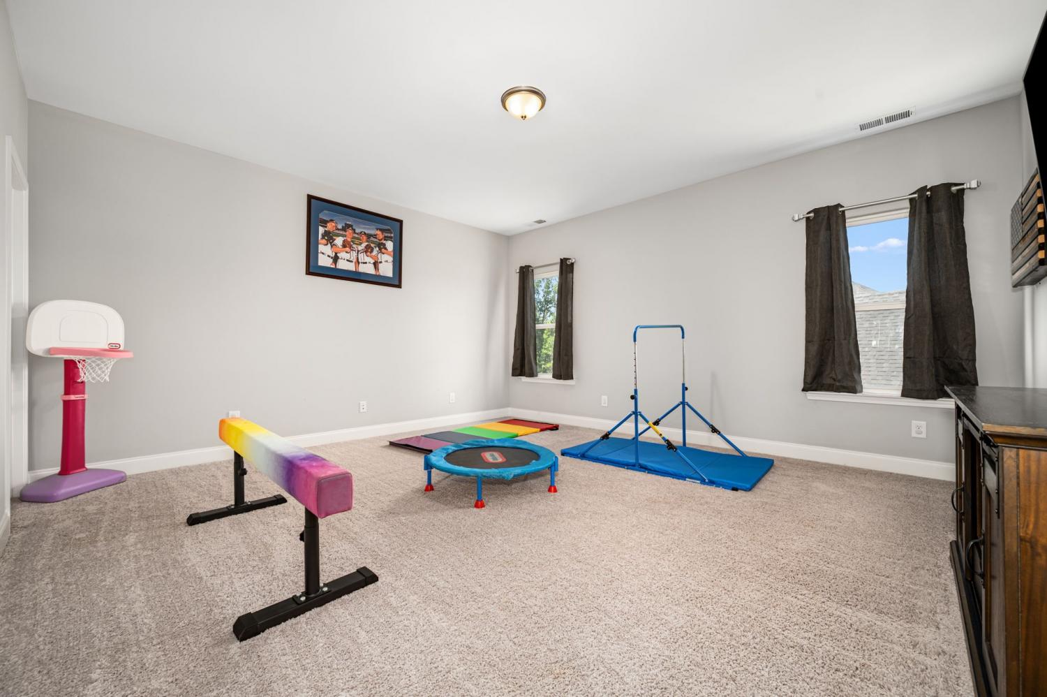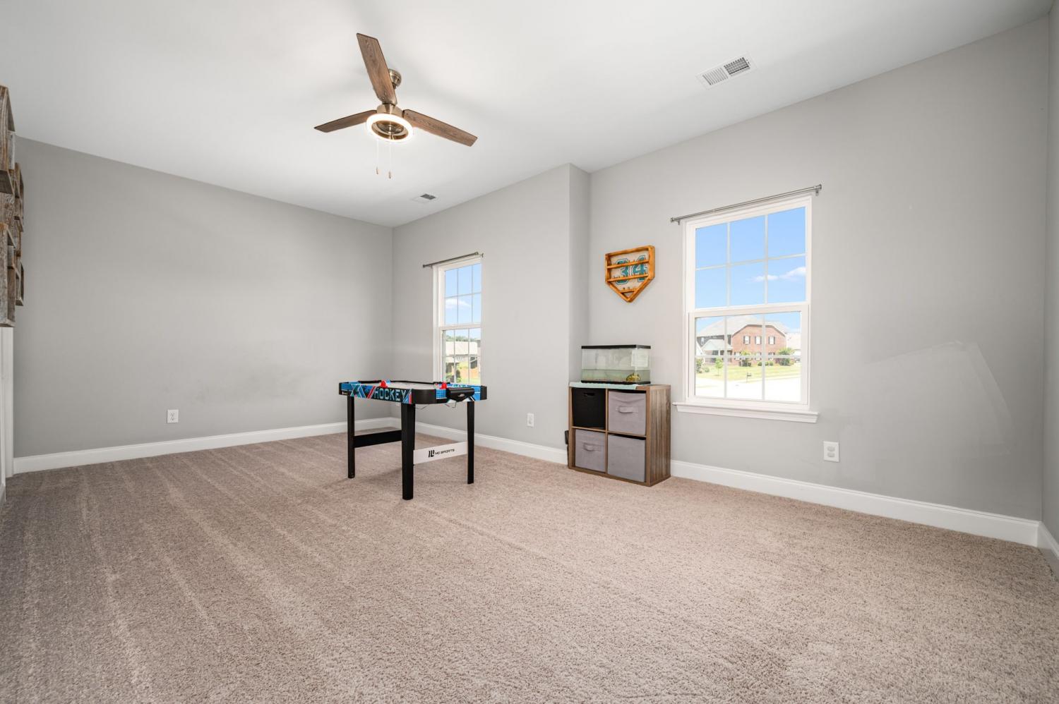 Welcome to this beautifully maintained 5-bedroom, 3.5-bathroom home located in a quiet, family-friendly neighborhood. With a spacious two-story floor plan, updated finishes, and an oversized backyard backing to peaceful woods, this property offers the perfect blend of comfort, privacy, and flexibility. Step inside to an inviting open-concept main level featuring a large living room, formal dining area, and a gourmet kitchen complete with granite countertops, rich wood cabinetry, stainless steel appliances, a center island, and a walk-in pantry. Hardwood floors and recessed lighting complement the warm, neutral tones throughout. Upstairs, the expansive primary suite is a true retreat, featuring tray ceilings, dual windows, and a luxurious en suite bath with double vanities, a soaking tub, walk-in shower, and marble-style tilework. Four additional generously sized bedrooms offer plenty of space for family, guests, or a home office setup. The home also includes multiple bonus areas currently used as a gym, playroom, and office—easily adaptable to suit your lifestyle needs. The oversized backyard is one of the standout features of this home. It backs up to mature trees with no rear neighbors, offering privacy and space for outdoor entertaining, pets, or future additions like a pool, garden, or play area. The extended patio is perfect for grilling and relaxing. Additional highlights include a 2-car attached garage, dedicated laundry room, ample storage, and a flexible layout ideal for families, remote workers, or anyone needing room to grow. Located just minutes from parks, schools, and local amenities, this move-in-ready home offers both convenience and tranquility. Don’t miss your chance to own this spacious and stylish home on one of the best lots in the neighborhood—schedule your private tour today!