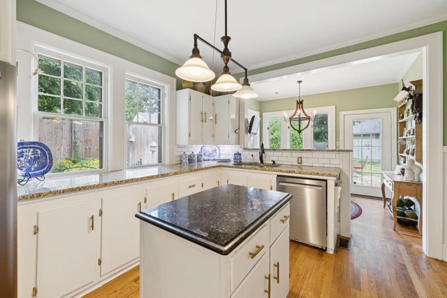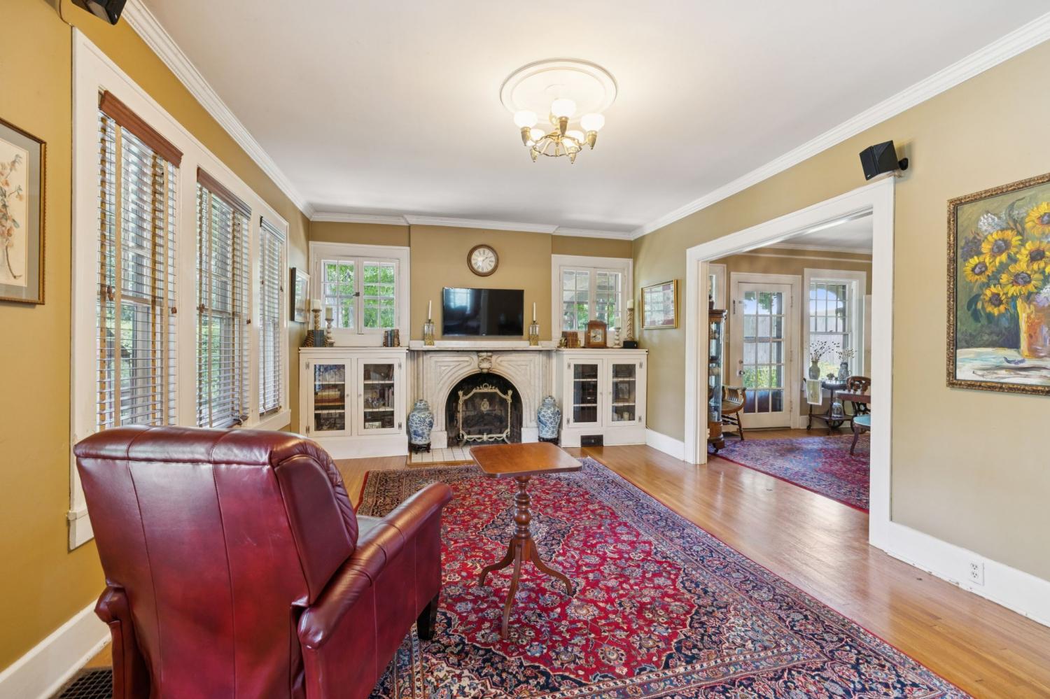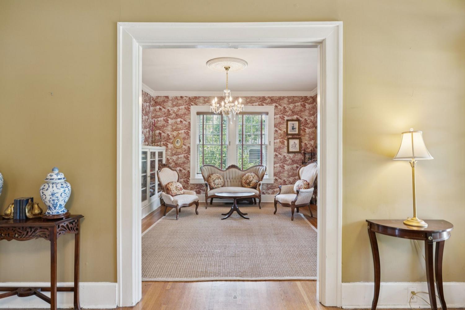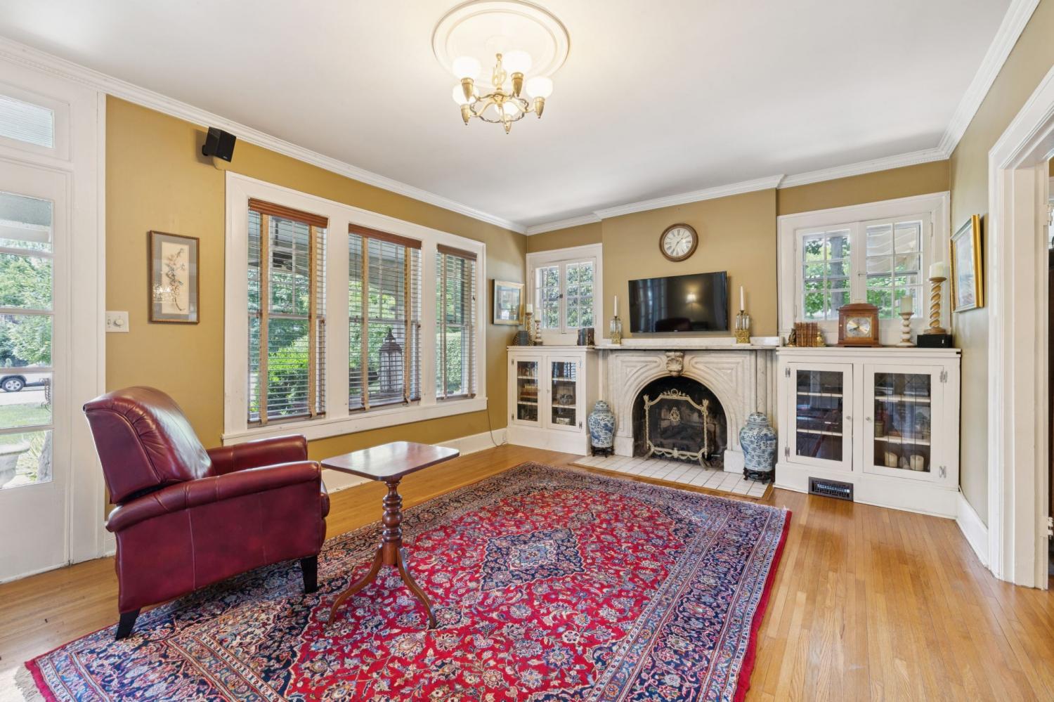 Charming 1940 Tudor in Barrow Court Historic Area. Nestled on a quiet, shaded dead-end street in the coveted Barrow Court Historic Area, This home has timeless character. Offering 2,690 square feet of living space, the home features 4 bedrooms, 2 full bathrooms, and a dedicated office—perfect for remote work or study. Step into a warm and inviting living room with original hardwood floors, a gas fireplace, and built-in shelving that adds both charm and function. The adjacent study also features custom built-ins, ideal for a cozy library or home workspace. The kitchen is both stylish and practical, boasting granite countertops, a small butler’s pantry, and a sunroom just off the kitchen—perfect for morning coffee or casual dining. Outdoors, enjoy the shaded backyard—ideal for entertaining, gardening, or simply relaxing under mature trees. Located approximately one mile from the vibrant downtown historic district, you'll enjoy convenient access to shops, restaurants, and cultural attractions. This is a rare opportunity to own a piece of local history with modern amenities in one of the area's most sought-after neighborhoods. Don’t miss your chance to call this Barrow Court gem home!