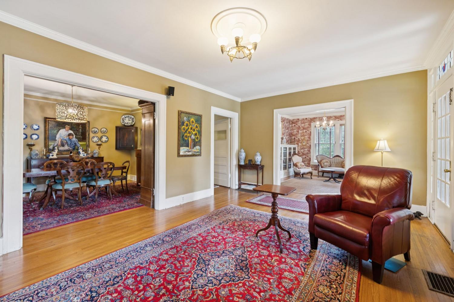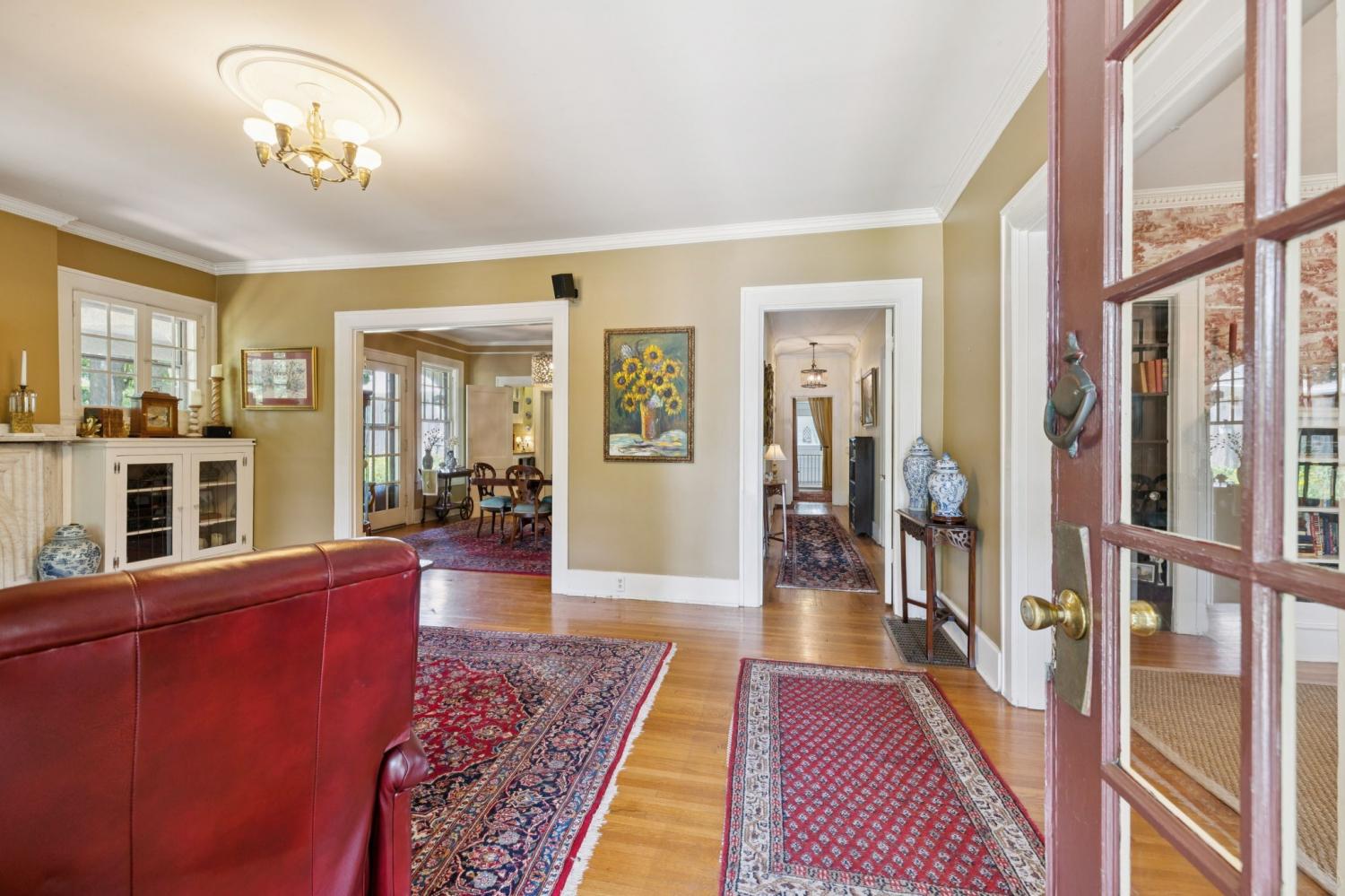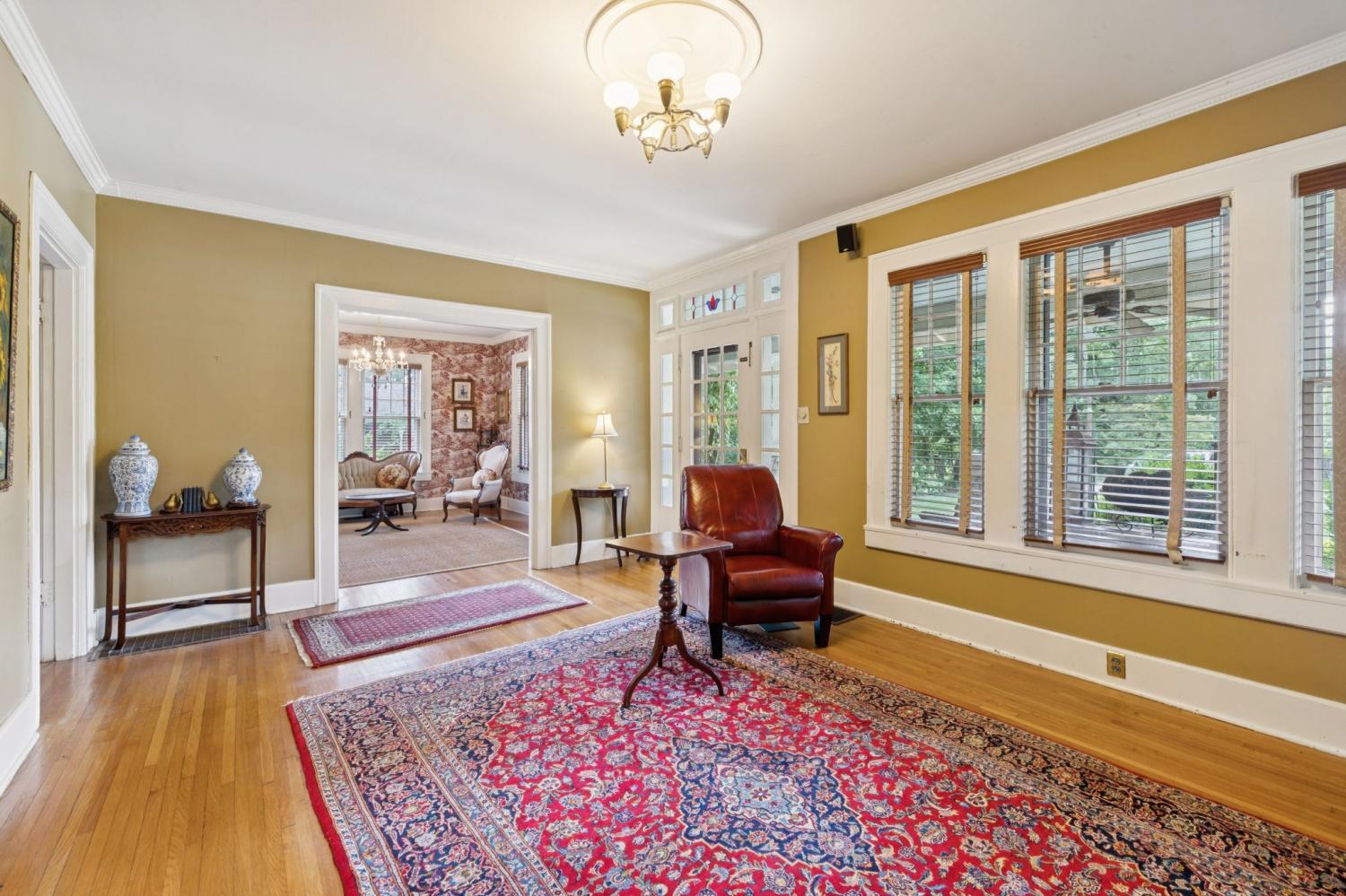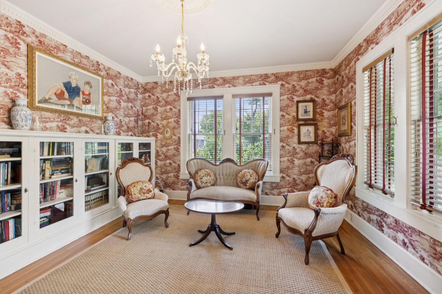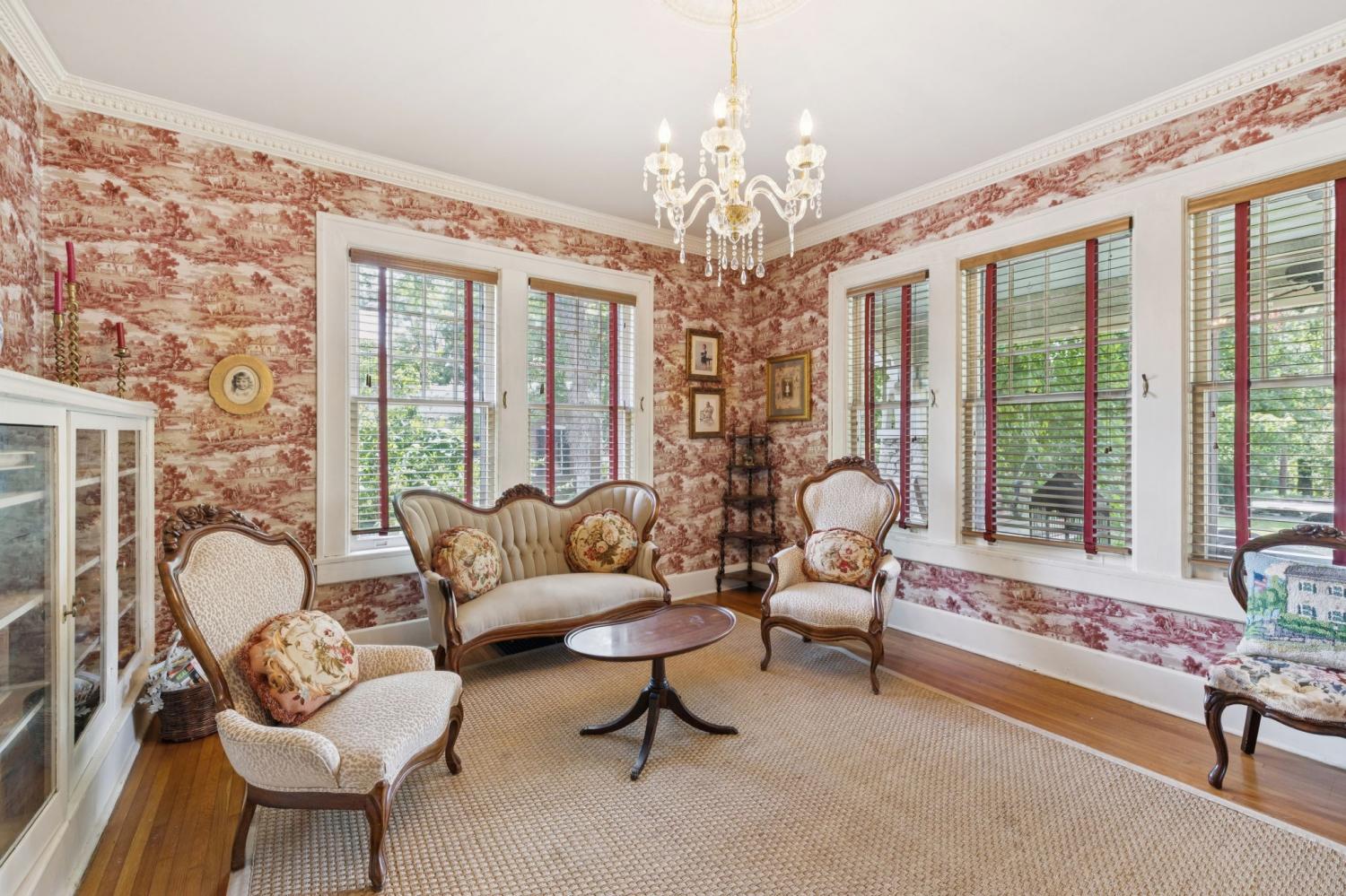 Charming 1940 Tudor in Barrow Court Historic Area. Nestled on a quiet, shaded dead-end street in the coveted Barrow Court Historic Area, This home has timeless character. Offering 2,690 square feet of living space, the home features 4 bedrooms, 2 full bathrooms, and a dedicated office—perfect for remote work or study. Step into a warm and inviting living room with original hardwood floors, a gas fireplace, and built-in shelving that adds both charm and function. The adjacent study also features custom built-ins, ideal for a cozy library or home workspace. The kitchen is both stylish and practical, boasting granite countertops, a small butler’s pantry, and a sunroom just off the kitchen—perfect for morning coffee or casual dining. Outdoors, enjoy the shaded backyard—ideal for entertaining, gardening, or simply relaxing under mature trees. Located approximately one mile from the vibrant downtown historic district, you'll enjoy convenient access to shops, restaurants, and cultural attractions. This is a rare opportunity to own a piece of local history with modern amenities in one of the area's most sought-after neighborhoods. Don’t miss your chance to call this Barrow Court gem home!