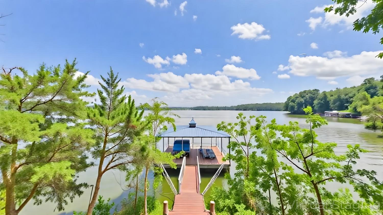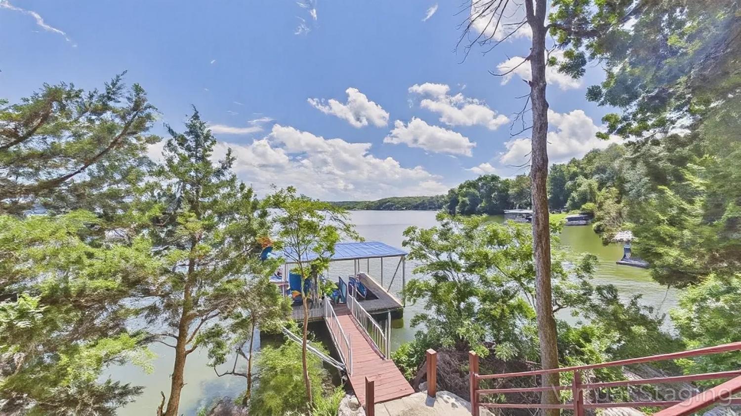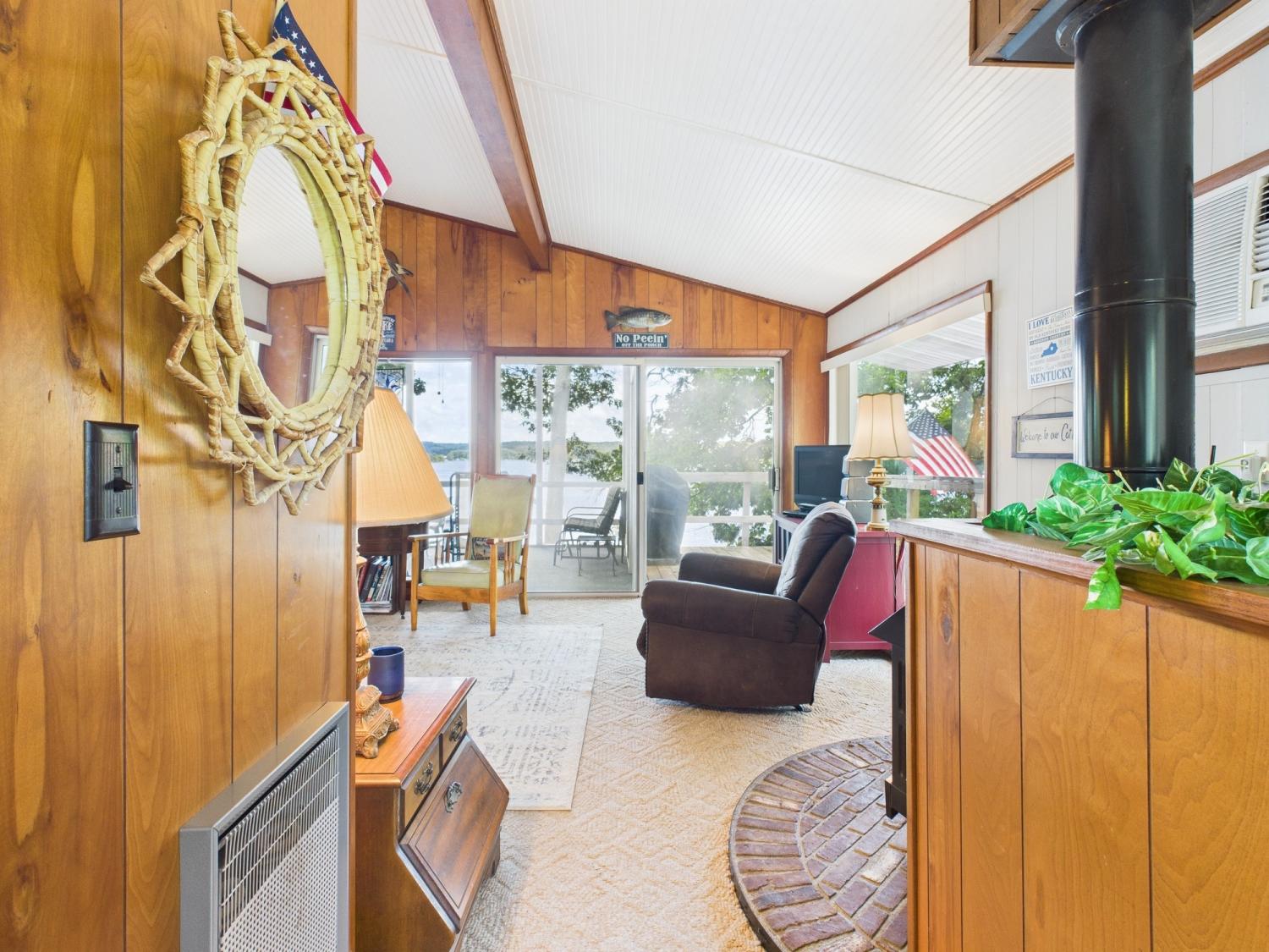 Majestically perched with panoramic views of Lake Barkley, this 1352 square-feet, two-story retreat is the quintessential lakeside escapade "Cozy Cottage On Lake Barkley" has 3 bedrooms and 1.5 baths. Enjoy freshwater fun from your covered 2-slip deep water dock with boat lift and take in the scenery from multiple decks overlooking the lake. A Lakeside screen porch, a covered lakeside patio, a large front patio and a wall of sliding doors overlooking the lake create an inviting, open-air atmosphere. The home's vaulted ceilings in the great room add a touch of grandeur, and nothing quite compares to the astounding sunrises here. Be swept away by this perfect lake getaway for your family or vacation rental with a kitchen outfitted with a charming eat-in bar area. At $475,000, it's the perfect blend of comfort in a serene lakeside setting on Lake Barkley. Some Pictures have been virtually staged!