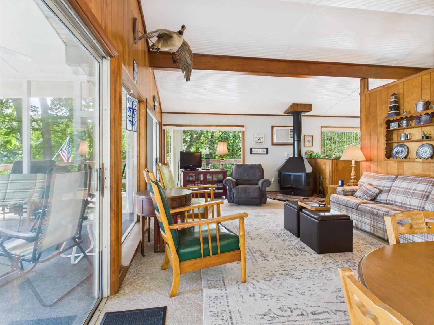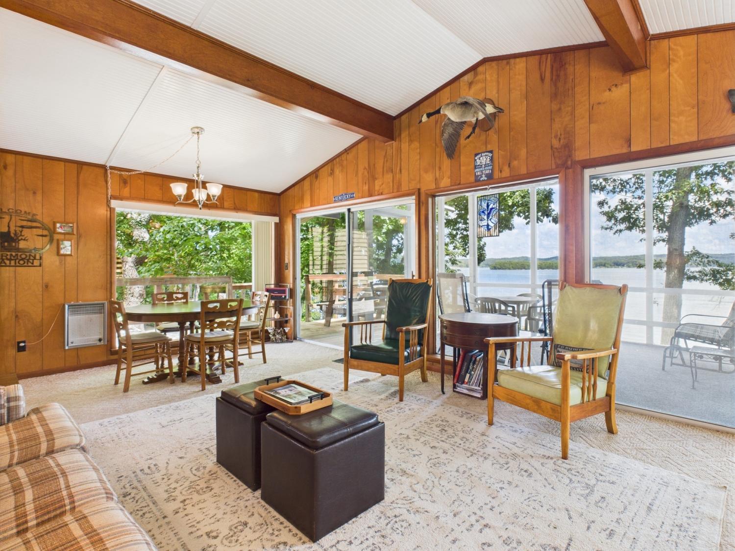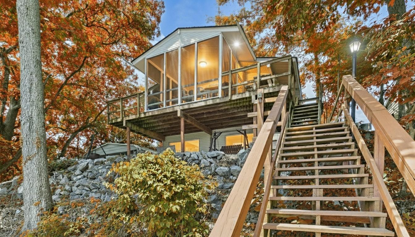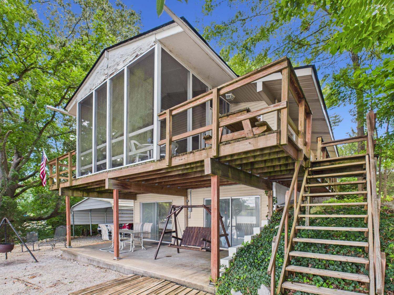 Majestically perched with panoramic views of Lake Barkley, this 1352 square-feet, two-story retreat is the quintessential lakeside escapade "Cozy Cottage On Lake Barkley" has 3 bedrooms and 1.5 baths. Enjoy freshwater fun from your covered 2-slip deep water dock with boat lift and take in the scenery from multiple decks overlooking the lake. A Lakeside screen porch, a covered lakeside patio, a large front patio and a wall of sliding doors overlooking the lake create an inviting, open-air atmosphere. The home's vaulted ceilings in the great room add a touch of grandeur, and nothing quite compares to the astounding sunrises here. Be swept away by this perfect lake getaway for your family or vacation rental with a kitchen outfitted with a charming eat-in bar area. At $475,000, it's the perfect blend of comfort in a serene lakeside setting on Lake Barkley. Some Pictures have been virtually staged!