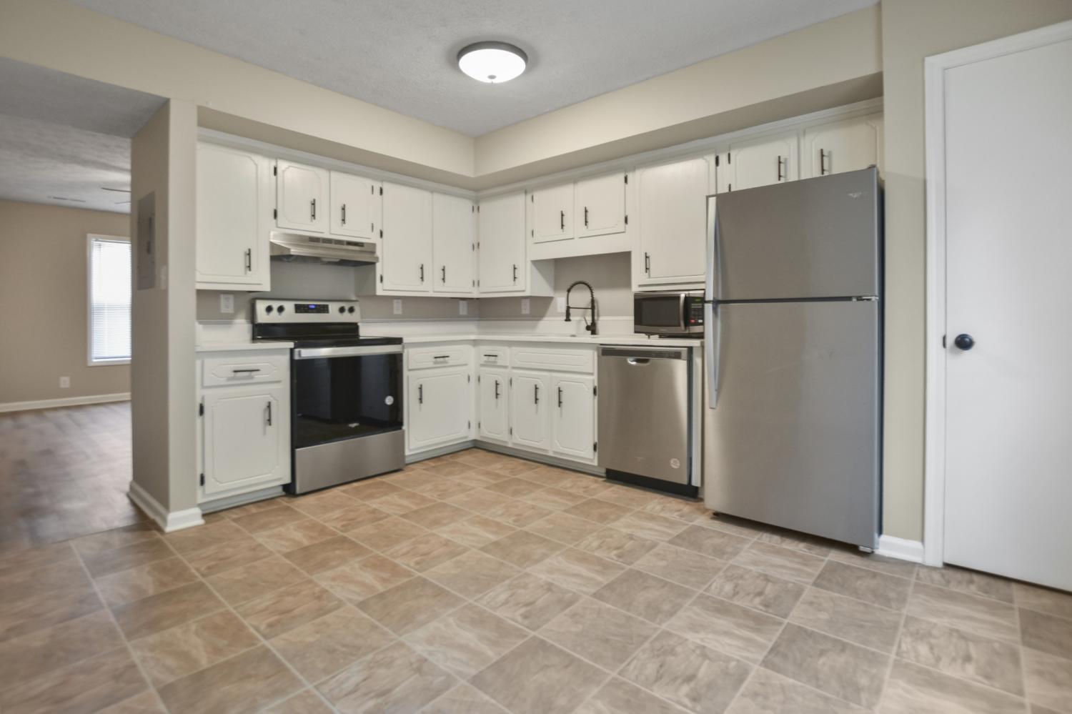 Updated and move in ready, this two bedroom, one and a half bath townhouse is conveniently located just off the bypass. only minutes from restaurants, shopping, and more! The unit features a spacious living room with durable LVP flooring and a stylish accent wall, creating a warm and inviting space! The eat-in kitchen offers quartz countertops, stainless steel appliances, and plenty of room for dining! Both bedrooms are generously sized, providing comfortable living space throughout! Enjoy the outdoors with a patio! Pet rent applicable.