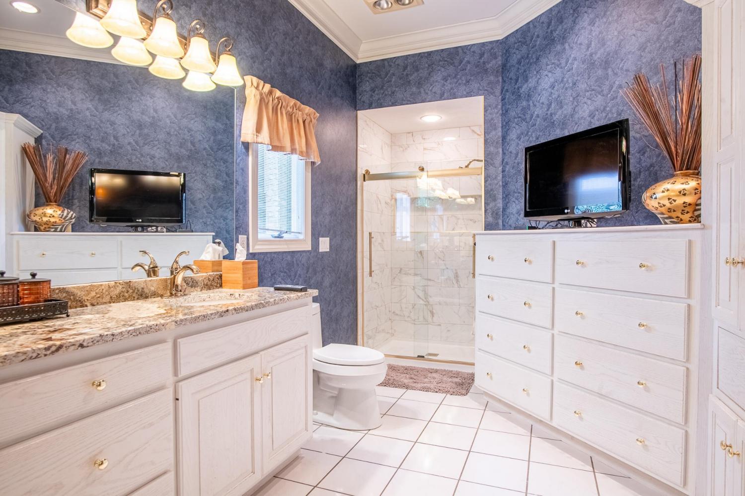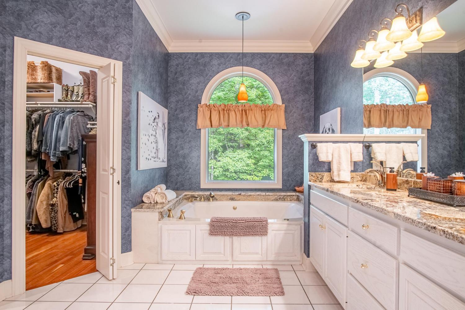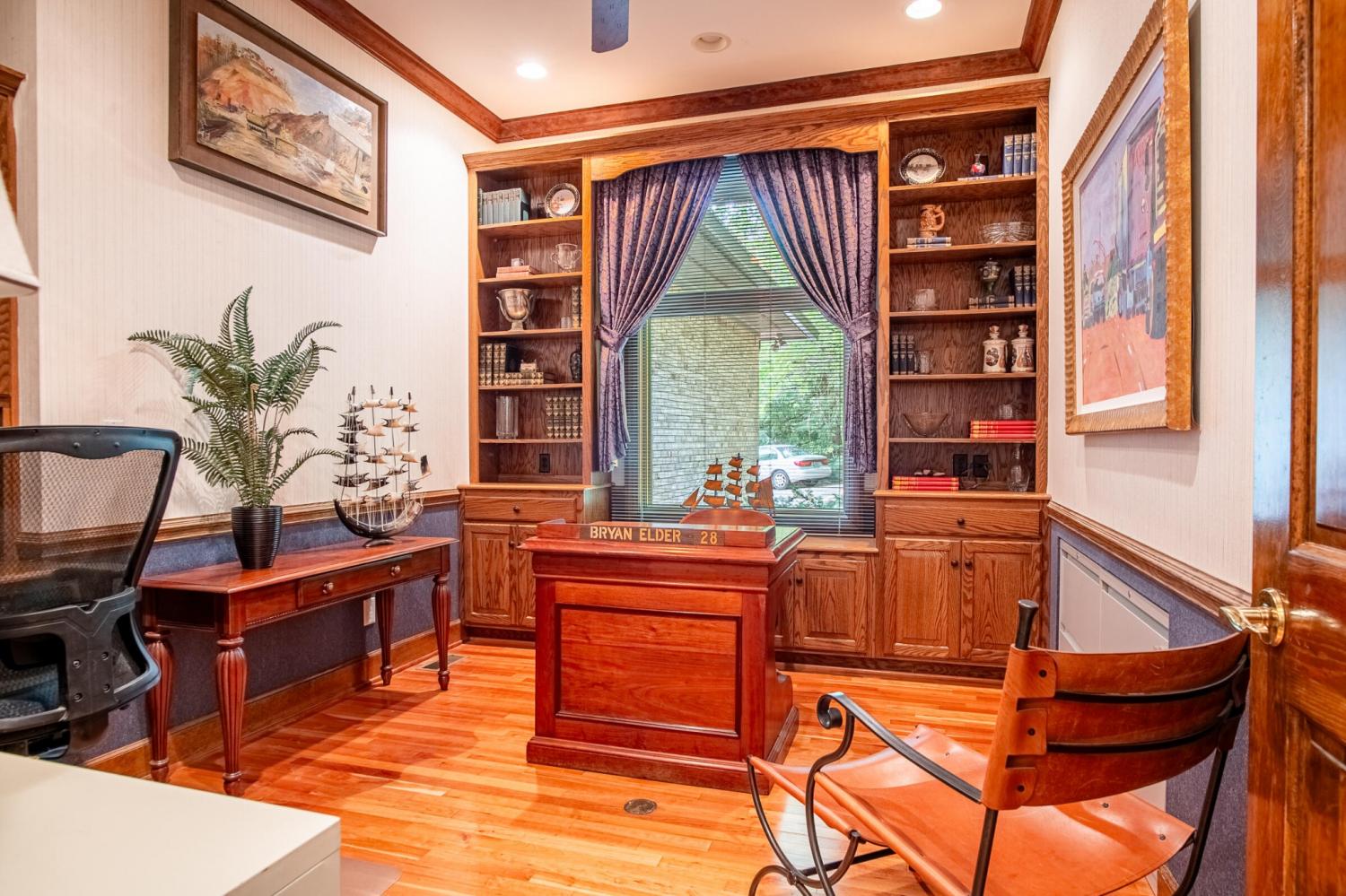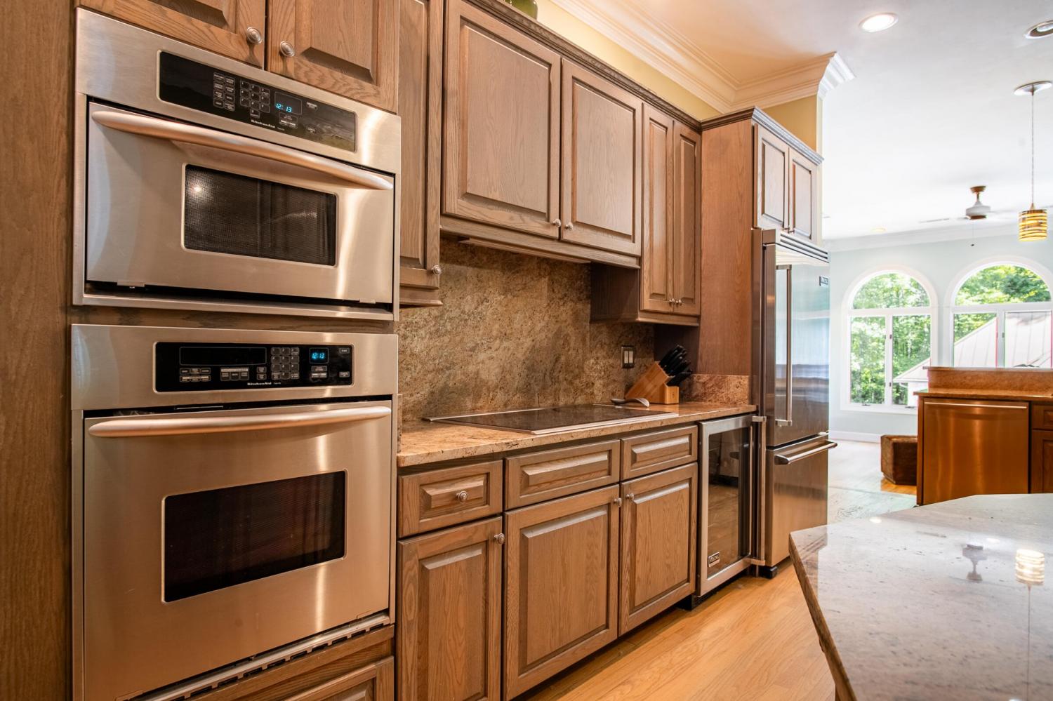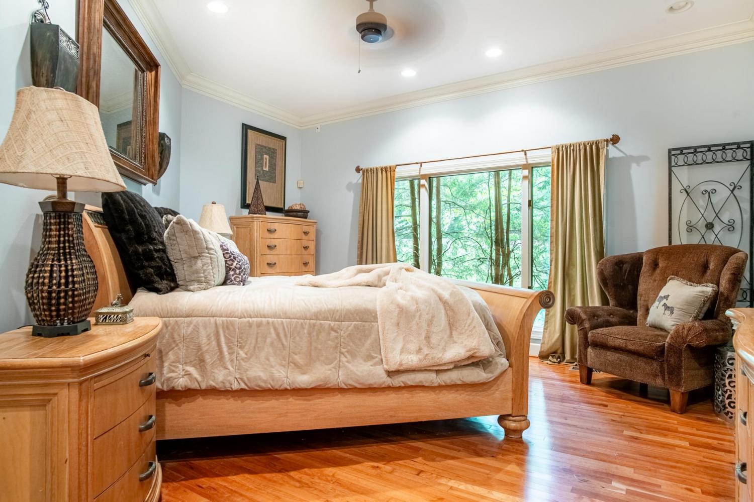 Fabulous estate property on 3.3 acres in the heart of Signal Mountain, offers both privacy and luxurious resort style living. A long driveway through lush grounds leads you to the home. The all brick home features 10 foot ceilings, hardwood flooring, fireside den and living room, dining room, kitchen, office with built-ins, powder room, spacious primary bedroom on the main level with new Calacatta tile shower, chef's kitchen with Viking, Wolf and Kitchen Aid appliances, custom cabinetry and granite countertops. A most inviting sunrom overlooks the salt water pool, spa, 3 tiered decking with Pergola, outdoor fireplace, gathering and grilling area and pool/guest house - a true oasis to come home to! Upstairs are 2 additonal bedrooms each with ensuite bath. A separate stairway leads to the light filled 4th bedroom/bonus room and bath. There is a main level 3 car garage and a lower level gym/workshop. The main house has 3,989 square feet with an additional 584 square feet in the lower level gym space. The 710 square foot poolside studio guest house offers a fireside living area, kitchen with all Kitchen Aid Appliances and Laundry and 5th bedroom and bath. The grounds are truly stunning - and so very private. a year round spring runs parallel to the back yard for added privacy. Beautiful hardwood trees and native plants provide a lush setting. There is a charming garden shed in the backyard and an additonal building with garage door that has a car lift for working on cars/storage and workshop. The entire backyard is fenced and there is a separate fenced area for dogs. Zoned for top rated Signal Mountain schools, 72 Cool Springs is more than a home, it is a lifestyle!