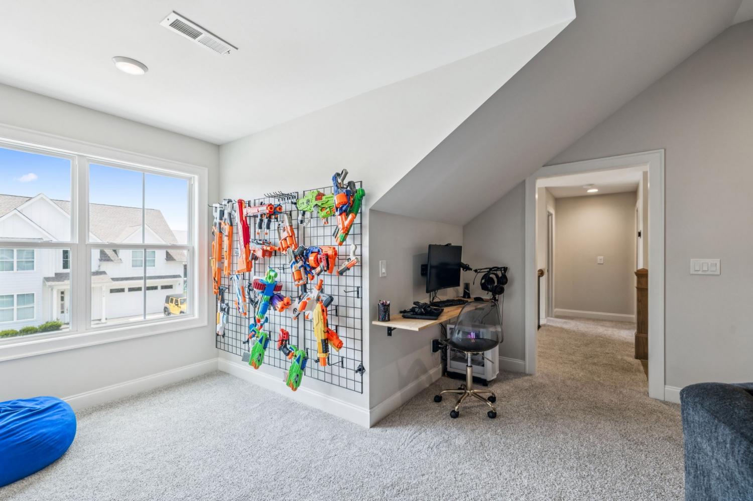 Welcome to a truly SPECIAL home in Twin Creeks Village, where lake living meets elevated design and everyday comfort. This beautifully appointed 3-bedroom, 3-full & 1-half bath home offers just under 2,600 square feet of thoughtfully designed space, featuring soaring ceilings and a dramatic two-story foyer layered with exquisite trim, statement light fixtures, and designer wallpaper details throughout. Step inside to find luxury vinyl plank flooring on the main level, a cozy gas fireplace anchoring the living room, and a stylish open-concept kitchen with sleek finishes and natural light pouring in. The versatile first-floor office is perfect for a den or nursery, and the spacious media room comes complete with a built-in projector and a huge walk-in attic for extra storage—perfect for keeping things organized without sacrificing space. The super-luxe primary suite has been updated with brand new LVP flooring, creating a fresh, modern look to pair with its spa-inspired bath featuring a massive walk-in shower and oversized closet. You'll also love the sleek, modern laundry room, the beautifully landscaped backyard with a built-in fire pit, and the convenience of an attached 2-car garage. Twin Creeks offers a year-round lakefront lifestyle with easy marina access for boating and paddleboarding, plus three resort-style pools just steps away. Enjoy lakeside dining and live music at Drafts & Watercrafts. Miles of walking trails and golf cart paths wind through the community, making outdoor living as convenient as it is enjoyable. With both short-term and long-term rental potential, this standout home blends designer details, functional living, and lakeside luxury. Come experience lake life at its finest!
