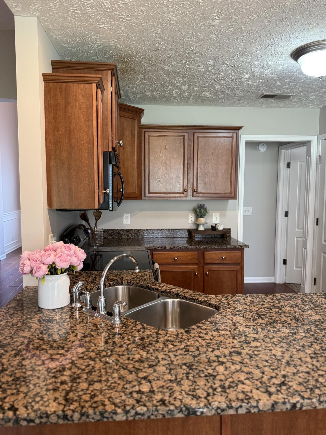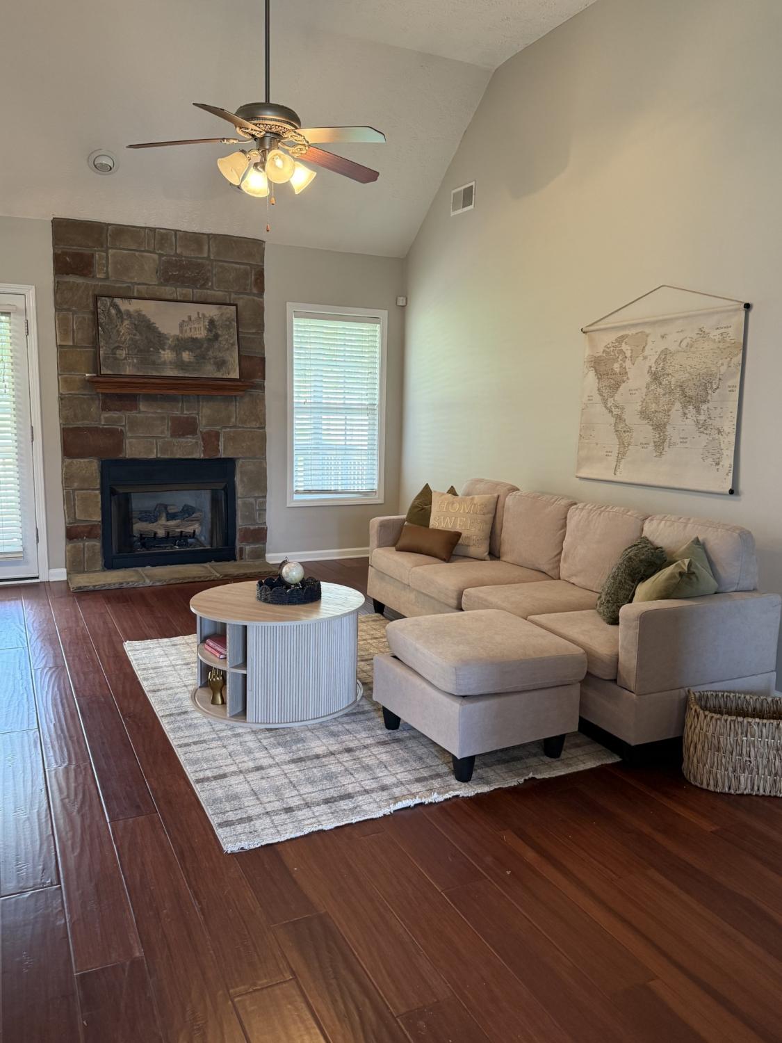 PRICE IMPROVEMENT! Move-In Ready AND Close to I-24! Location is key and this one hits all the marks-right off of exit 8 in Clarksville, this freshly painted home is ready for new owners. Includes three bedrooms on the main floor with a LARGE Bonus room with half bath over garage. Spacious eat-in kitchen with granite countertops and pantry and beautiful window lighting. Open great room with 6" hardwood floors and gas fireplace, adorned with stone wall and wood mantle. Formal dining room with soaring 14' ceiling. Enjoy the backyard with a covered deck, just re-stained and with new fan!