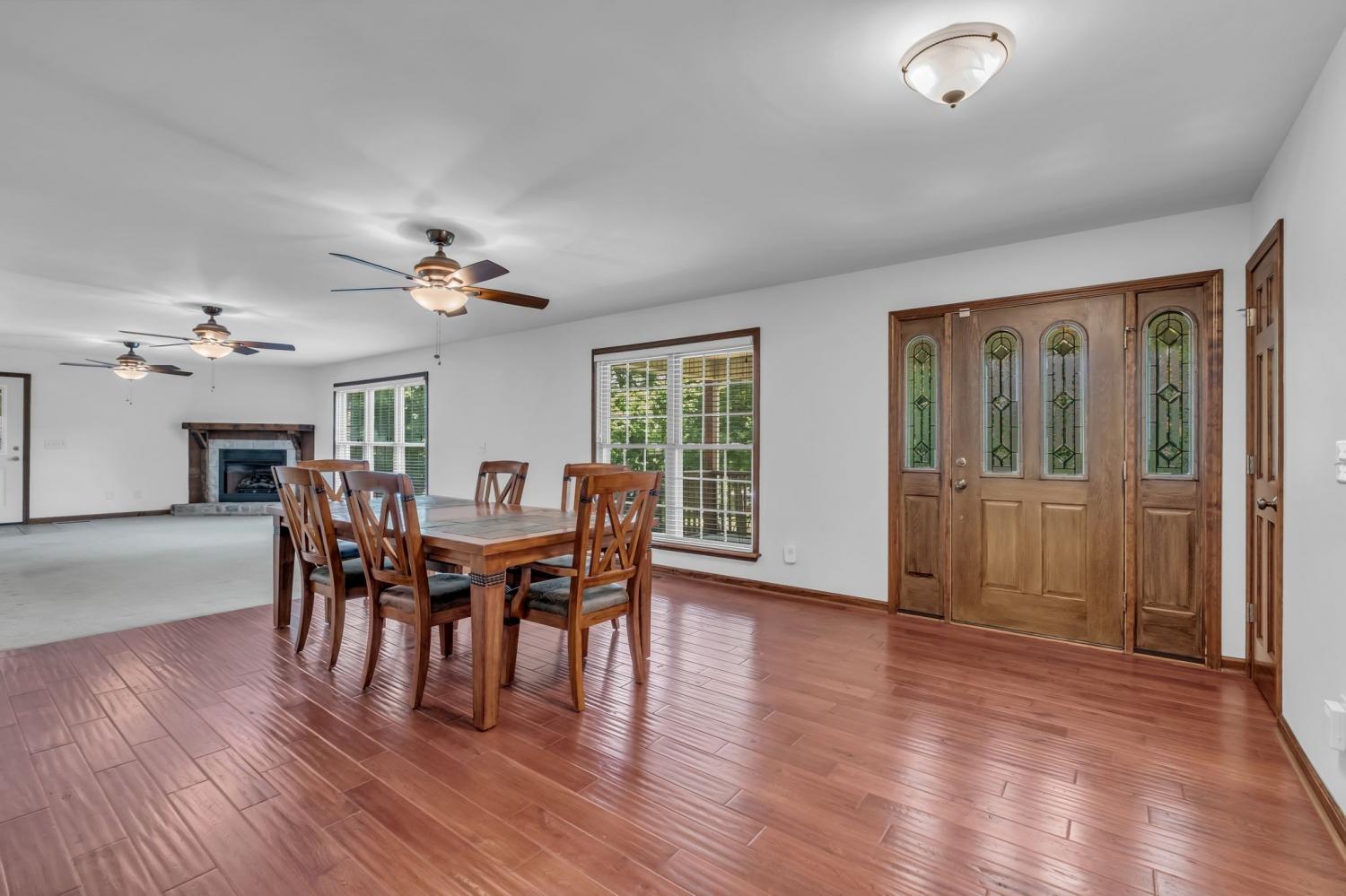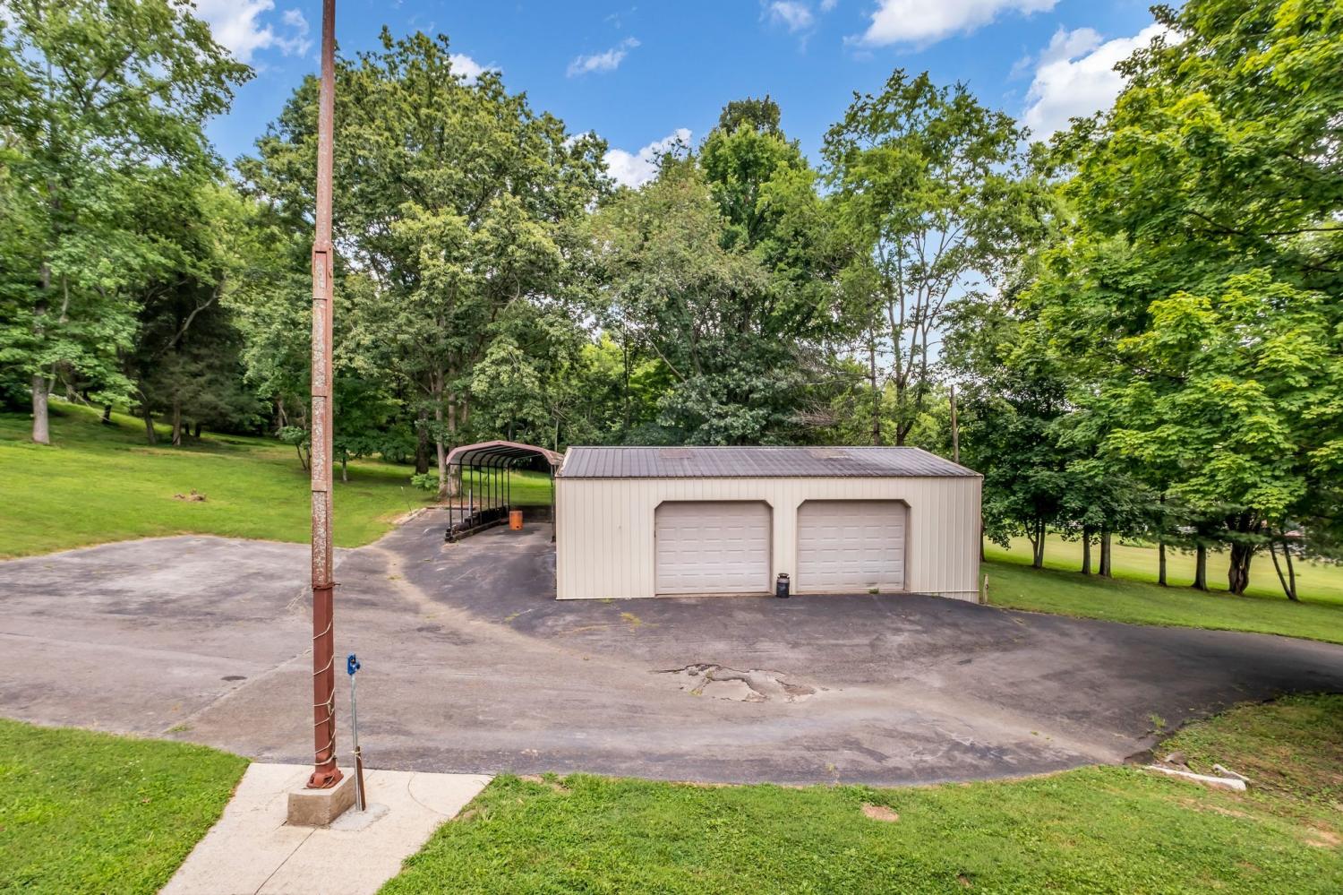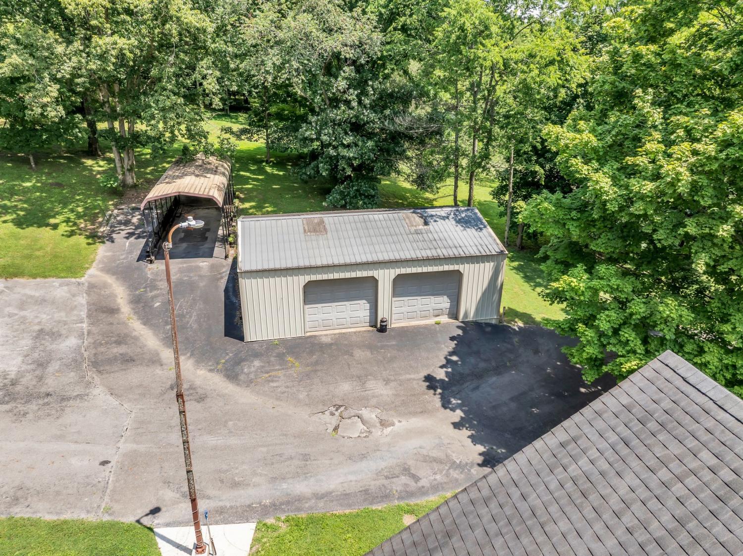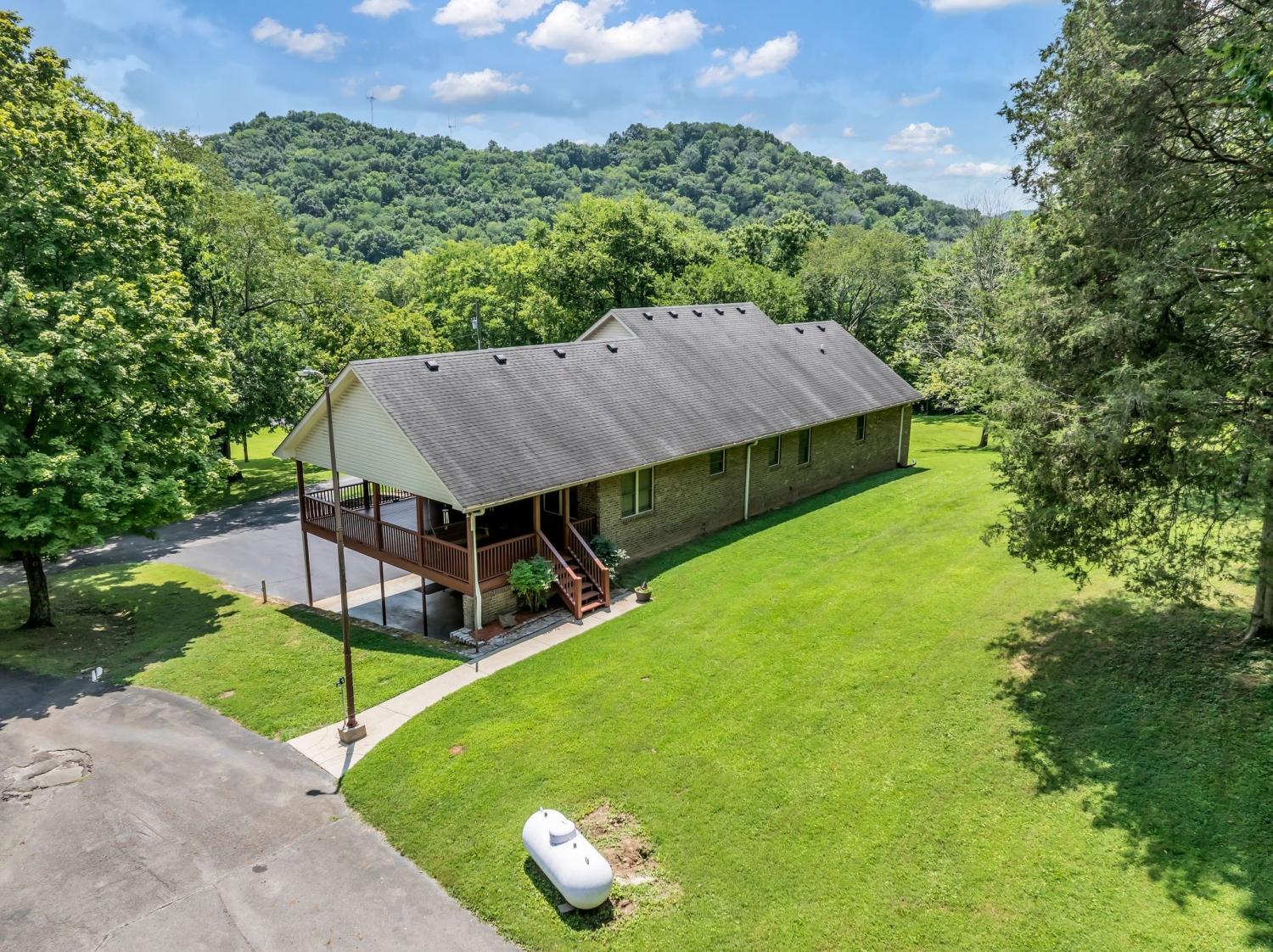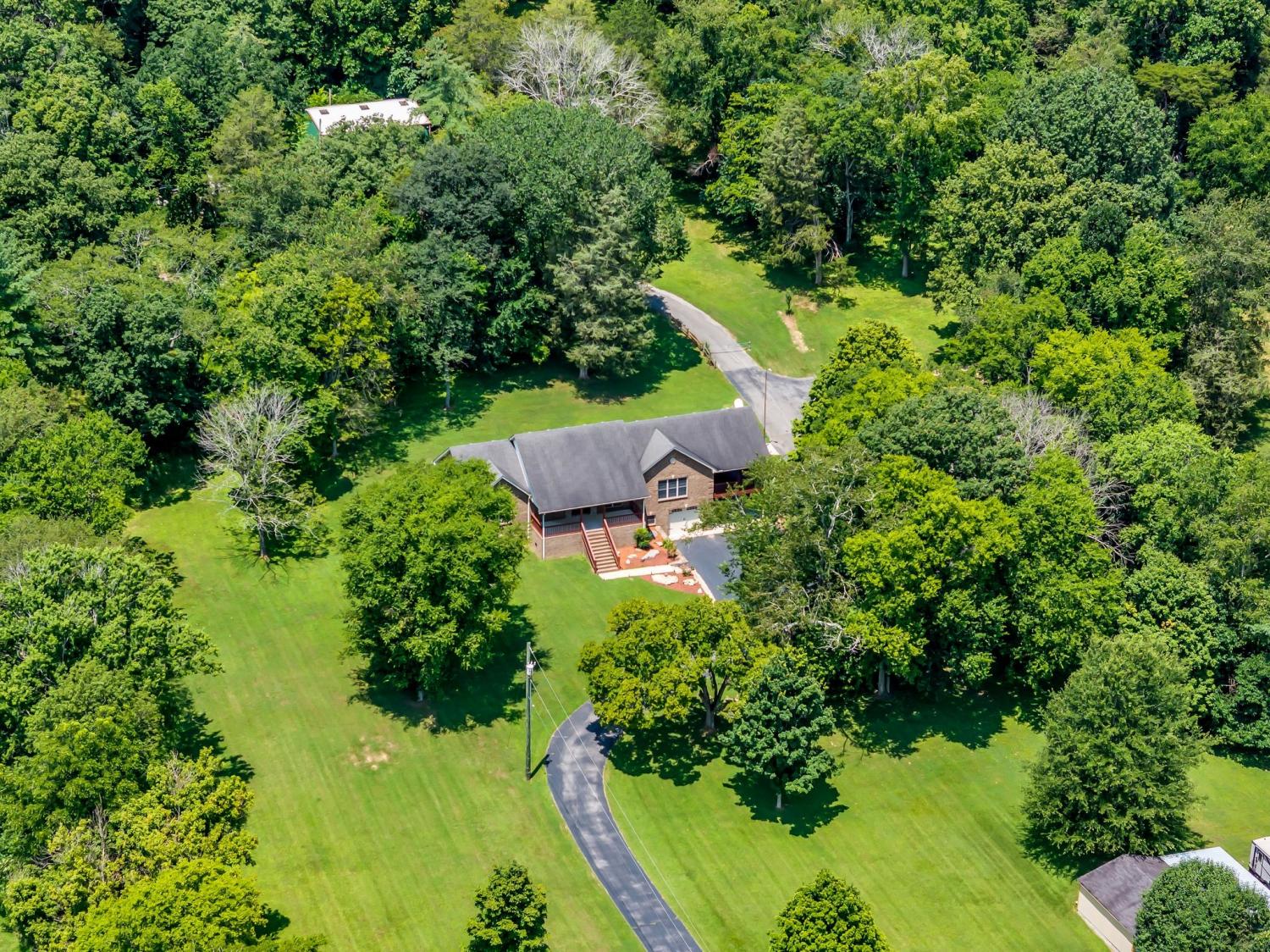 NEW PRICE! Spacious all brick home in private country setting awaits a new family on 14 acres! Property includes 2 large storage buildings that have 5 car bays/garage, one storage shed and an RV covered space with electric. The acreage is split about half open land and half treed. Rocking chair covered front porch! Home is a one level ranch with a large finished basement & a full bath, fireplace and 2 car tandem garage. Large kitchen with center island, plenty of counterspace and tiled backsplash - Kitchen opens to a 30x15 covered porch - great for entertaining!. Living RM features a corner fireplace and open dining area. 3 bedrooms on the main level. Primary bath with a large tiled walk in shower. Oversized laundry room. Huge finished basement has tons of potential and would make a great rec room, in-law suite or teen-suite. Super location, just minutes to I24 access, 20 mins to downtown Nashville, less than 25 mins to Nashville Airport. Off the beaten path with little traffic or nearby neighbors give this property a secluded feel! Must see to truly appreciate the tranquility and space this lovely home and land has to offer. One owner home. Easy to show and quick occupancy. All information deemed correct, buyer and agent to verify.