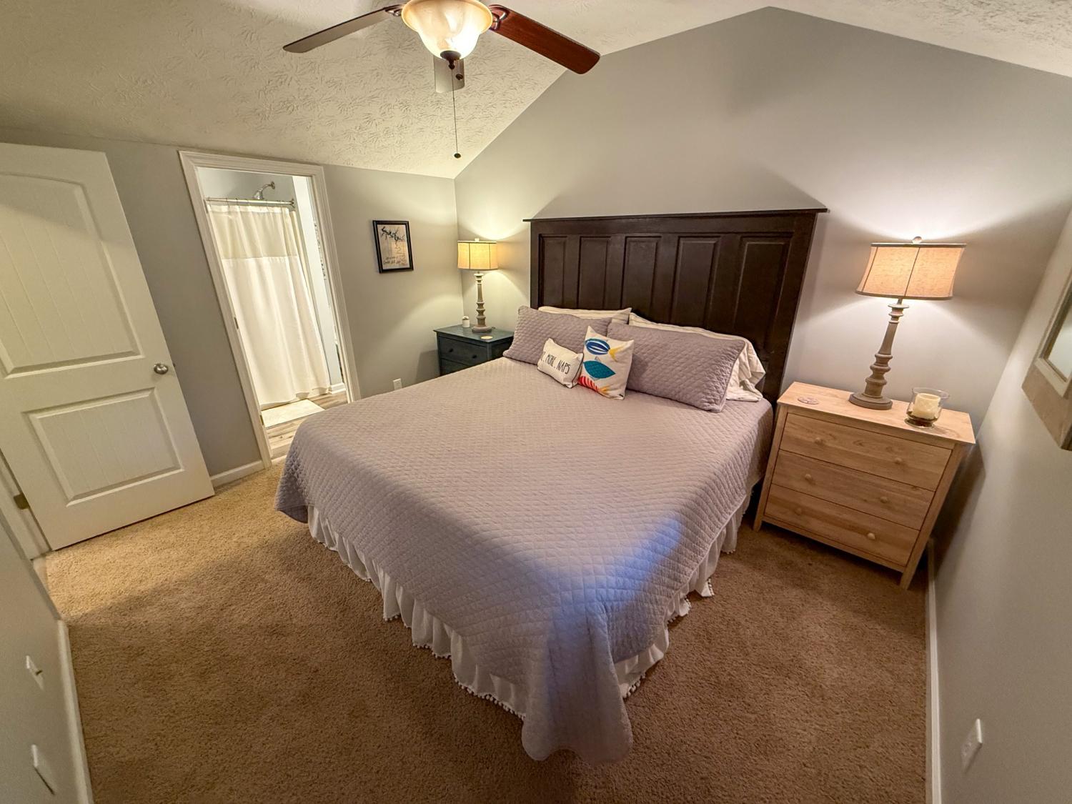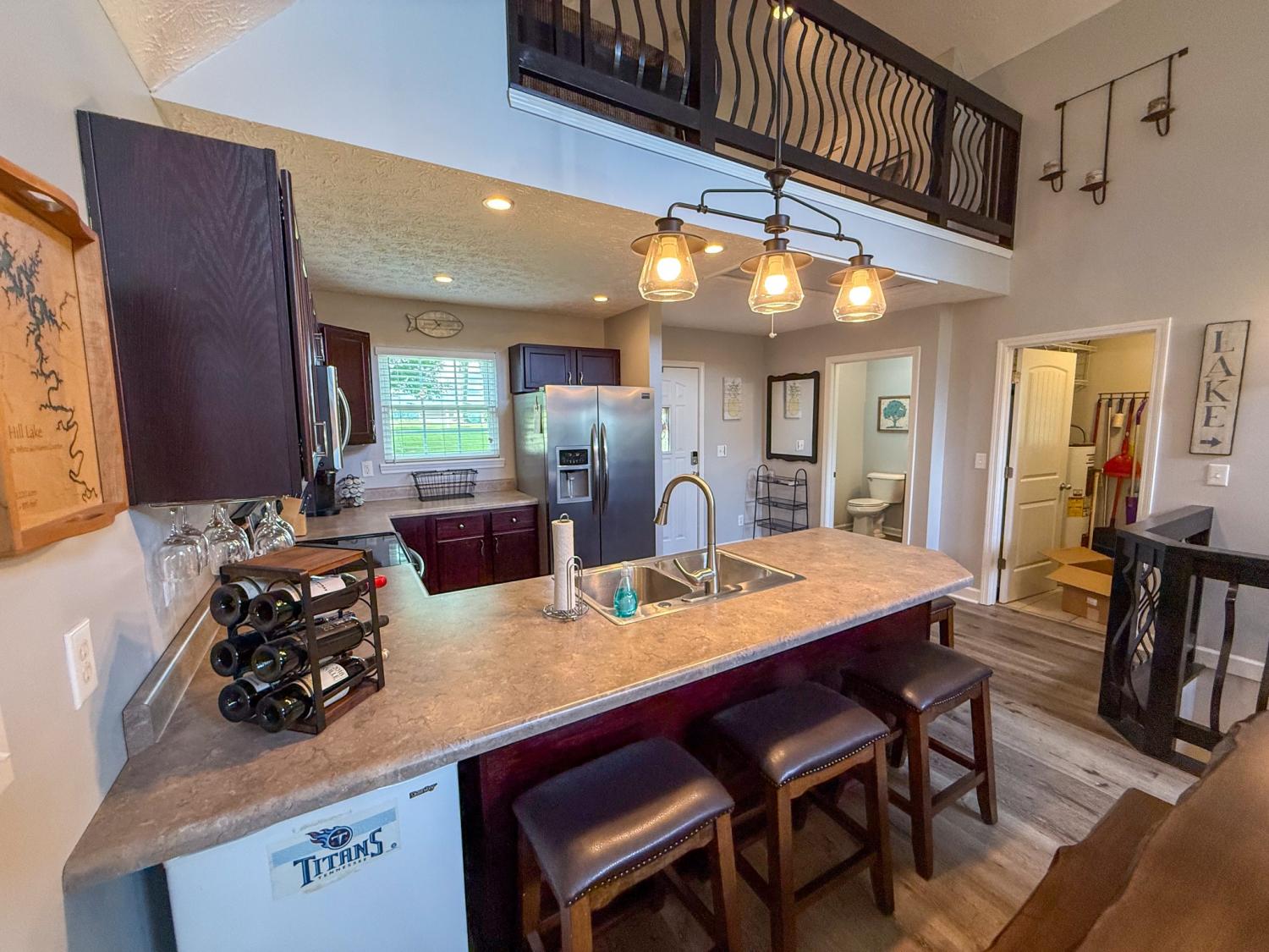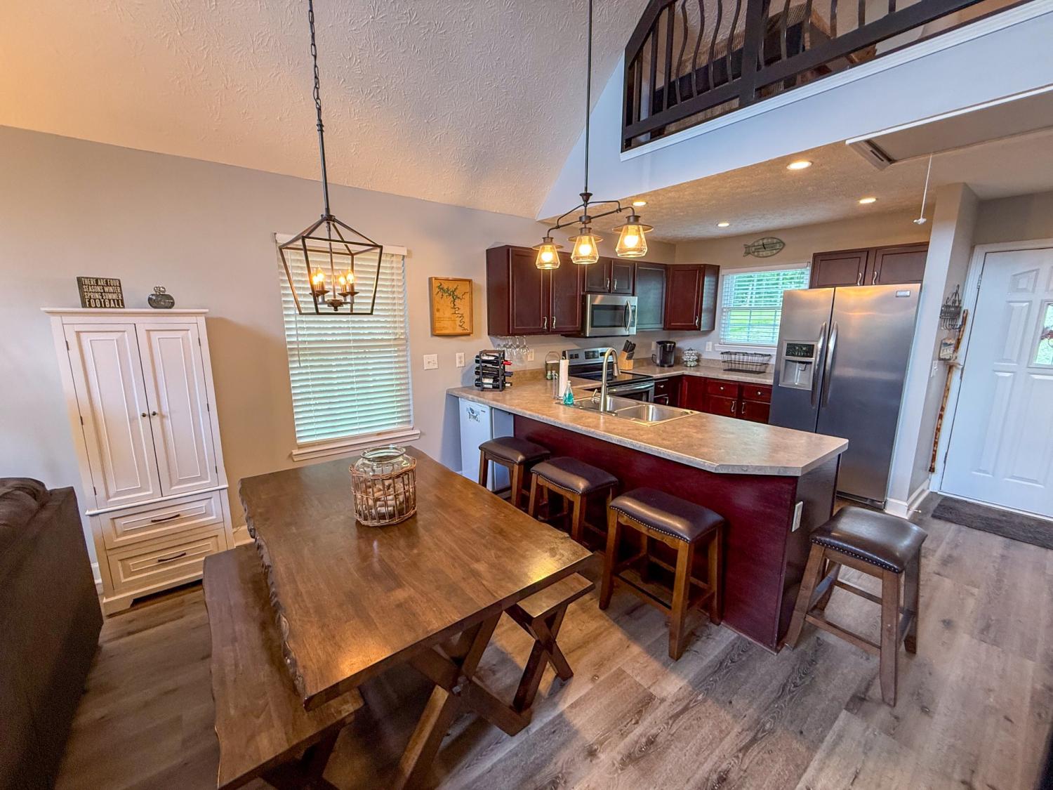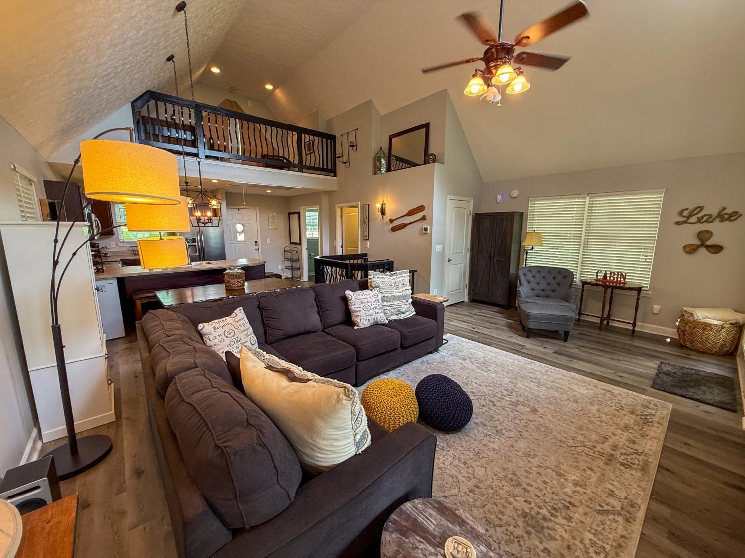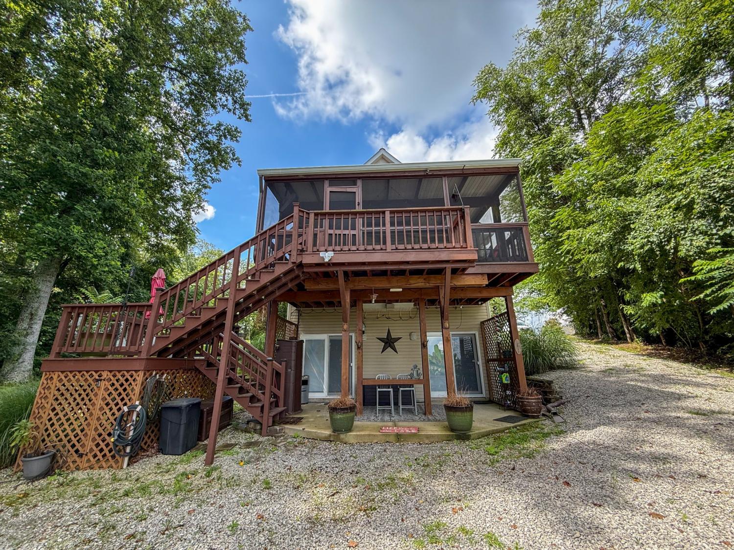 Outstanding Center Hill Lake home with year-round water views! This beautifully furnished 3-bedroom, 2.5-bath home features a spacious sleeping loft, an open-concept living area with a cozy fireplace, and stainless steel appliances. Enjoy peace of mind with a brand new HVAC unit, new gutters, and updated deck boards — perfect for relaxing or entertaining. The home also includes a newly installed SONOS sound system, creating the ideal atmosphere for hosting guests on the large covered porches with sweeping mountain and lake views. Unwind by the backyard fire pit or take advantage of two expansive circular driveways offering plenty of space for guest and boat parking. Located just 5 minutes from the neighborhood boat launch and 15 minutes from Hurricane Marina, this home offers the perfect balance of comfort, convenience, and lake life living. It also has great potential as a turn-key STR. All furnishings and items convey with the home.