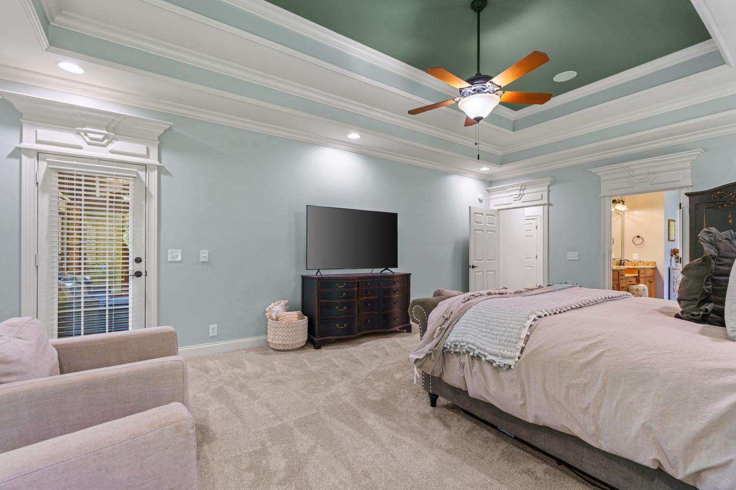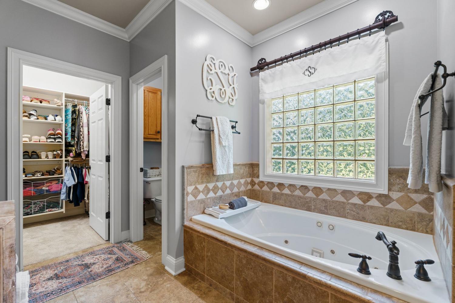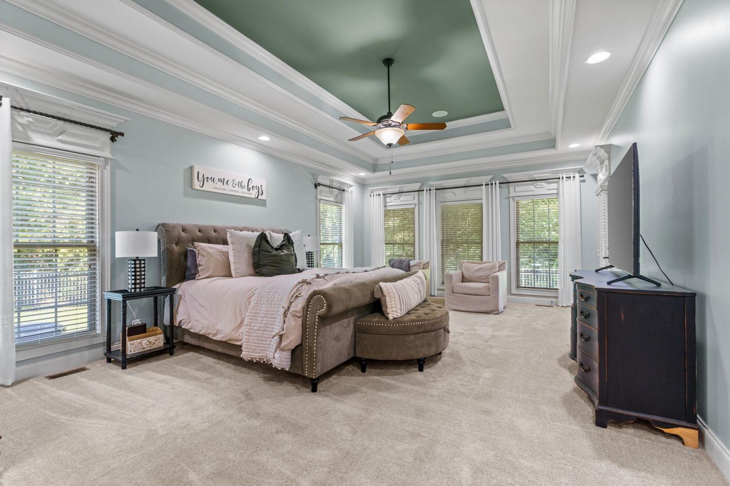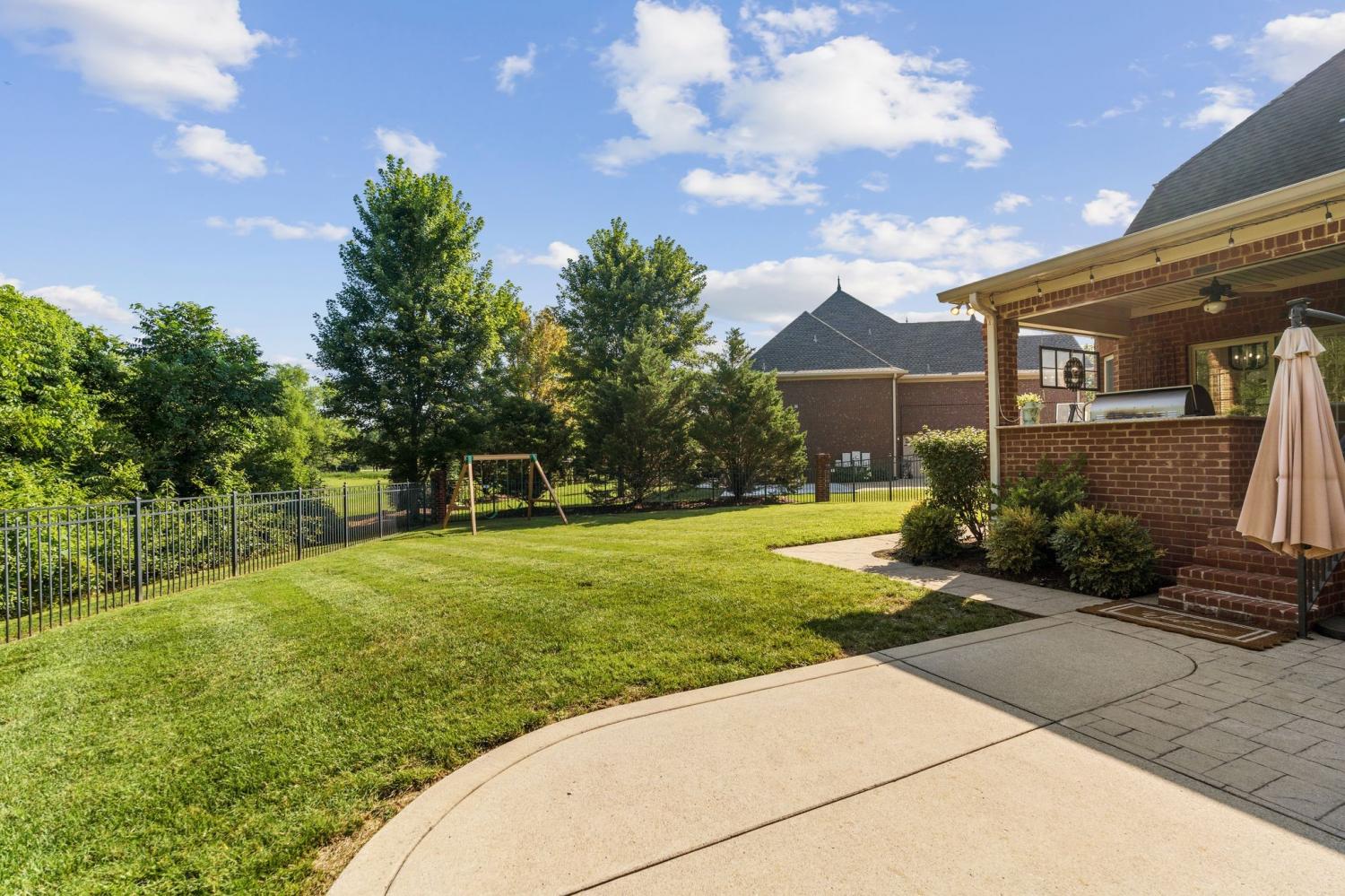 This beautifully updated 4-bedroom, 3.5-bath home in the coveted Reserve subdivision offers the perfect blend of privacy, luxury, and everyday comfort. Nestled at the end of a quiet cul-de-sac and backing to a wooded area, the .41-acre lot provides a peaceful, tree-lined setting ideal for relaxing or entertaining. A classic brick exterior with stone accents and a charming covered front porch welcomes you home. Inside, you're greeted with extensive millwork, stacked crown molding, gleaming hardwood floors, fresh paint, and new designer light fixtures. A dramatic wrought iron staircase makes a bold statement in the grand foyer. The heart of the home is a chef’s dream kitchen, featuring professional-grade stainless appliances—including a vented hood, pot filler, large island, raised bar top, and custom cabinetry with granite countertops. The kitchen opens to a warm and inviting living room anchored by a gas fireplace, perfect for cozy evenings. The main-level primary suite is filled with natural light and boasts a tray ceiling, custom built-in closet system, a luxurious bath with soaking tub, dual-head shower, and private access to a screened patio with ceiling heater for year-round comfort. French doors lead to a dedicated office on the main floor, perfect for working from home. Upstairs offers three additional bedrooms, two full baths, a spacious bonus room with wet bar, and a freshly painted media room ideal for movie nights or creative space. The laundry room is thoughtfully designed with granite folding counter tops, upper and lower cabinetry, and a deep utility sink. Step outside to enjoy the covered outdoor kitchen with built-in gas grill, griddle, sink, fridge, and granite counters—leading down to a sun-soaked patio and fully fenced backyard. Additional features include a 3-car garage, walk-out attic storage, new gas tankless water heater, newer HVACs, and optional community pool access. 48 Hour kick out clause in place