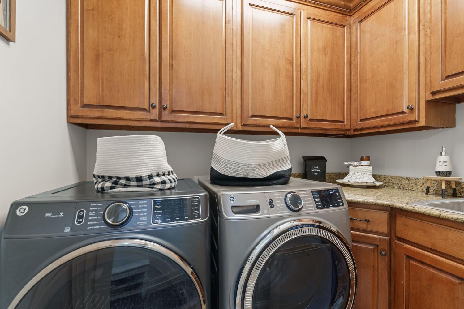 This inviting home sits quietly on a private cul-de-sac in The Reserve and has been thoughtfully refreshed to offer comfortable, move-in ready living. The floor plan is both functional and welcoming, centered around a spacious kitchen with granite counters, stainless appliances, custom cabinetry, and a large island that opens to the living area with a gas fireplace—ideal for everyday living and effortless entertaining. The main level features a comfortable primary suite, a dedicated home office, and convenient drop-zone and laundry access. Upstairs, you'll find three additional bedrooms, two full baths, and a generous bonus room that easily adapts to a variety of needs such as media, fitness, hobby, or guest space. The fenced backyard delivers a sense of privacy rarely found in this area, complemented by a covered outdoor kitchen equipped with a built-in grill, griddle, sink, and serving bar. The adjoining patio offers a peaceful setting for morning coffee or evenings with friends. Additional features include a three-car garage, abundant storage, tankless water heater, and access to a community pool. With its comfortable layout, timeless finishes, and private outdoor living, this home offers an easy lifestyle in a desirable setting. 48 hour kick out clause in place