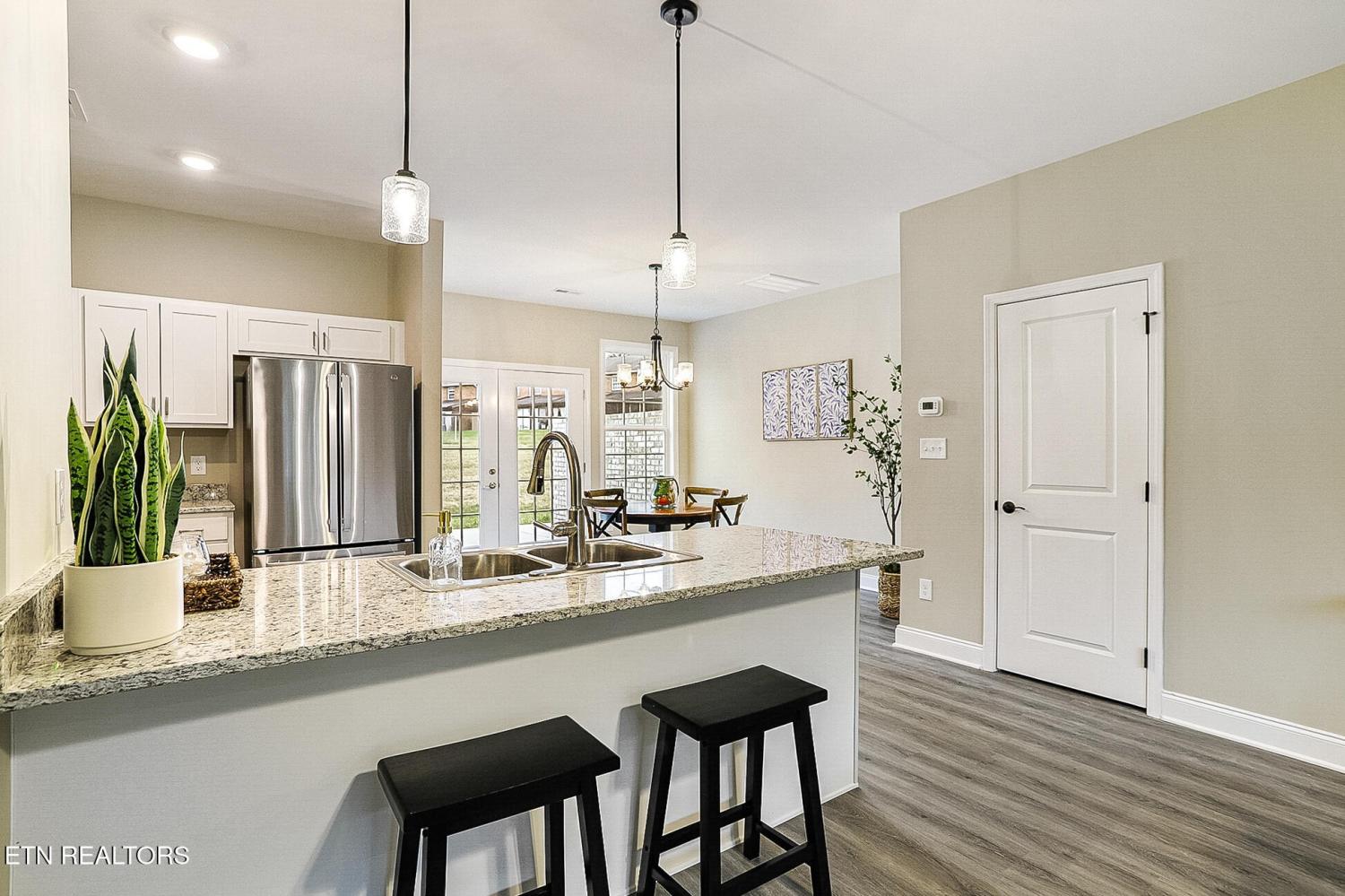 This West Hills location is central to everything Knoxville. Minutes to downtown or Farragut. The beautiful main level is an open plan with LVP flooring, powder room, a gorgeous kitchen with granite countertops, large island, stainless appliance package including refrigerator and a large pantry. Upper level has two bedrooms, each with a full bathroom w' granite tops and a laundry room. Community pool. HOA covers exterior maintenance, water, lawns & pool. Two designated parking spaces directly in front of each unit. Buyers to satisfy themselves with all mls information & HOA Docs, prior to contract. Buyer Agents welcome.