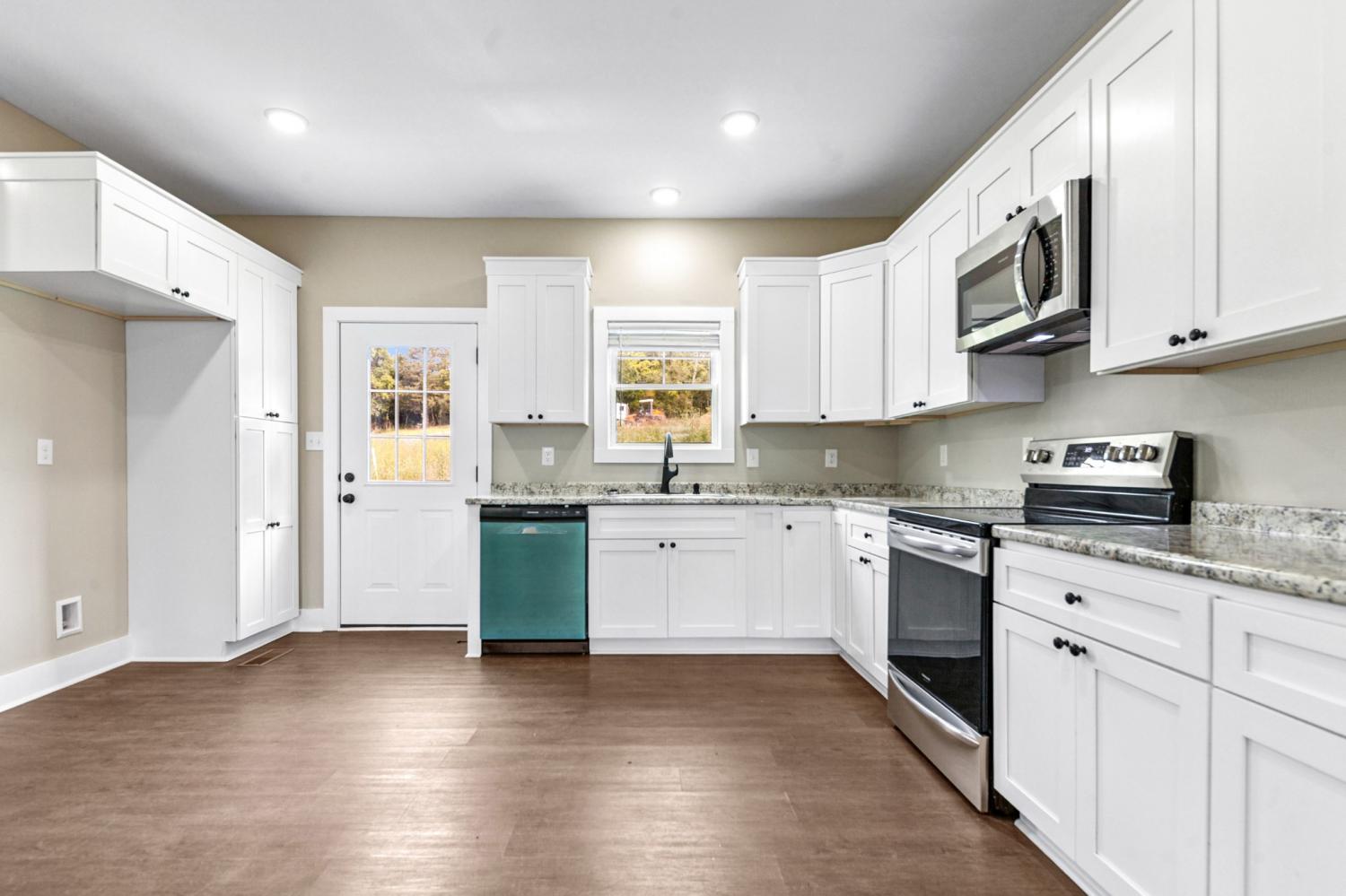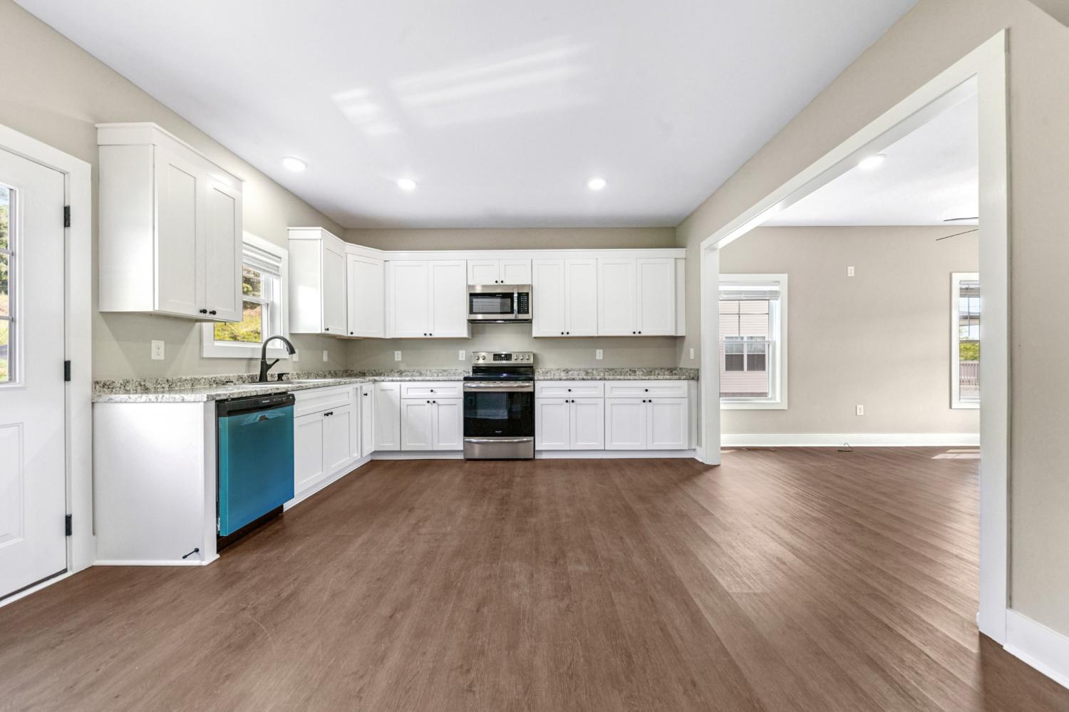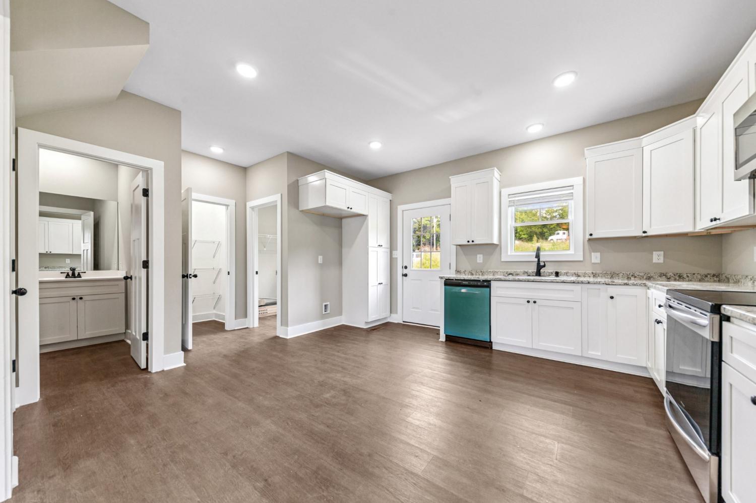 Step into this beautifully refreshed home featuring luxury vinyl plank flooring throughout the main level and brand-new carpet. Fresh paint adds a crisp, clean feel throughout. The spacious bedrooms include oversized closets for all your storage needs, and the primary suite boasts a tiled shower for a spa-like experience. The kitchen is a chef's dream with stainless steel appliances, abundant cabinet space, and natural light streaming through generous windows. Built-in storage solutions keep everything organized. Enjoy your morning coffee on the front porch or unwind on the back patio. No HOA means more freedom to make this space your own!