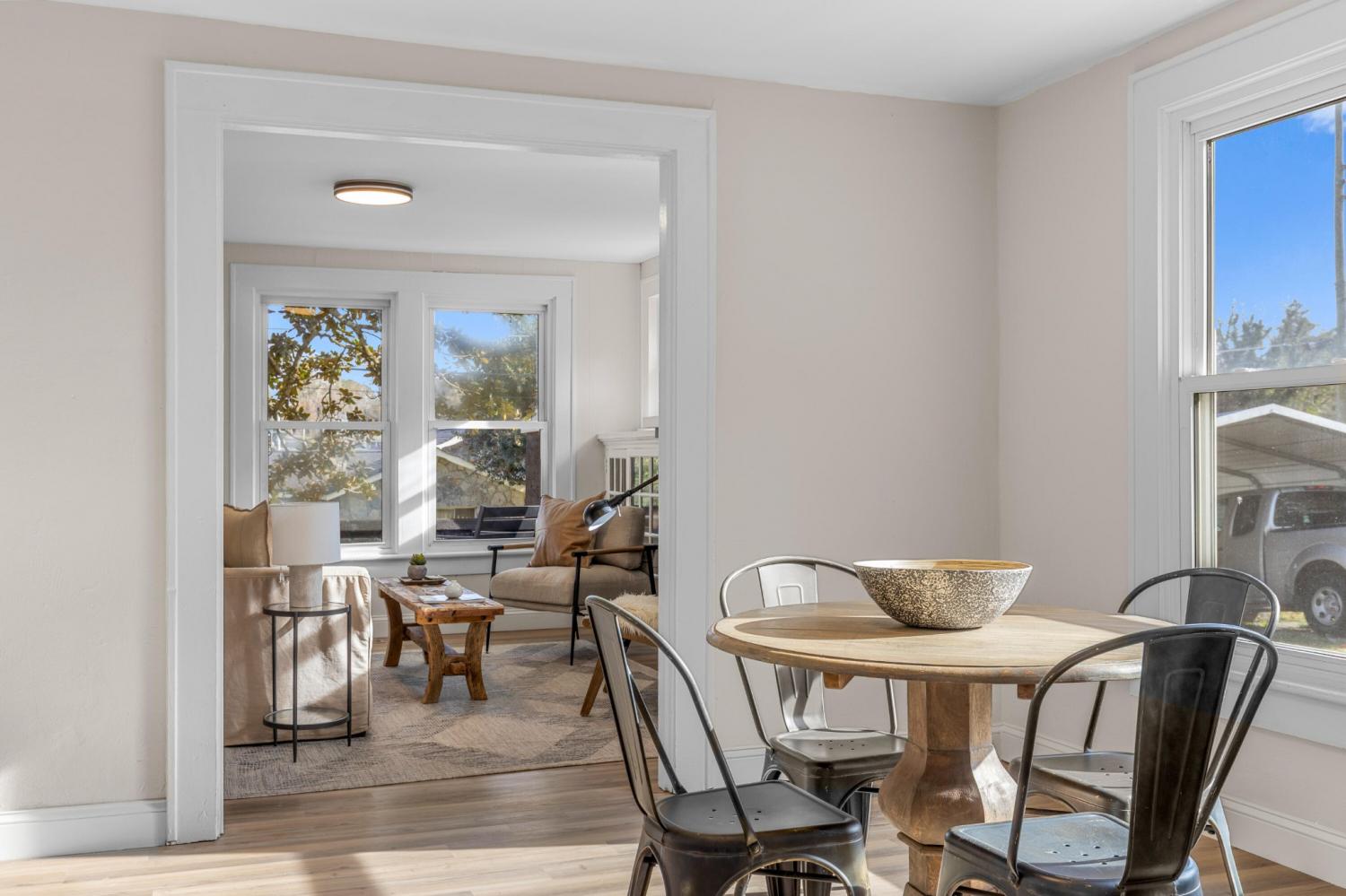 Welcome to 1117 Belmeade Avenue, a delightful 2-bedroom, 1-bathroom home filled with warmth and natural light. Step inside and you're greeted by a sunlit living room, where a handsome mantle with built-in glass shelving becomes the perfect focal point for both everyday living and entertaining. The dining area flows seamlessly into the kitchen, which has been updated with brand new appliances and features beautiful wooden countertops that lend a touch of rustic elegance. Just off the main living spaces, you'll find two inviting bedrooms, each bathed in natural light, and a full bathroom complete with a built-in linen closet for added convenience. A dedicated laundry room with hookups makes household tasks simple, while the backyard offers plenty of space to enjoy the outdoors. The fully fenced yard is ideal for pets, play, or gardening, and the detached carport with gated access provides secure parking or extra storage options. This home offers an ideal blend of charm, functionality, and updates in a welcoming setting — ready for you to move in and make it your own.