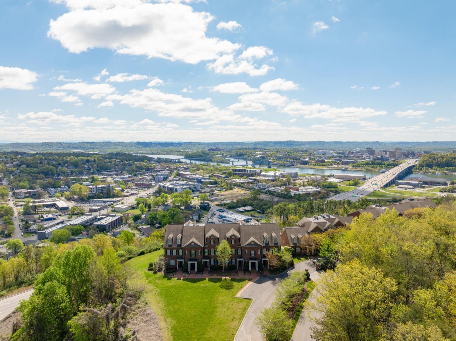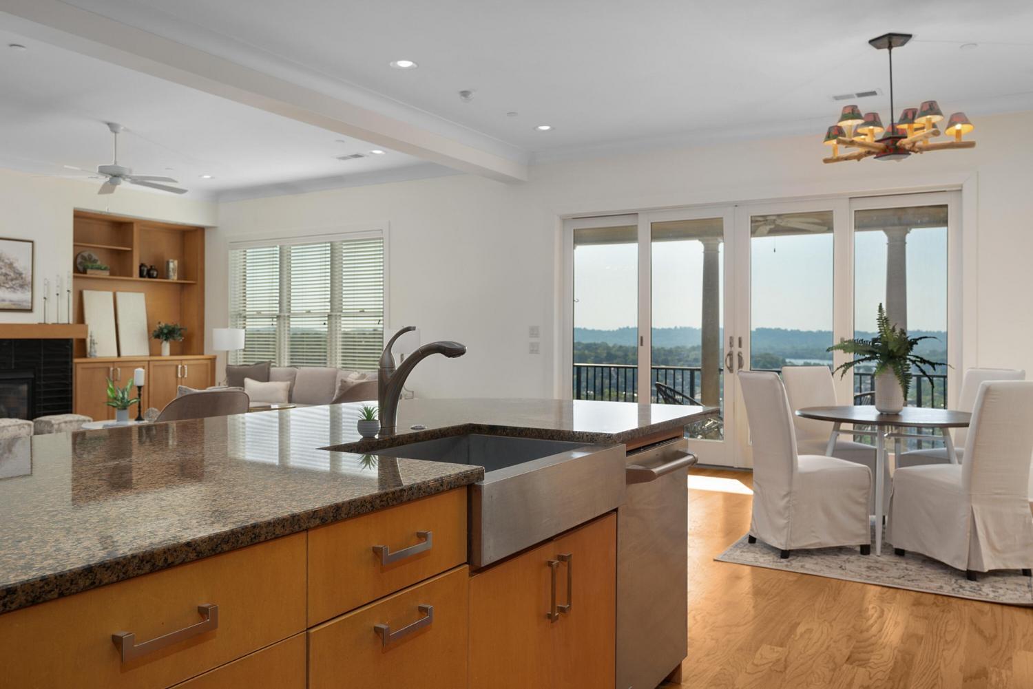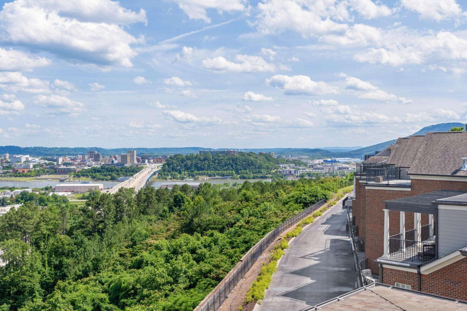Location, City-Lights Views, Elevator & a 3-Car Garage! Amazing views of the bridges across the Tennessee River to downtown Chattanooga and the mountains beyond from this spacious 3 bedroom, 3.5 bath condo at the desirable River Point development on Stringer's Ridge just minutes from the shopping and restaurants of the North Shore, schools, parks, hospitals, and downtown Chattanooga. This beautiful condo boasts hardwoods in the living areas, new carpet in the bedrooms, crown molding throughout most of the unit, an open floor plan, primary suite on the main, an elevator, fantastic outdoor living spaces and both a double and single bay garage. Your tour of the unit begins with entry from the second-floor common landing to the dedicated foyer with the powder room and elevator on the left and the main hallway and staircase on the right. This main hallway leads to the primary suite, a large laundry room and the wonderfully open kitchen, breakfast, living and dining rooms. The kitchen has a large center island, tile backsplash, under-cabinet lighting, stainless GE Monogram appliances, including the 6-burner gas cooktop, convection wall oven, microwave and built-in refrigerator, soft close cabinetry, and a stainless farm sink. The breakfast area has a decorative chandelier and sliding glass doors to the covered balcony where you can enjoy a meal while taking in the panoramic views. This view is replicated in the hand painted mural in the formal dining room which is also visible from the great room. The great room has a gas fireplace and built-in cabinetry and rounds out the open living concept. The primary bedroom has a large walk-in closet with organizer system and a full bath with a dual granite vanity, a walk-in jetted tub, a separate shower with tile surround, and a private water closet. Head upstairs where you will find an office with built-in workspace, a bedroom with a private bath and access to the balcony, a 3rd bedroom, a full hall bath, and a great bonus or fami