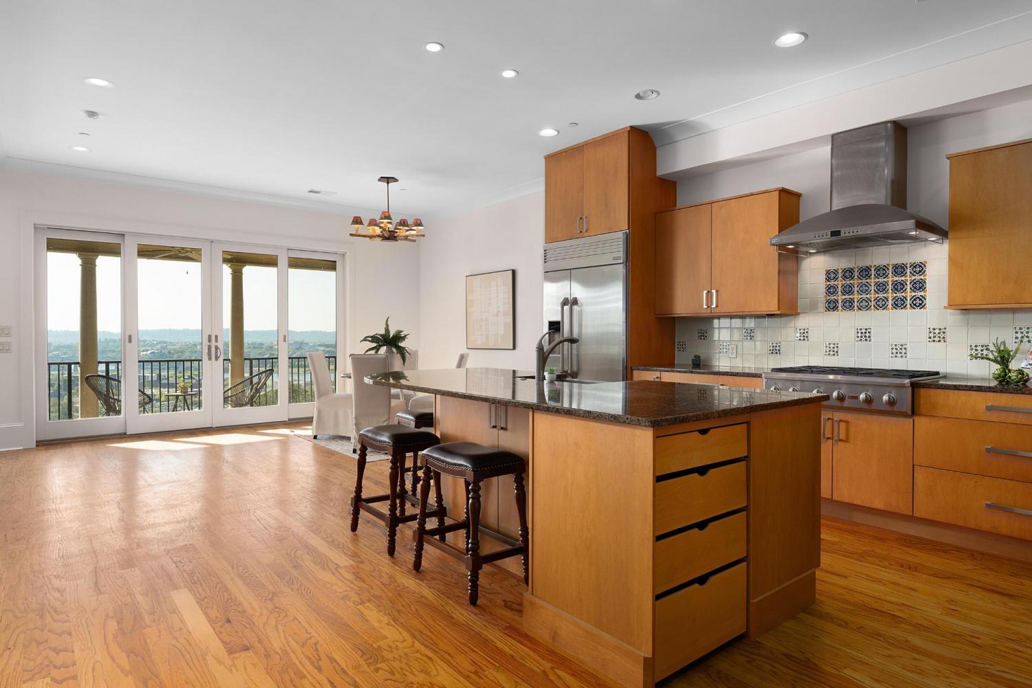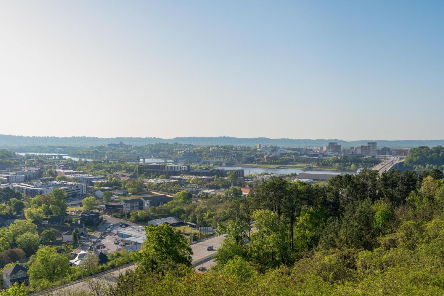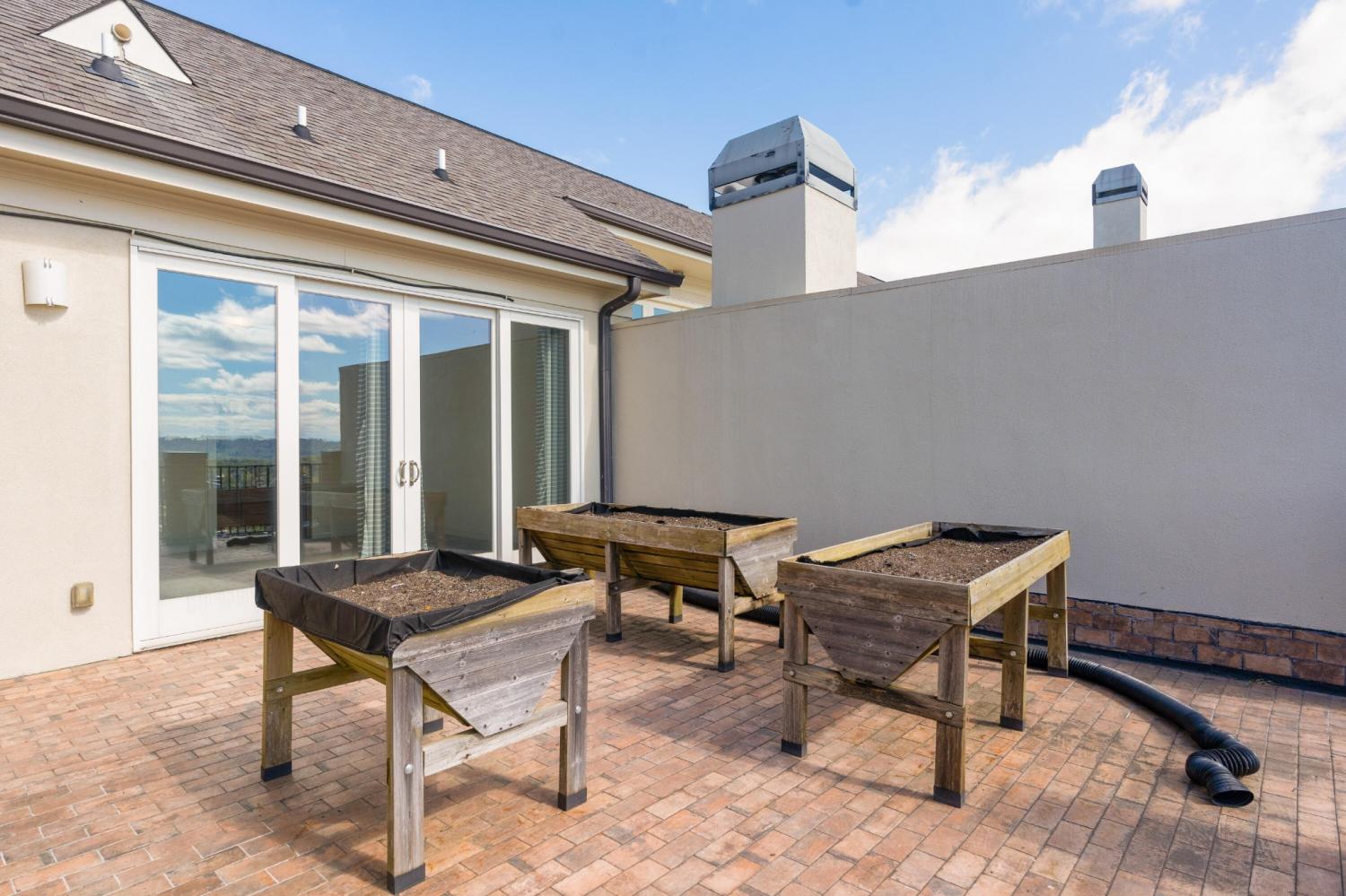 Location, City-Lights Views, Elevator & a 3-Car Garage! Amazing views of the bridges across the Tennessee River to downtown Chattanooga and the mountains beyond from this spacious 3 bedroom, 3.5 bath condo at the desirable River Point development on Stringer's Ridge just minutes from the shopping and restaurants of the North Shore, schools, parks, hospitals, and downtown Chattanooga. This beautiful condo boasts hardwoods in the living areas, new carpet in the bedrooms, crown molding throughout most of the unit, an open floor plan, primary suite on the main, an elevator, fantastic outdoor living spaces and both a double and single bay garage. Your tour of the unit begins with entry from the second-floor common landing to the dedicated foyer with the powder room and elevator on the left and the main hallway and staircase on the right. This main hallway leads to the primary suite, a large laundry room and the wonderfully open kitchen, breakfast, living and dining rooms. The kitchen has a large center island, tile backsplash, under-cabinet lighting, stainless GE Monogram appliances, including the 6-burner gas cooktop, convection wall oven, microwave and built-in refrigerator, soft close cabinetry, and a stainless farm sink. The breakfast area has a decorative chandelier and sliding glass doors to the covered balcony where you can enjoy a meal while taking in the panoramic views. This view is replicated in the hand painted mural in the formal dining room which is also visible from the great room. The great room has a gas fireplace and built-in cabinetry and rounds out the open living concept. The primary bedroom has a large walk-in closet with organizer system and a full bath with a dual granite vanity, a walk-in jetted tub, a separate shower with tile surround, and a private water closet. Head upstairs where you will find an office with built-in workspace, a bedroom with a private bath and access to the balcony, a 3rd bedroom, a full hall bath, and a great bonus or fami