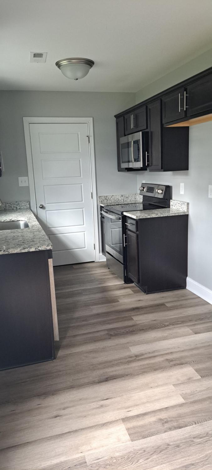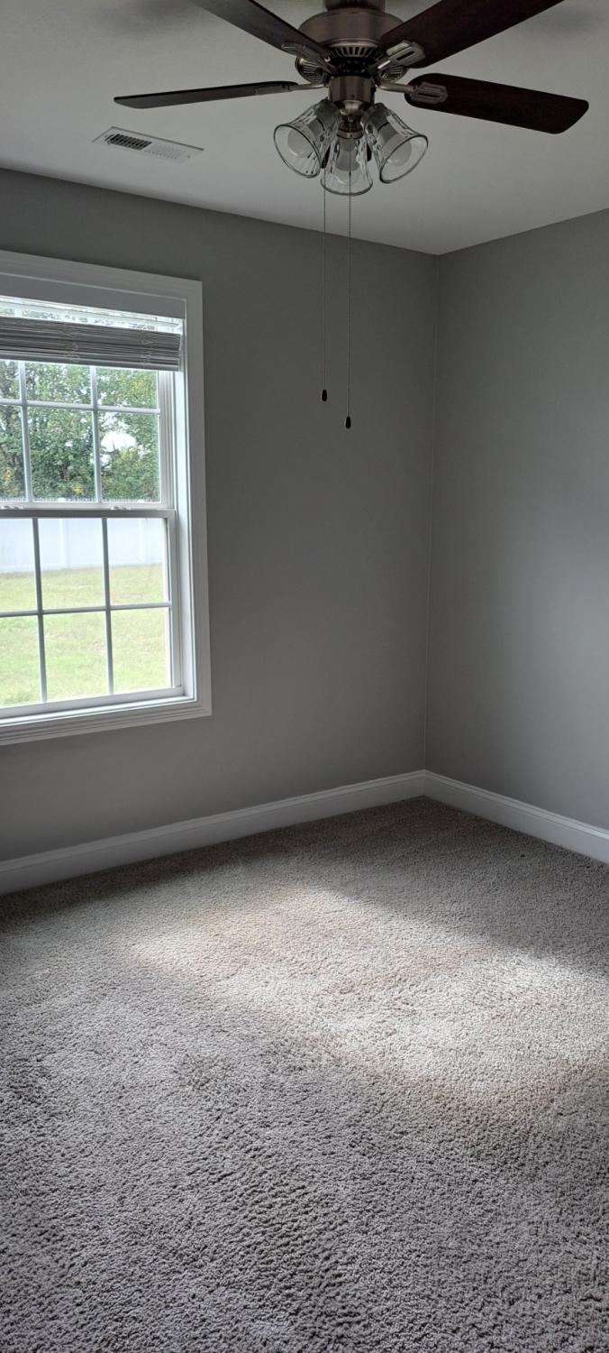 Looking for a home close to post, shopping, and dining? Look no further! Built in 2022, this 3-bed, 2 bath home features granite counters in the kitchen, luxury vinyl planks in the living room, and carpeted bedrooms. All bedrooms are decently sized, and the master and main guest room both have walk-in closets. The home also features a large backyard and is the only home in the neighborhood with white vinyl fencing. At approximately .5 acres of land, the home sits on one of the larger lots in the neighborhood and backs up to a grove of trees. All interior walls have been freshly painted and the entire home has been professionally deep cleaned.