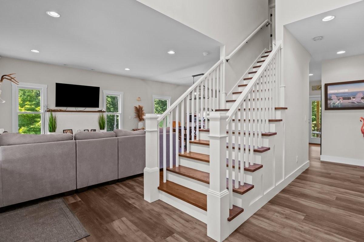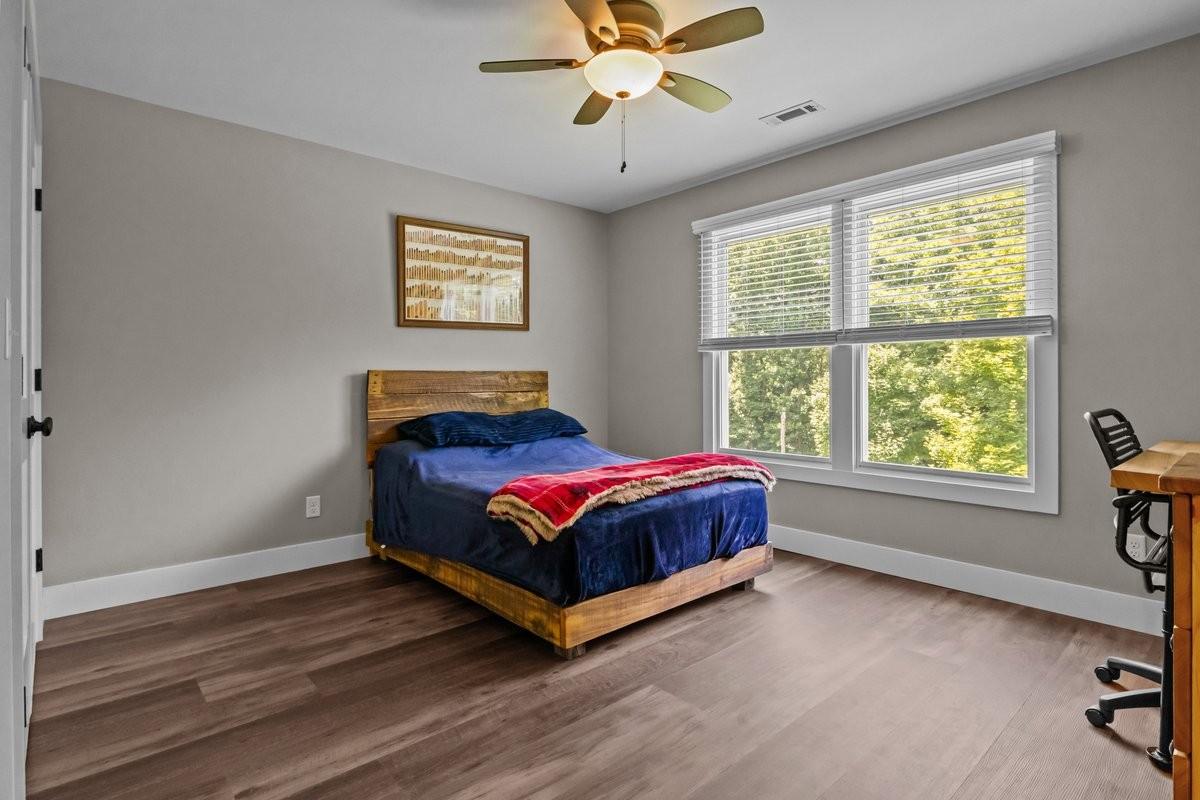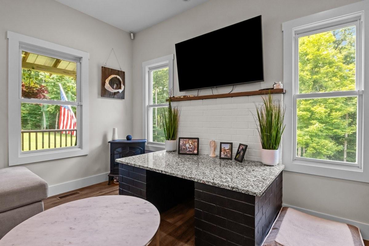 PEACE IN THE VALLEY IN VANLEER ~ Traditional timeless elegance in a private paradise. 32.27 acres in the Greenbelt offers an enchanting forest of wild ferns, flowing creek, artistic rock formations, natural spring & wooded trails. Various wildlife species including deer & turkey roam about the park-like setting. Gated entrance opens up to a new 24x30 shop with electric. Romantic residence with a whole-house backup generator rests in the heart of the clearing with an ambiant, inviting glow. Panoramic views of the property from the rocking chair front porch & covered rear balcony. Striking stairway & elegant chandelier are a central architechtural focus as you enter. Transition to the main living area that opens up to a cohesive space with lofty ceilings & recessed lighting. Combination cozy living room, intimate dining room & comfortable kitchen allow for inclusive social gatherings. Luxury vinyl plank flooring throughout features realistic wood grain patterns creating depth & richness. Gather around the kitchen island with a gorgeous white quartz countertop that couples as a breakfast bar. The addition of stunning subway tile, stainless appliances, sliding barn door pantry & natural gas stove make it a chef's delight. Tranquil primary suite is tucked away at the rear of the home's main level for relaxation and rejuvenation. It features a walk-in closet & luxury-focused en suite bath with separate vanities, makeup station, jacuzzi tub & spa shower. Guests can help themselves to the convenient half bath off the main hallway. Friends & family can retreat upstairs to generous-sized bedrooms and office/4th BR with access to a full hall bath with combo tub/shower. A bonus daylight basement is rough plumbed for a 4th bath & kitchen & has a striking earth tone stained concrete floor, french door & multiple windows for ample sunlight. A versatile space that could be a rec room, gym, in-law suite or separate apartment with private entrance that opens out to a relaxing patio.