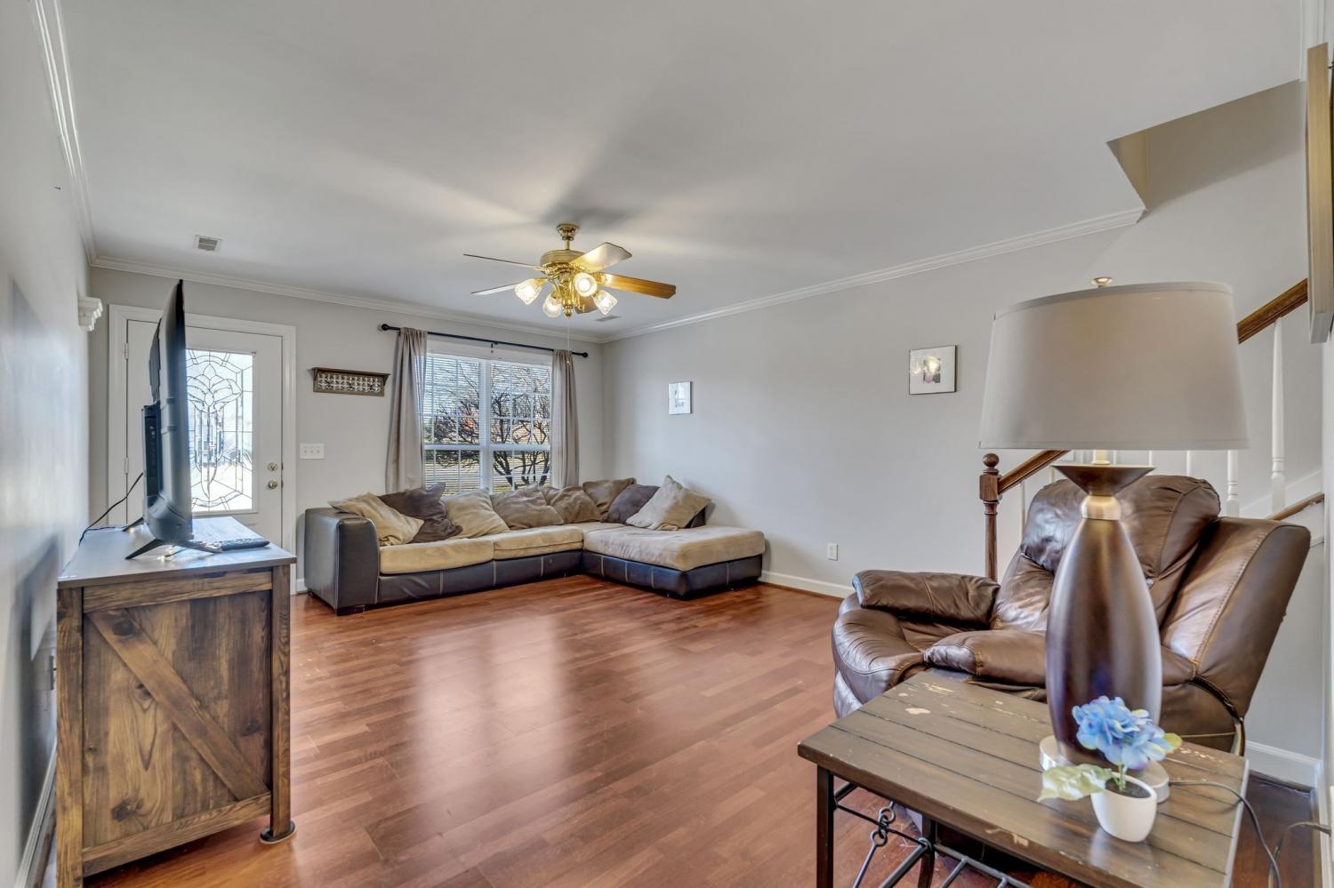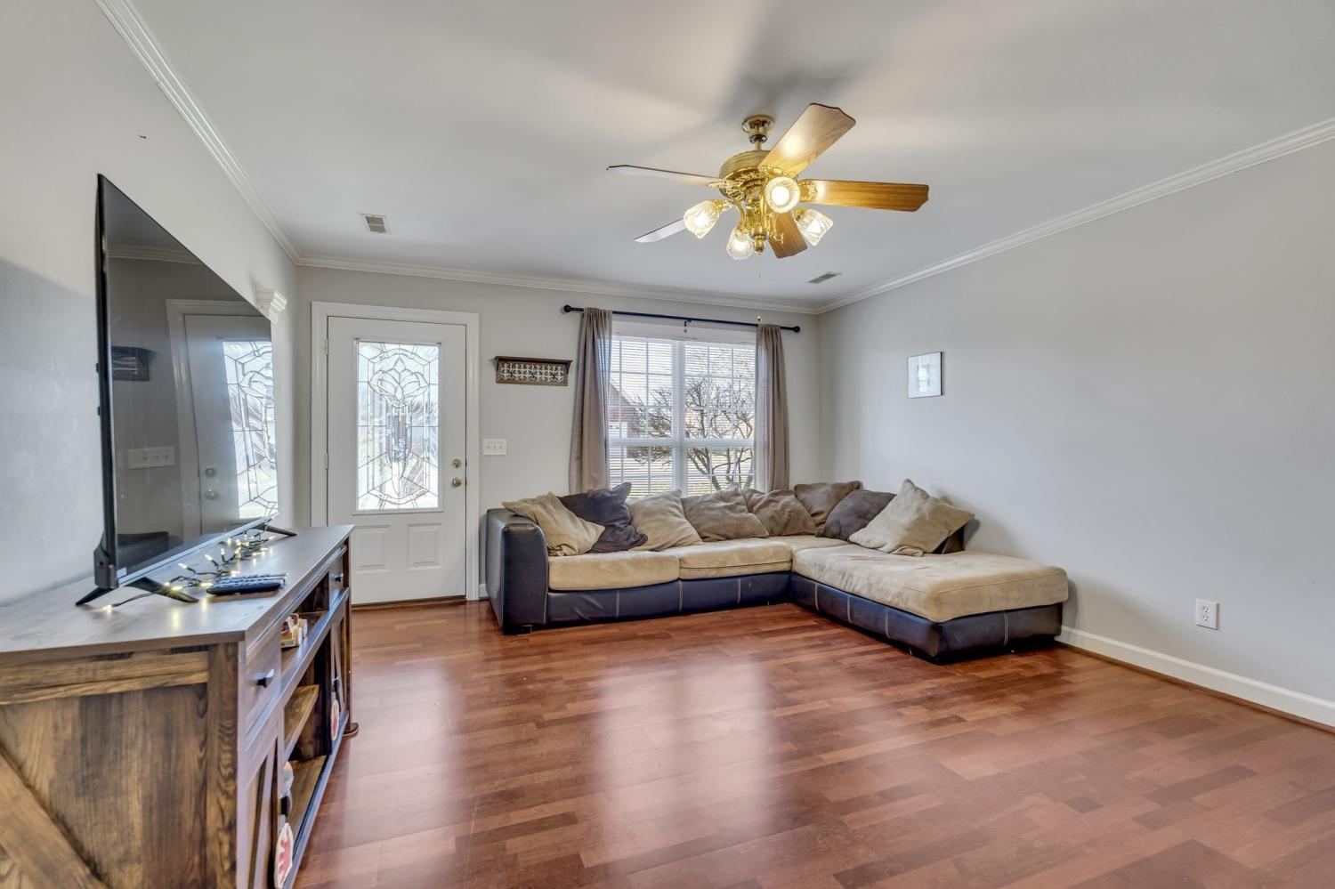 Great Location with Outdoor Space for Relaxing!! This home is all brick and located literally in the heart of Smyrna just 2 minutes from Nissan and ready to move in! Walk to restaurants, grocery stores, shopping, post office, and greenway leading to multiple parks and lake. This home has 2 spacious bedrooms with one upstairs and one downstairs. The upstairs bedroom has an ensuite with a garden tub, separate shower, double vanities, and double walk-in closets. An open loft creates an additional area for a study/office/craft room or play area for children. The kitchen is huge with tons of cabinets, chair rail, double ovens, dishwasher, refrigerator, cooktop, garbage disposal, matching tiled countertops, and a large area for eating while looking out to the oversized patio and fire ring in the backyard ready for adding your rocking chairs for relaxing after a long day. The patio includes an awning that lets in and out creating that perfect spot for entertaining no matter the weather while enjoying the spacious backyard. Home has beautiful floors with no carpet, lots of natural light, recessed lighting, decorative crown molding, and blinds throughout. There is also an abundance of space to accommodate all your laundry area needs with cabinets and hanging racks. Minimal steps from the front and 2 car garage makes entry easy. Garage has built-in storage cabinets as well. Mowing included in the HOA. Roof replaced in 2020. Call and schedule your private home tour today and make this home yours!