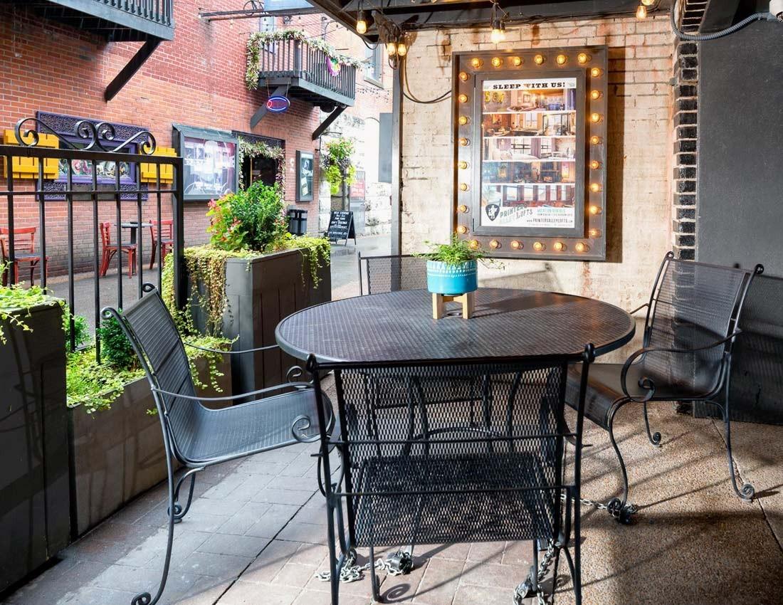 The heart of Downtown Nashville. The entrance to the building is actually on Printers Alley.