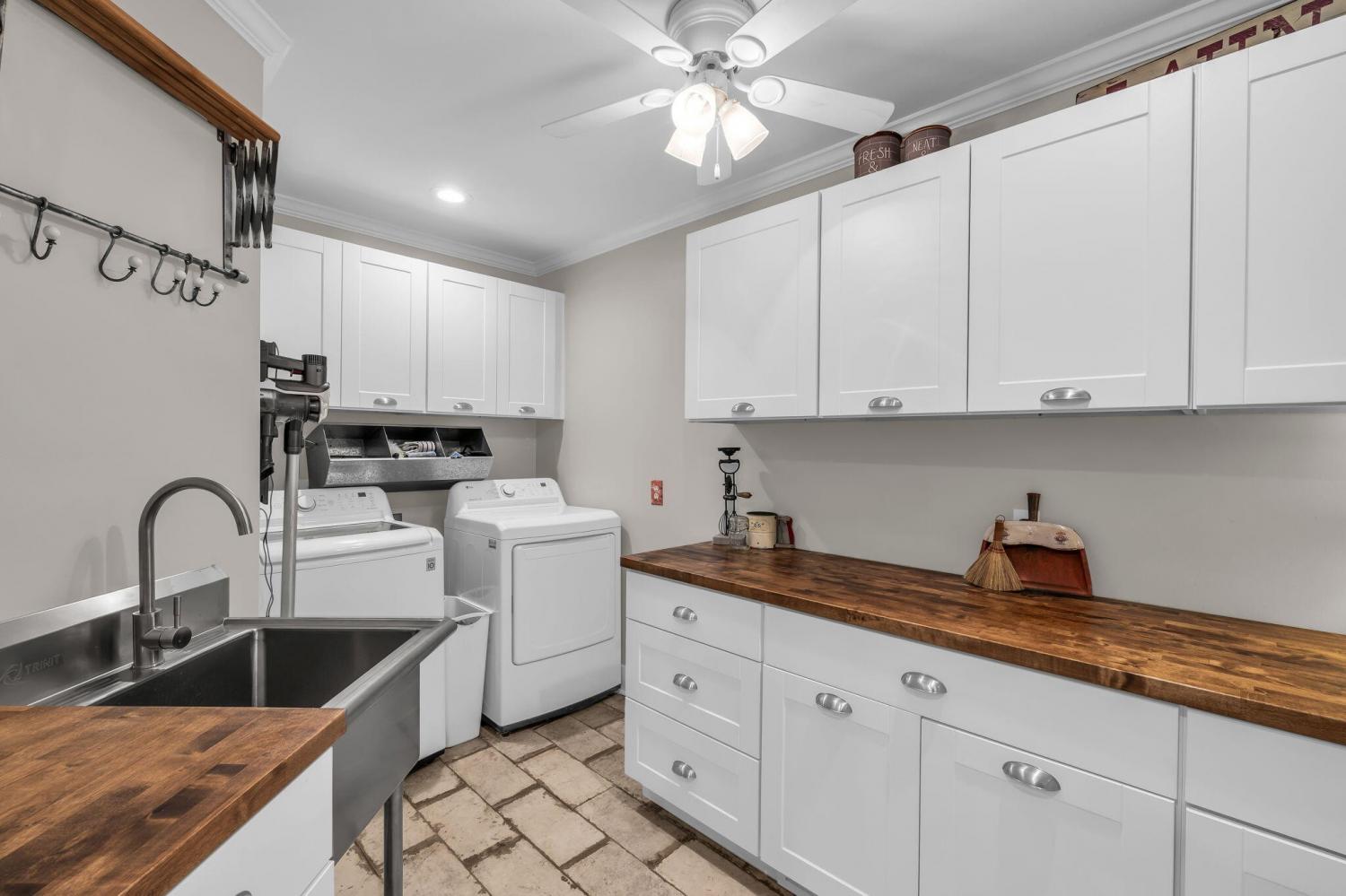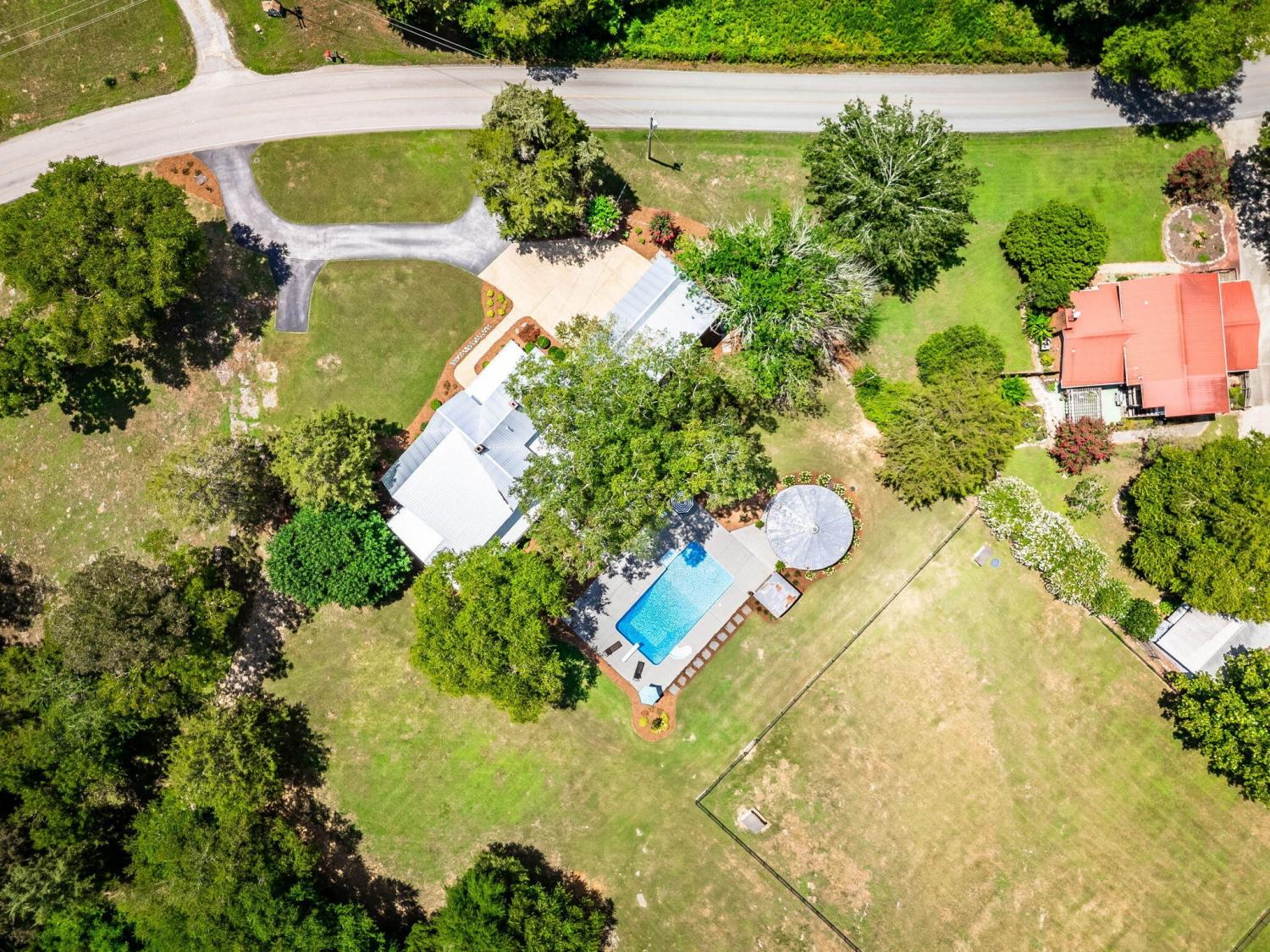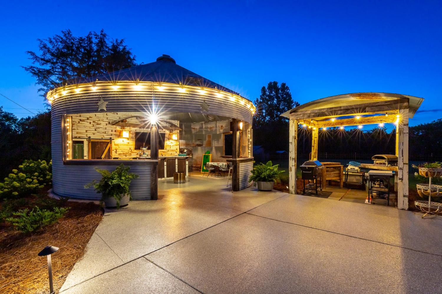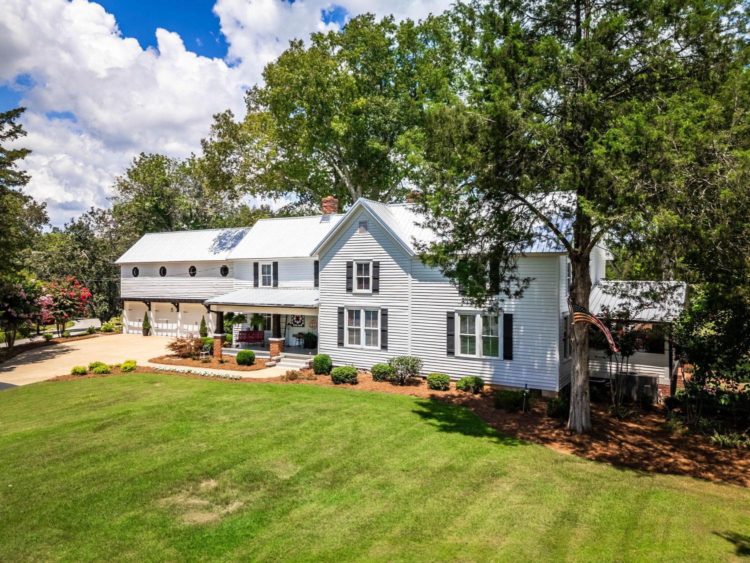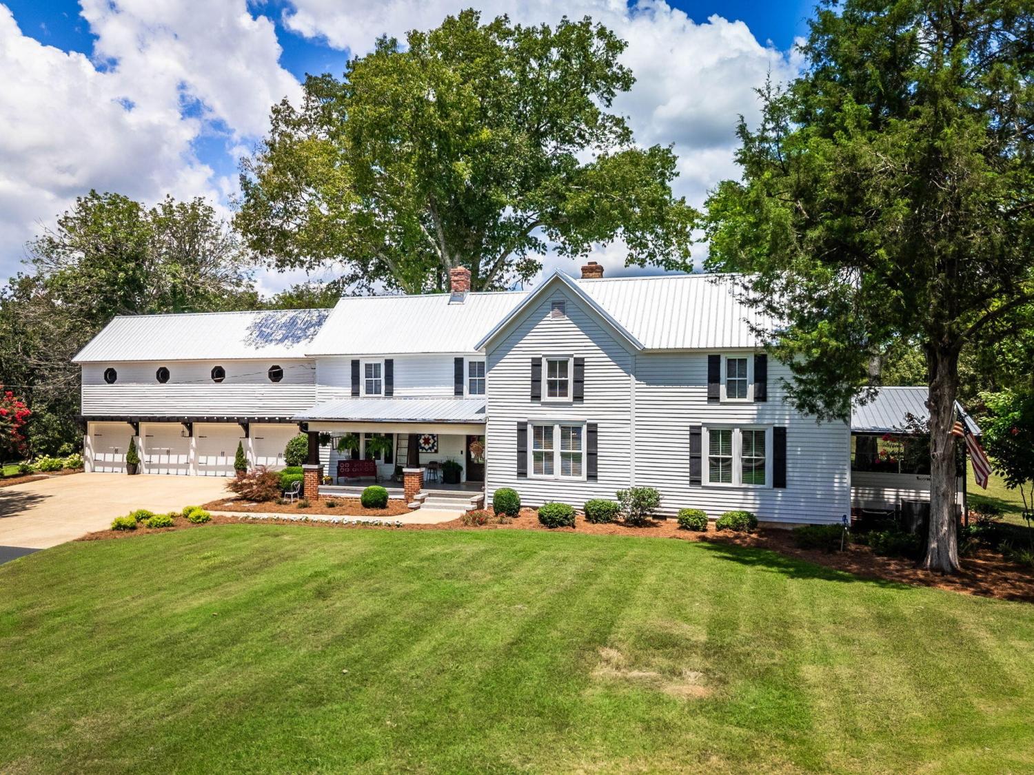 Your Chickamauga farmhouse fantasy just came to life on five level, usable acres. If you've been dreaming in farmhouse tones, pinning porch swings and clawfoot tubs, and swooning over open space, your dream has come to life. This stunning home offers over 5,000 square feet of space and style that blends modern updates with timeless charm. With five (possibly six) bedrooms, four full baths, and two half baths, there's room for everyone and everything. The primary suite is located on the main level and features its own sitting room, ensuite bath, built ins and fireplace. The heart of this home is without a doubt the kitchen, a true gathering place where family and friends will naturally gravitate. Outfitted with fresh stainless steel Bosch appliances and not one but two ovens, this kitchen is built for both everyday living and effortless entertaining. The furniture-style cabinetry adds warmth and character, perfectly complementing the sleek granite countertops and creating a functional space. Just off the kitchen, a spacious pantry and laundry room provides even more storage and workspace, complete with butcher block countertops, cabinetry, and a tankless water heater. The upstairs den is a showstopper—measuring 48 by 24 feet with its own kitchenette and a large closet, it's perfect for a family room, teen retreat or even a studio. A mudroom connects it all, offering function and flexibility. Outside, the details continue to impress. A new metal roof tops the home while epoxy-coated surfaces add a clean, polished look to the covered rocking chair front porch, the four car garage floor, and the pool area. The inground pool is beautifully maintained and sits beside a converted grain bin that serves as a pool house with a kitchenette and a full bathroom. There's also a covered grilling station and a wrought iron fence that encloses the backyard.