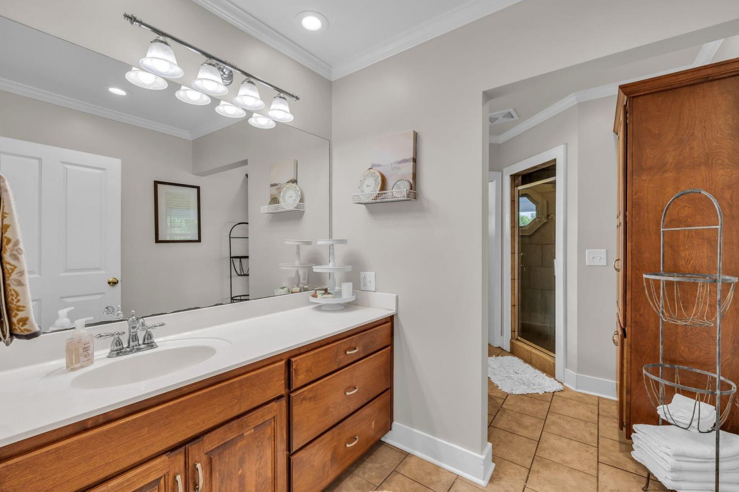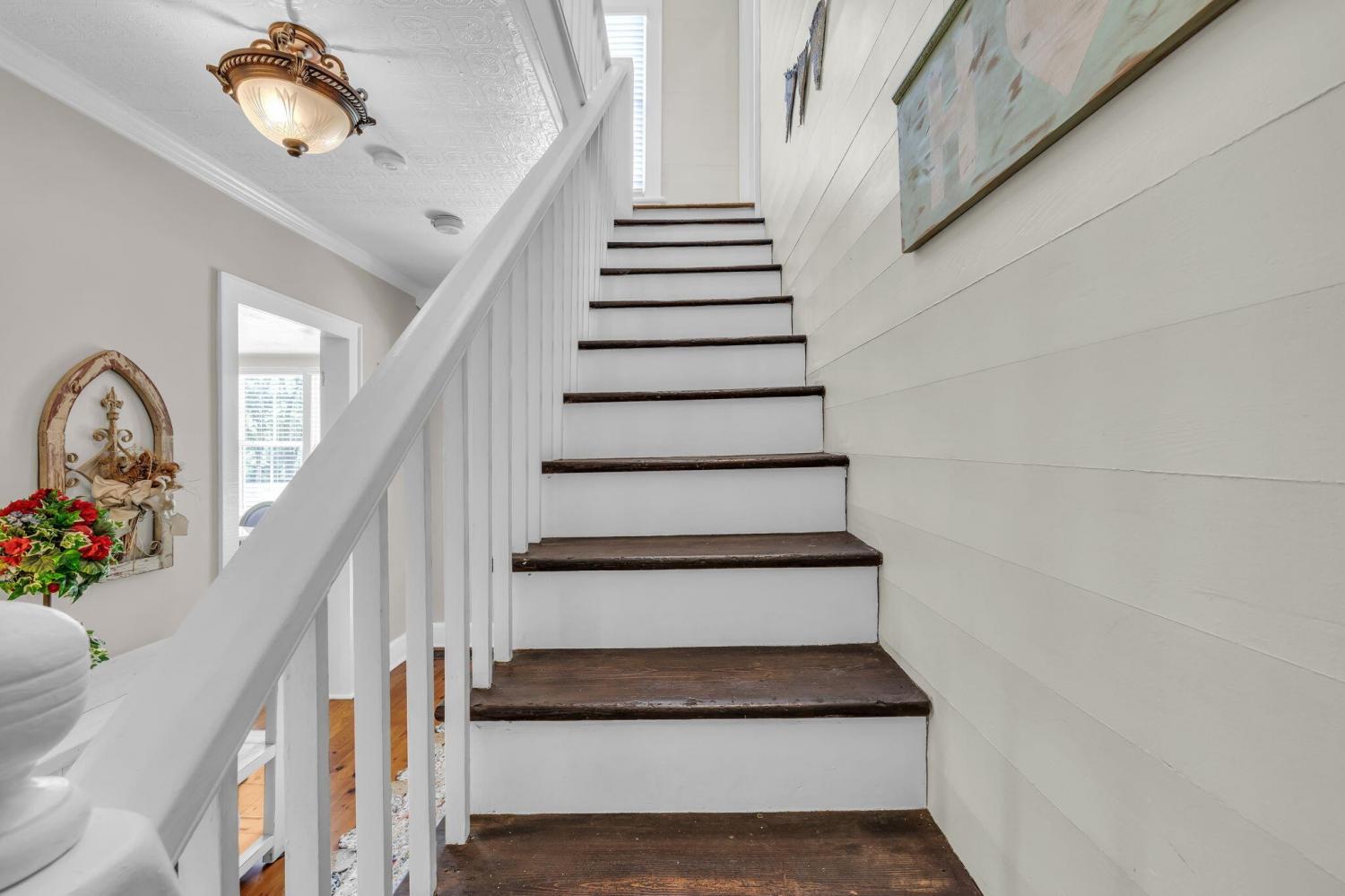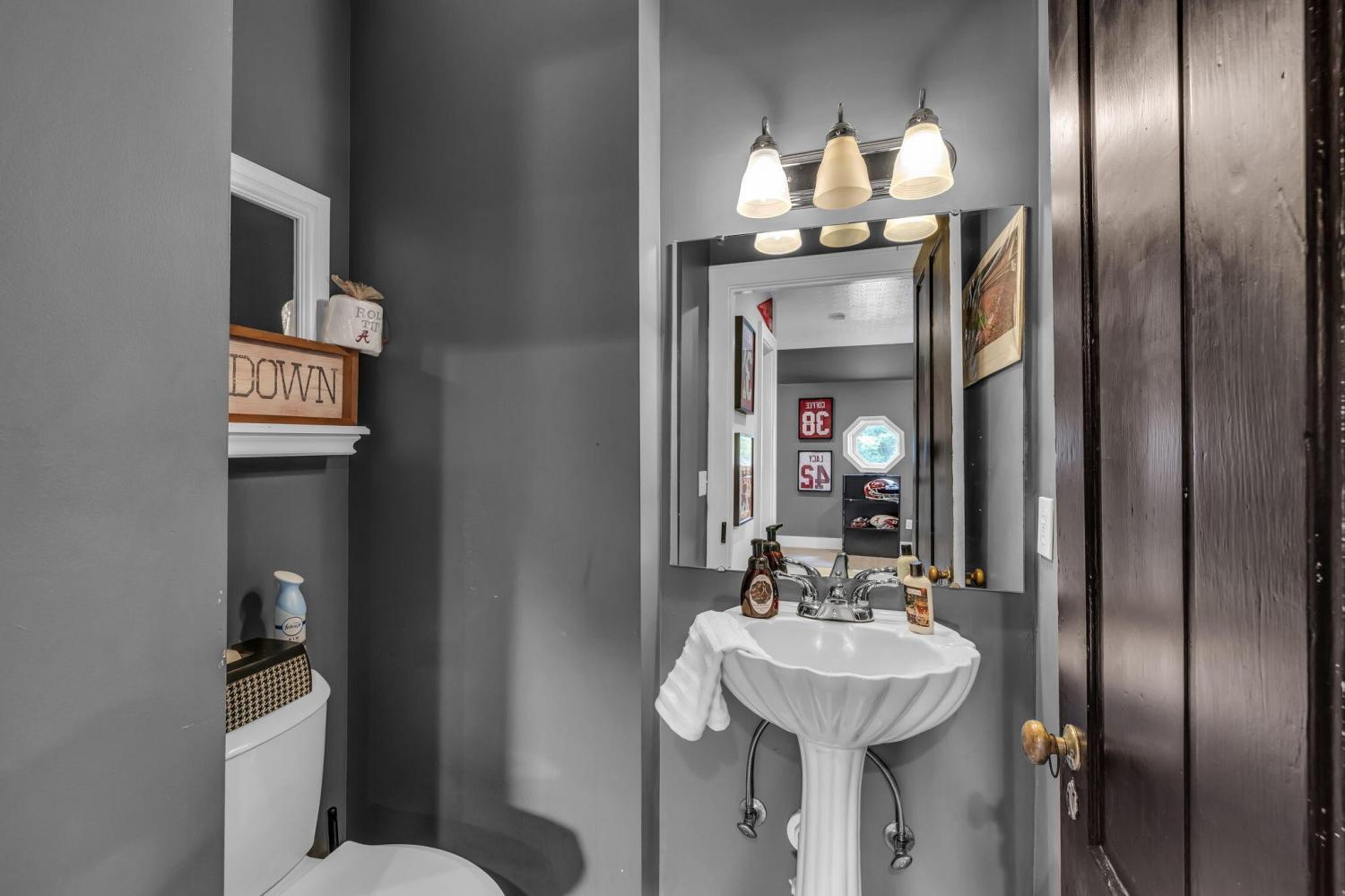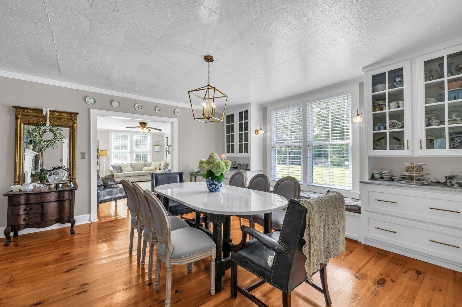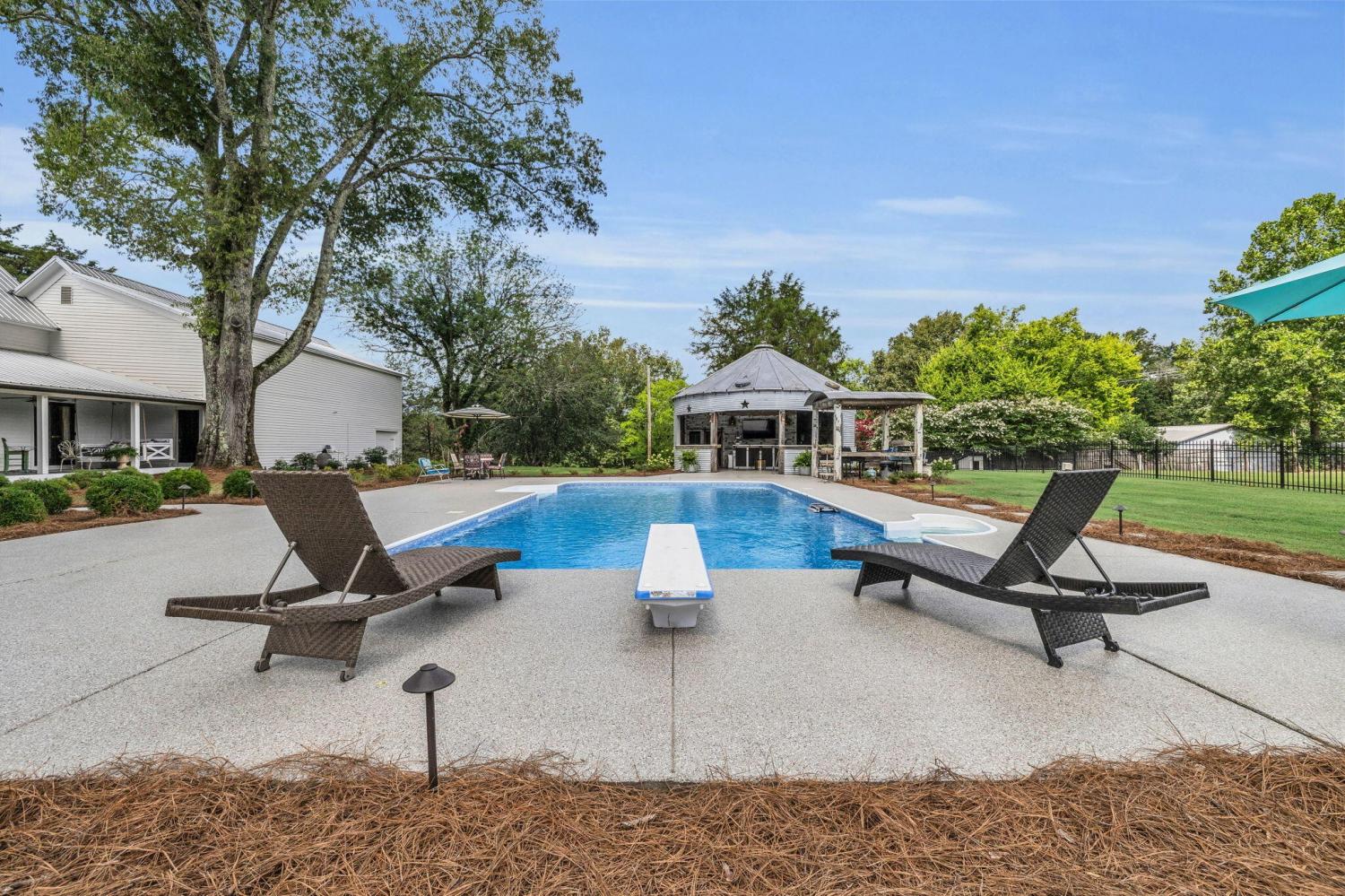 Your Chickamauga farmhouse fantasy just came to life on five level, usable acres. If you've been dreaming in farmhouse tones, pinning porch swings and clawfoot tubs, and swooning over open space, your dream has come to life. This stunning home offers over 5,000 square feet of space and style that blends modern updates with timeless charm. With five (possibly six) bedrooms, four full baths, and two half baths, there's room for everyone and everything. The primary suite is located on the main level and features its own sitting room, ensuite bath, built ins and fireplace. The heart of this home is without a doubt the kitchen, a true gathering place where family and friends will naturally gravitate. Outfitted with fresh stainless steel Bosch appliances and not one but two ovens, this kitchen is built for both everyday living and effortless entertaining. The furniture-style cabinetry adds warmth and character, perfectly complementing the sleek granite countertops and creating a functional space. Just off the kitchen, a spacious pantry and laundry room provides even more storage and workspace, complete with butcher block countertops, cabinetry, and a tankless water heater. The upstairs den is a showstopper—measuring 48 by 24 feet with its own kitchenette and a large closet, it's perfect for a family room, teen retreat or even a studio. A mudroom connects it all, offering function and flexibility. Outside, the details continue to impress. A new metal roof tops the home while epoxy-coated surfaces add a clean, polished look to the covered rocking chair front porch, the four car garage floor, and the pool area. The inground pool is beautifully maintained and sits beside a converted grain bin that serves as a pool house with a kitchenette and a full bathroom. There's also a covered grilling station and a wrought iron fence that encloses the backyard.