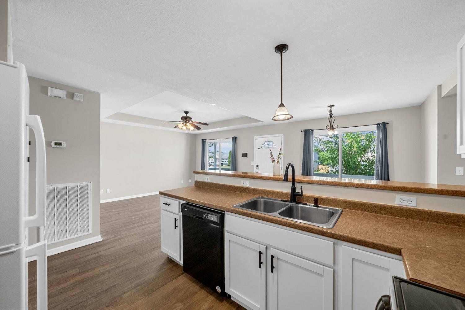 Cute ranch style home close to post and close to the interstate! Covered front porch for some nice shade. Entering the living room, you can smell the fresh paint throughout the home! Spacious living room, lots of natural light with the bigger windows, formal dining room area next to the kitchen. dining to kitchen area has a breakfast bar style countertop space and comes with kitchen appliances. Small pantry in kitchen but definitely useful! Spacious bedrooms and two full bathrooms! One in the hallway and one in the primary bedroom! Does have a 1 car garage. Definitely ready for new renters!