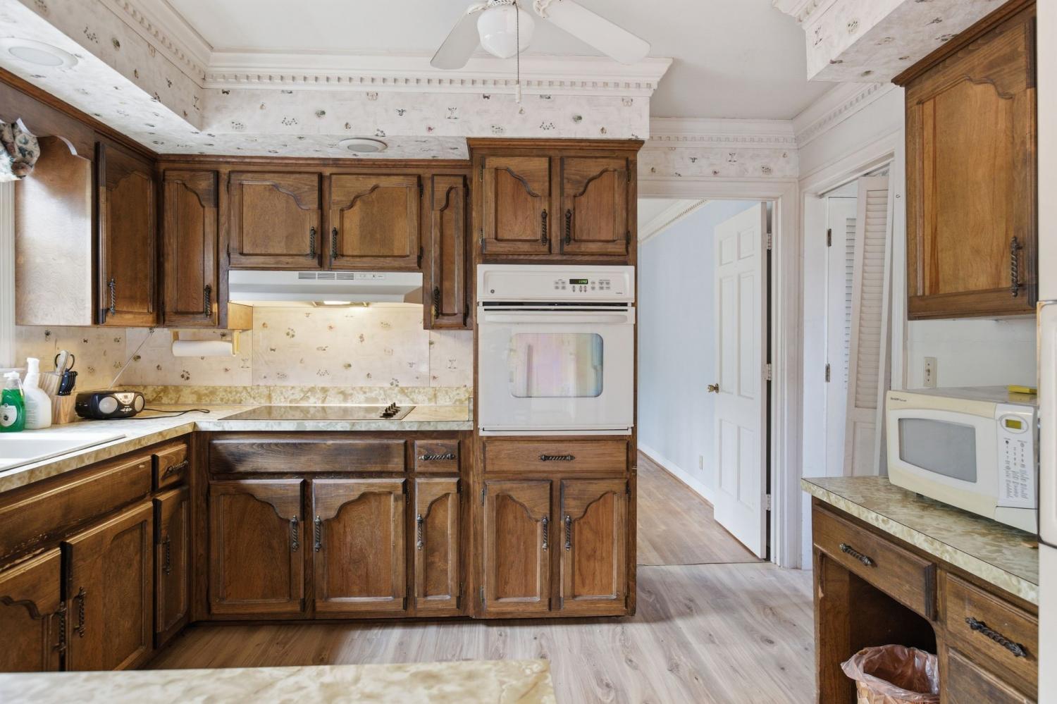 Fantastic opportunity in the heart of Forest Hills near Radnor Lake State Park land! Prime 1.3 acre location convenient to Brentwood, I-65, and downtown Nashville via Franklin Pike. Ready for your personal updates. All 4 bedrooms are upstairs with 2 full baths and spacious rooms. Main level offers an eat-in kitchen with backyard access, large living room, and cozy den with fireplace. Garage has been converted to a work area but could easily be converted back. Small older (needs significant work) studio/storage space above garage is not included in square footage. New package unit HVAC and newer roof. Built by Adams Construction in 1971. Selling as-is. Rare chance to renovate in a highly desirable location!