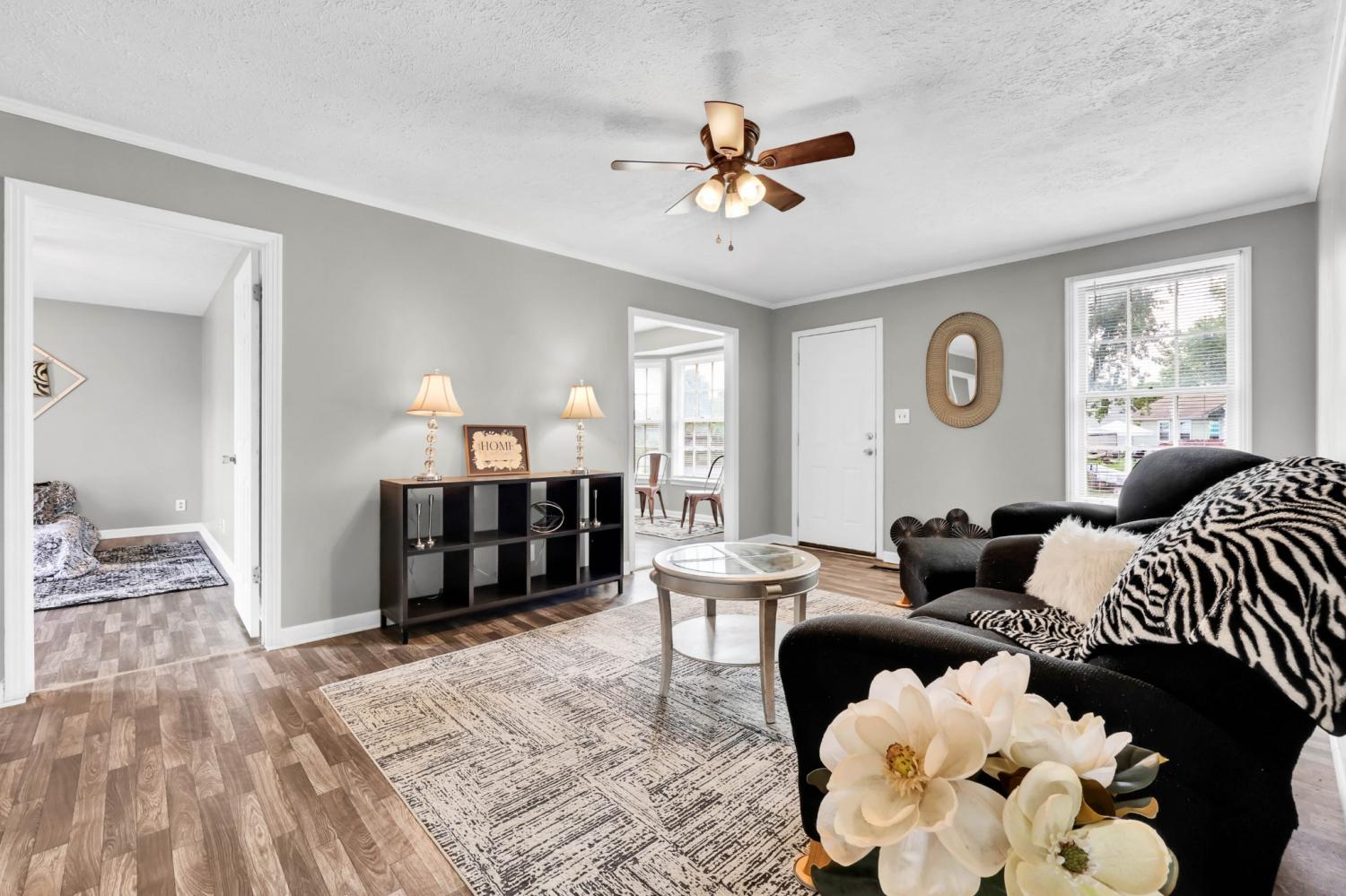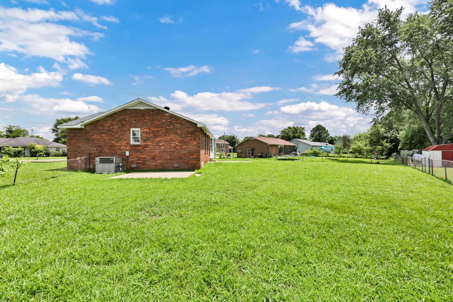 This cute 1 story11100 sq ft home sits on a .4 ACRE lot with a chain-link fenced-in back yard. NO HOA! HVAC 5 years old! Large front and backyards! Waiting for a Buyer's TLC and/or updating! So much as HOME, RENTAL OR INVESTMENT PROPERTY to pass up at this price-point and location! location! location! Pembrook Place is a lovely community, approximately 7-10 minutes from Fort Campbell GATE 2! Also, if you like to do outdoor entertaining or just chill-out outdoors, are 2 separate patio concrete slabs. Located close to parks, recreation, entertainment and shopping.** $1000 Earnest Money due to Realty Title Clarksville within 48 hrs of bound contract.**
