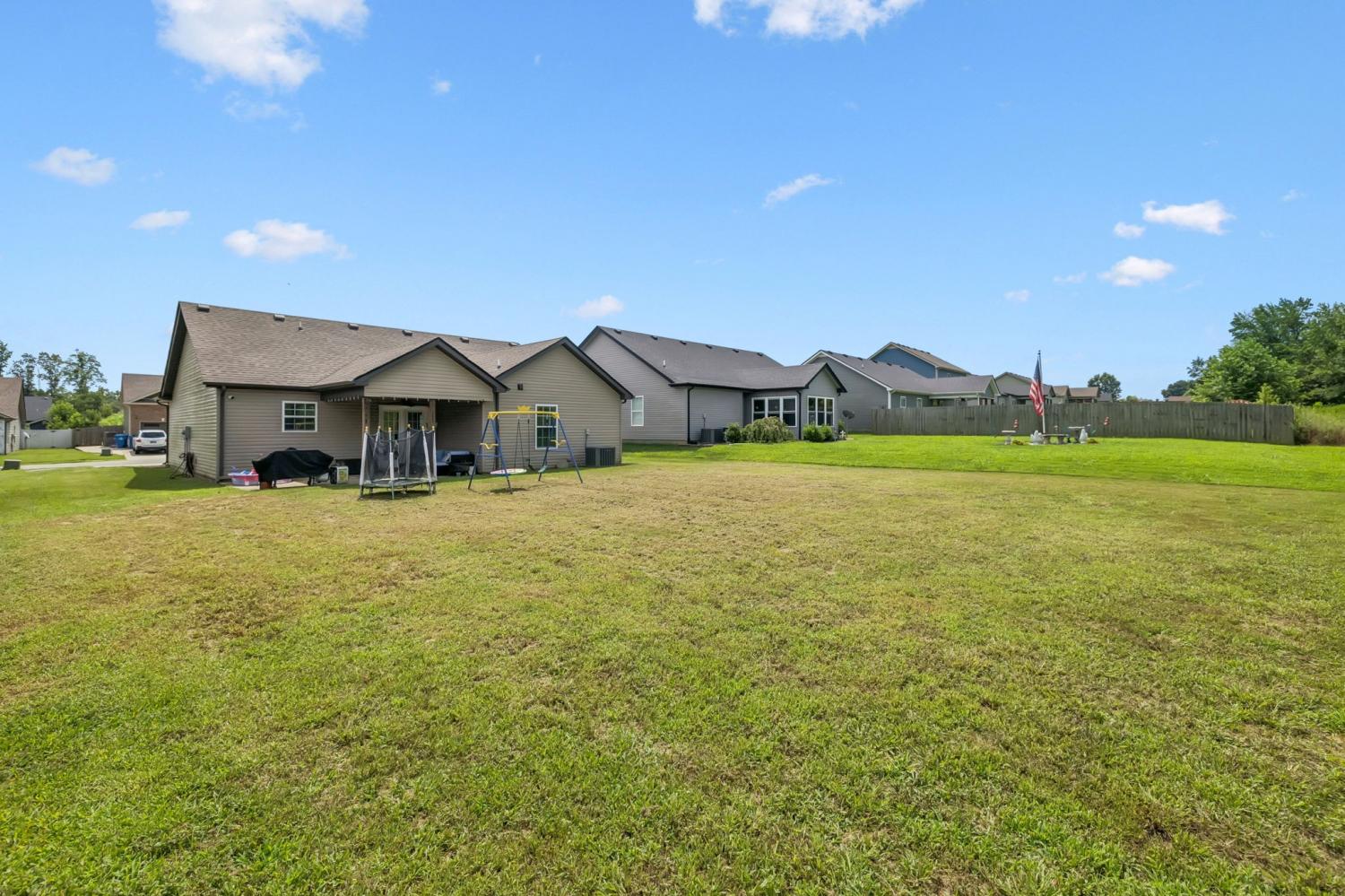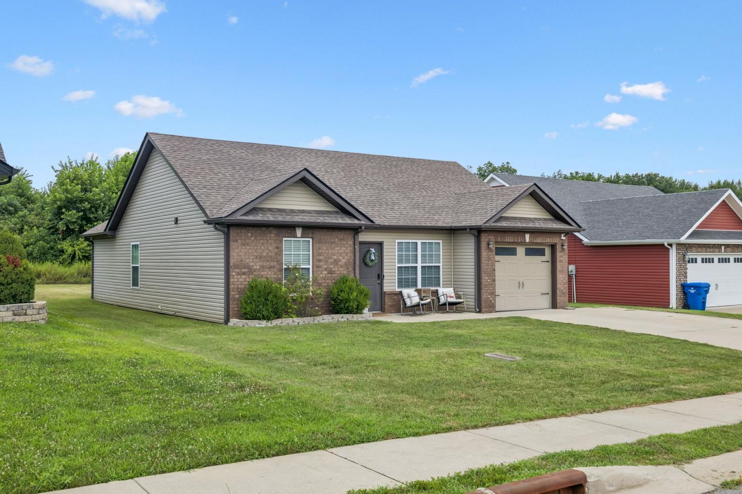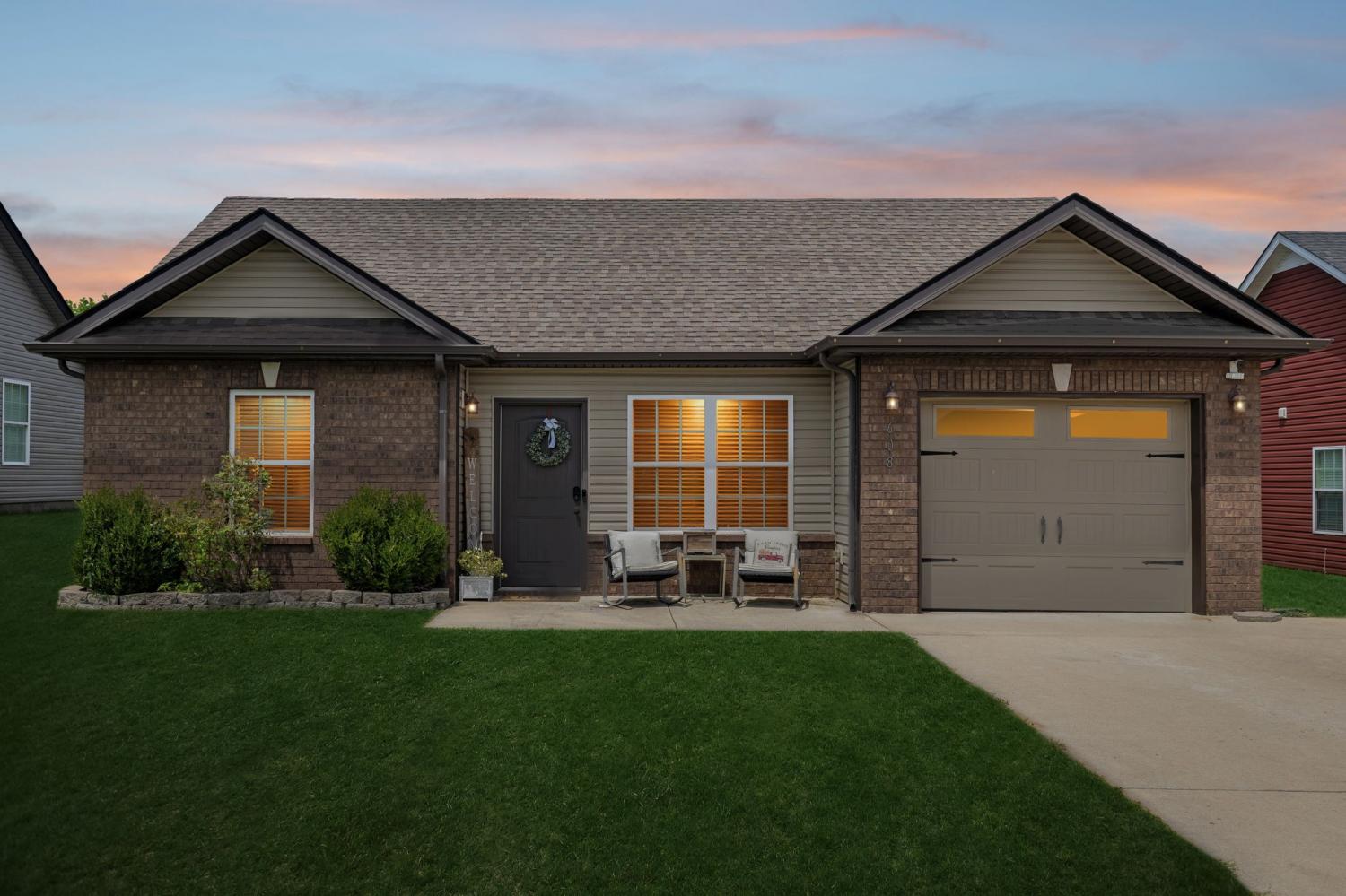Welcome to 608 Hollow Crest, a well-maintained home in desirable Northwest Clarksville, just minutes from Fort Campbell. Located in a quiet neighborhood, this home is perfect for military families, first-time buyers, or anyone seeking comfort and convenience in a growing area. Built just six years ago, this 3-bedroom, 2-bathroom home sits on a level slab foundation, offering easy single-level living. The open floor plan flows seamlessly, creating a warm and inviting atmosphere throughout. The spacious L-shaped kitchen features all major appliances, generous counter space, and ample cabinetry—ideal for both daily meals and entertaining. The large living room provides flexible setup options, including space for a dining table or home office. The primary suite includes a full private bathroom and a relaxing layout, offering a quiet retreat at the end of the day. Two additional bedrooms are well-sized and share a second full bath. Enjoy peaceful mornings on the open front porch, perfect for rocking chairs and coffee. The covered back corner patio provides a shaded outdoor escape great for grilling or evening downtime. The level backyard offers room for a fence, garden, or even a pool—giving you the space to make it your own. Seller is open to negotiating a fencing allowance if so desired. Also 1-car garage provides secure parking and extra storage. The home includes central HVAC, modern fixtures, and move-in-ready condition. Conveniently located near shopping, schools, parks, and restaurants, this home offers both tranquility and accessibility. Whether you’re settling down or relocating, this property checks all the boxes. Schedule your private tour today and see everything this beautiful home has to offer!